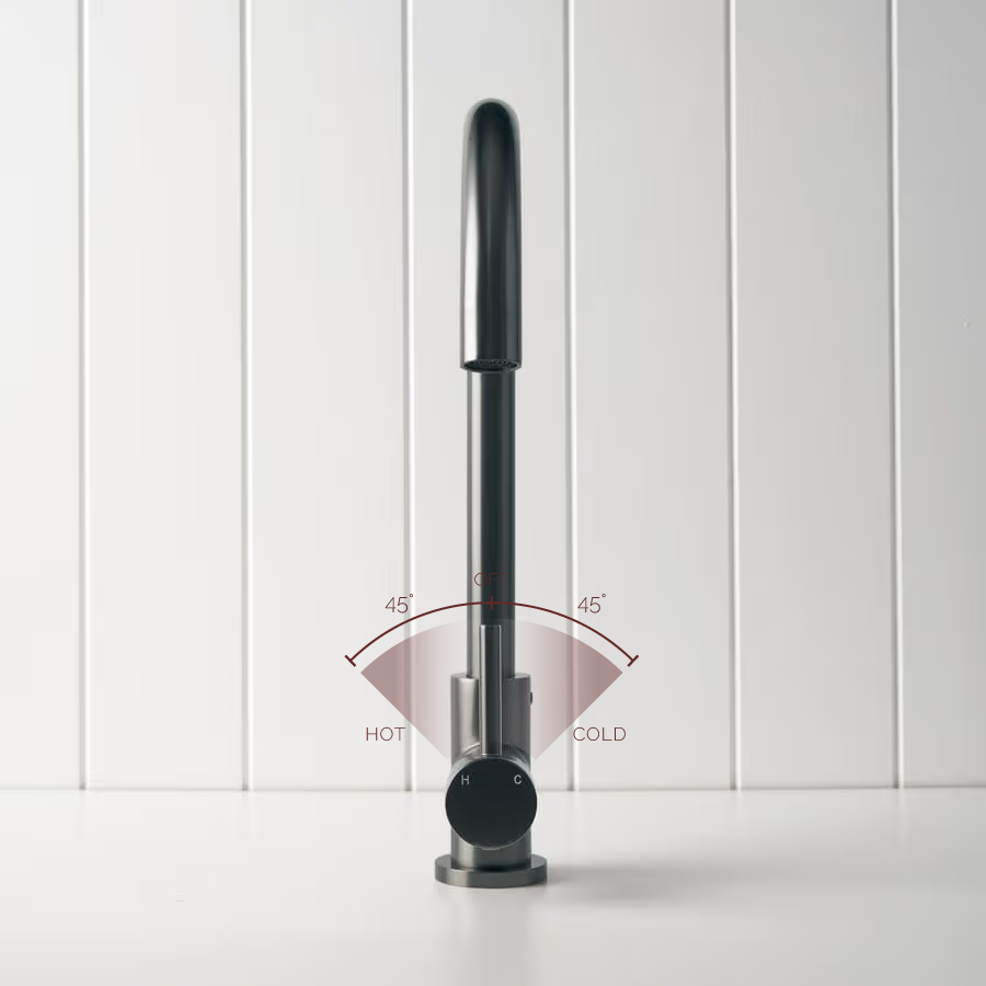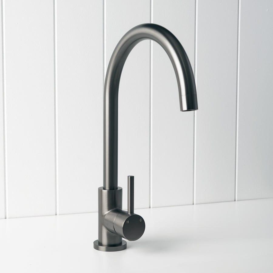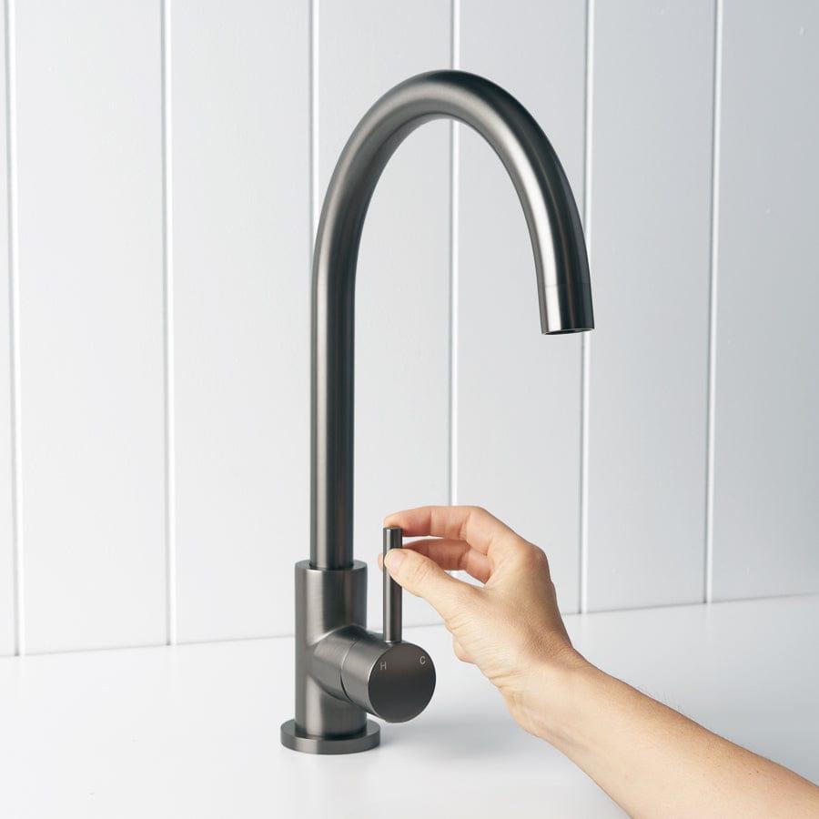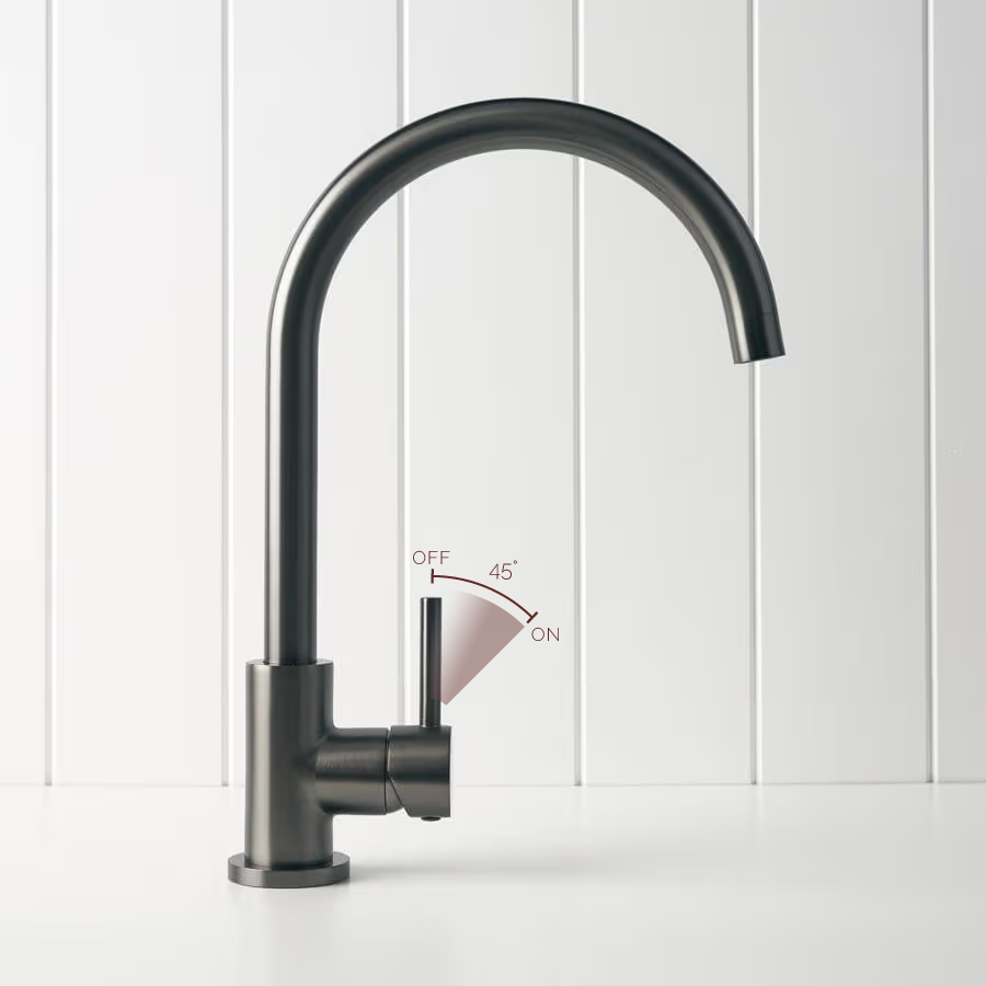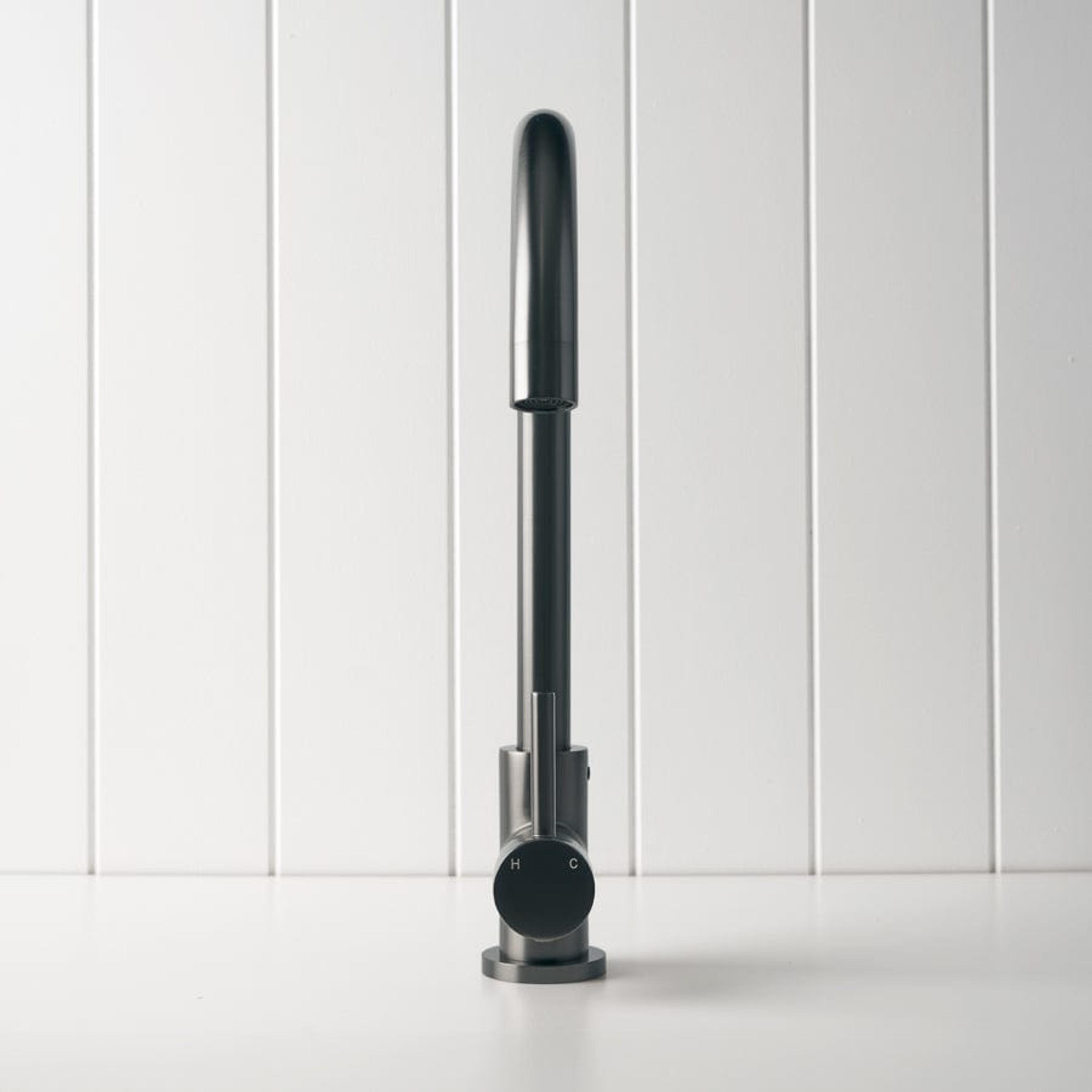 The Round Kitchen Mixer in Gunmetal adds a deep, modern accent to your benchtop. Its 360-degree swivel spout and easy single lever control make rinsing trays and filling pots effortless.