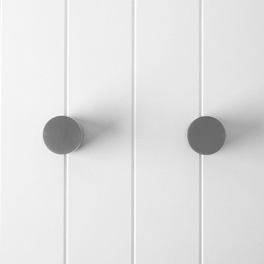 The Round Taps in Gunmetal introduce a deep, smoky accent to bathrooms with pale tiles and stone. Their minimal round shape keeps the look tailored while still making a quiet statement. A gentle twist of each dial lets you set pressure and temperature with confidence.