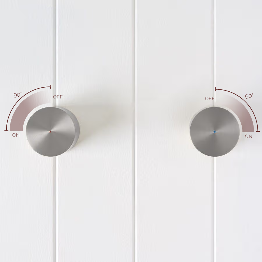 The Round Taps in Stainless Steel give a clean, understated finish that works with almost any palette. Their simple round form pairs well with concrete, terrazzo and natural stone. A smooth turn of the dials provides fine control over temperature and pressure, keeping daily routines effortless.