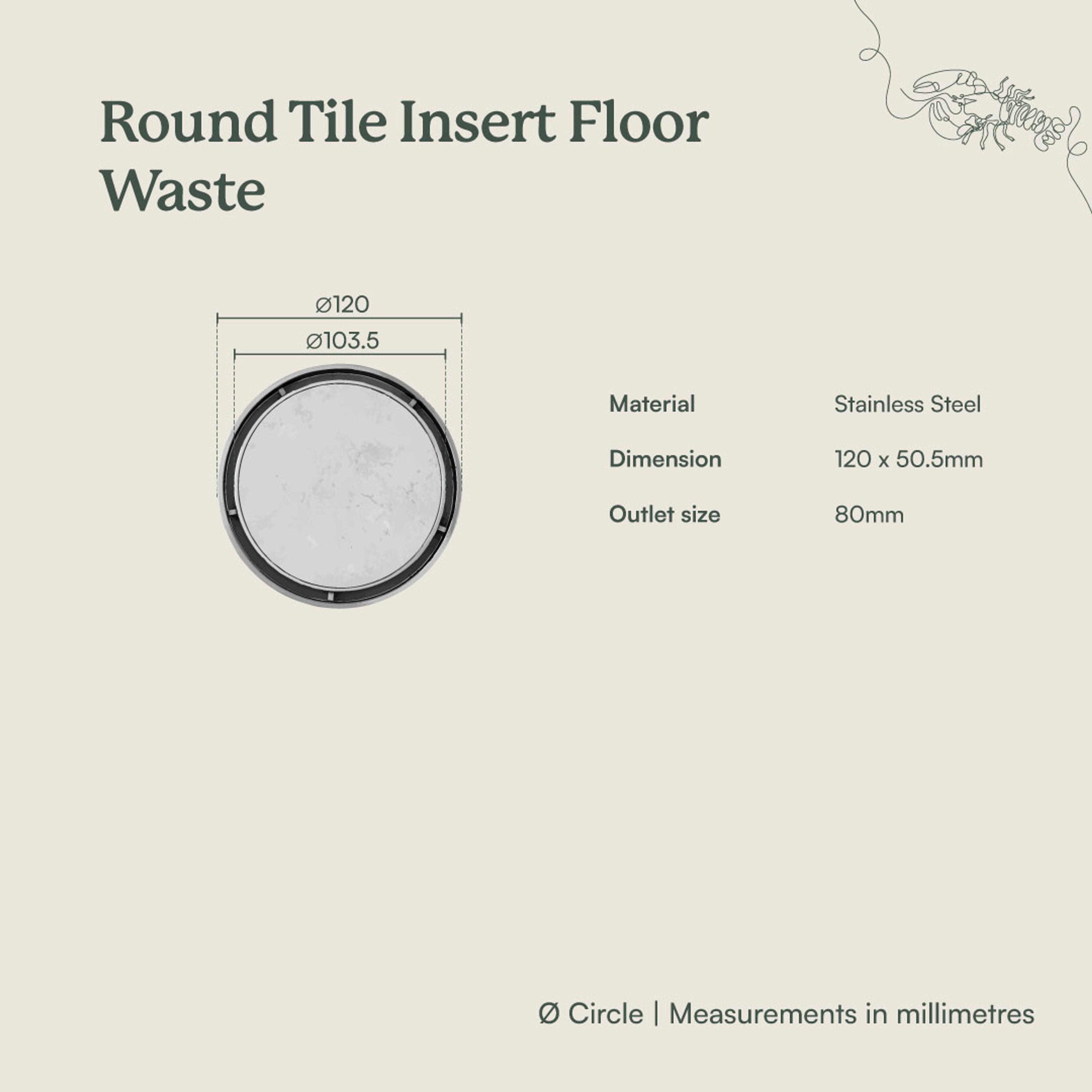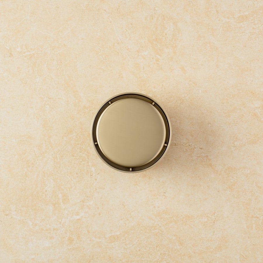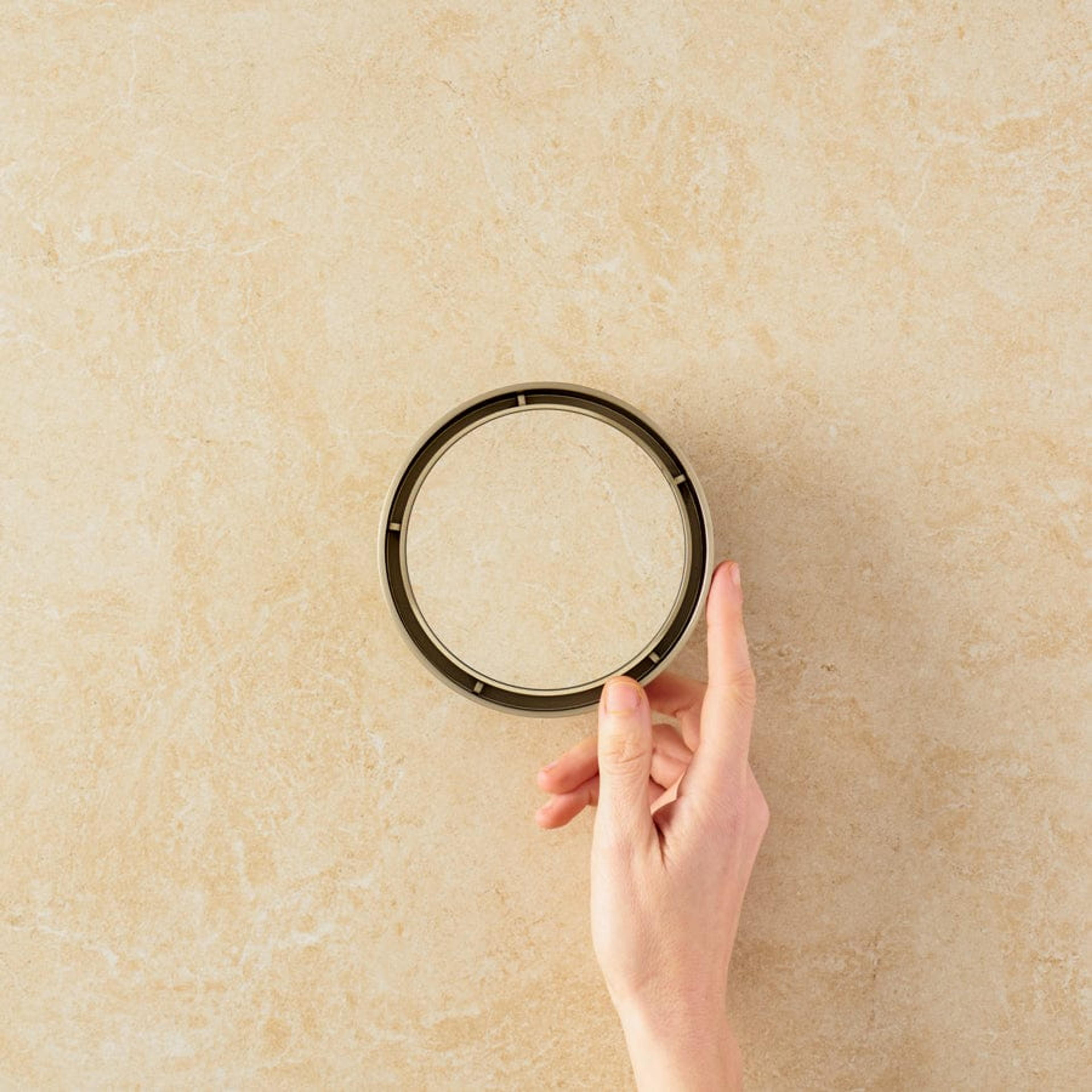 The Round Tile Insert Floor Waste in Warm Brushed Nickel frames your floor tile with a soft, neutral metallic edge. The insert design lets the tile sit inside the waste for a near-invisible, flush finish in showers and laundries. Calm, cohesive and quietly considered.