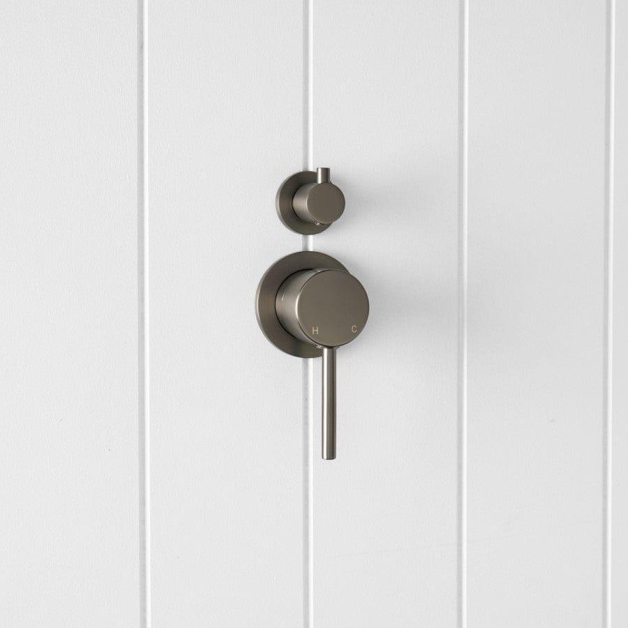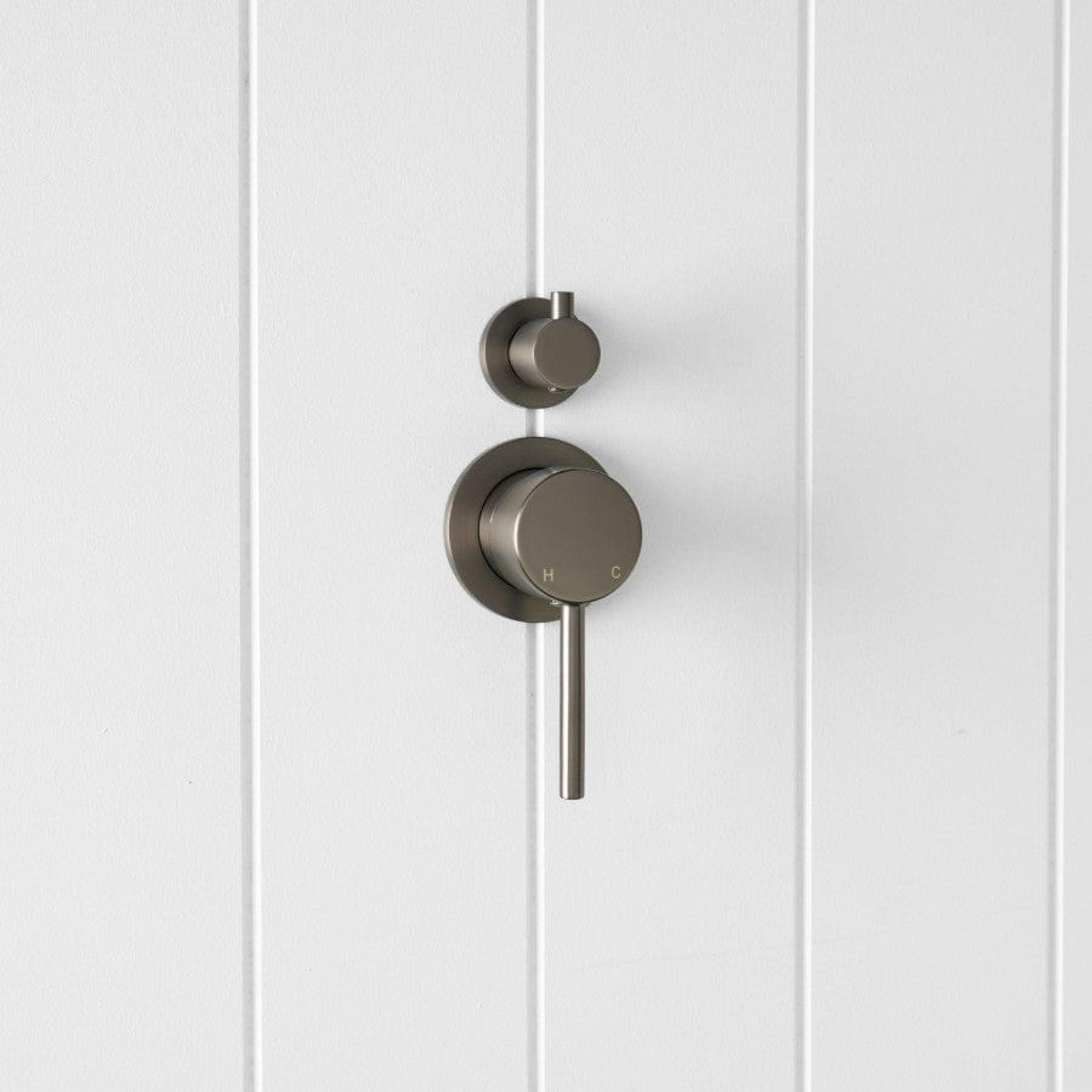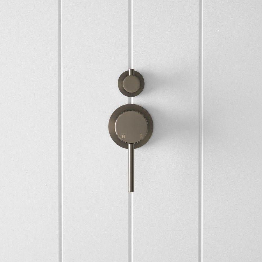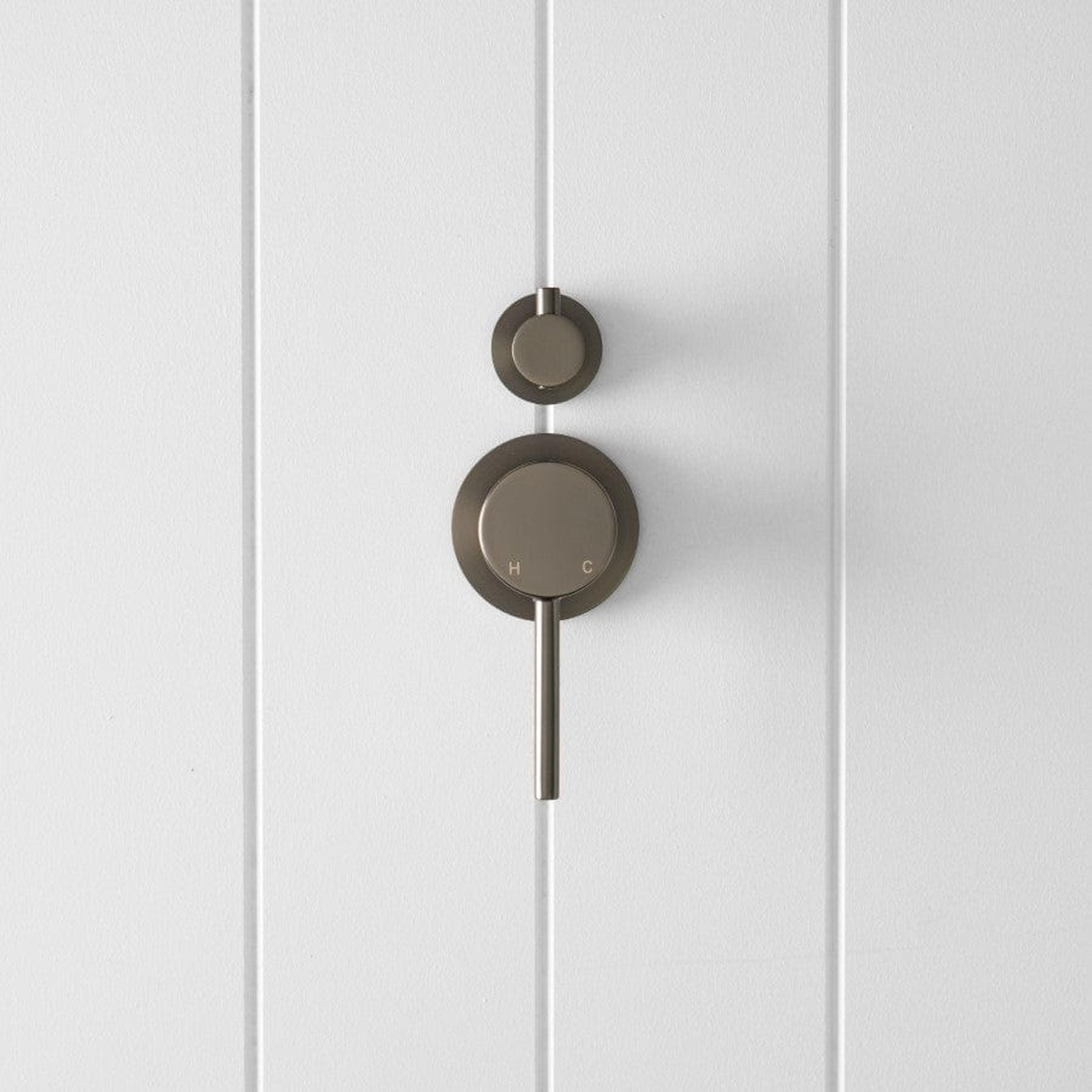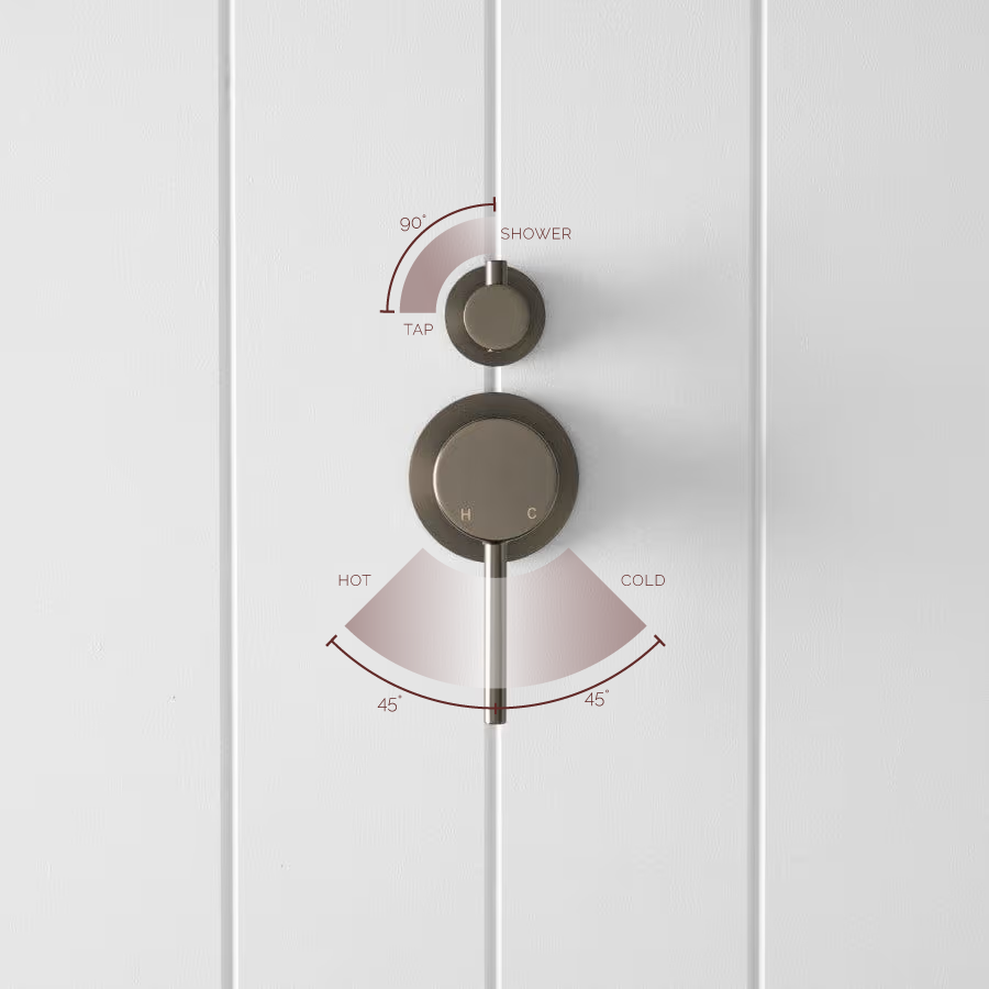 The Shower Diverter and Mixer in Gunmetal introduces a deep, modern accent to neutral bathrooms. With one lever for temperature and pressure and a neat diverter above, switching between overhead and hand shower feels effortless. The slim gunmetal plates keep the look tailored and architectural.
