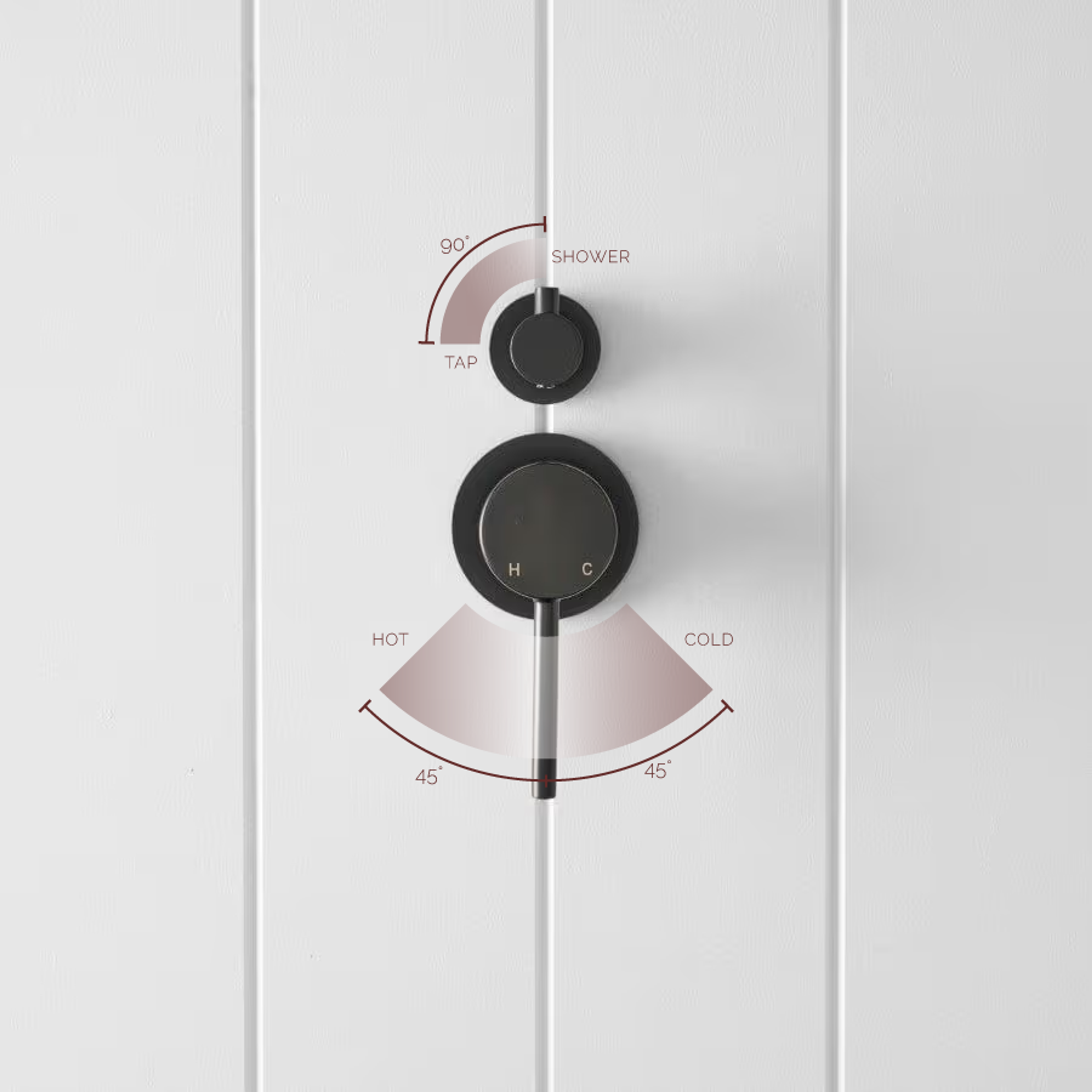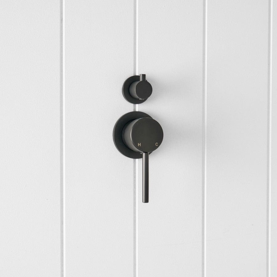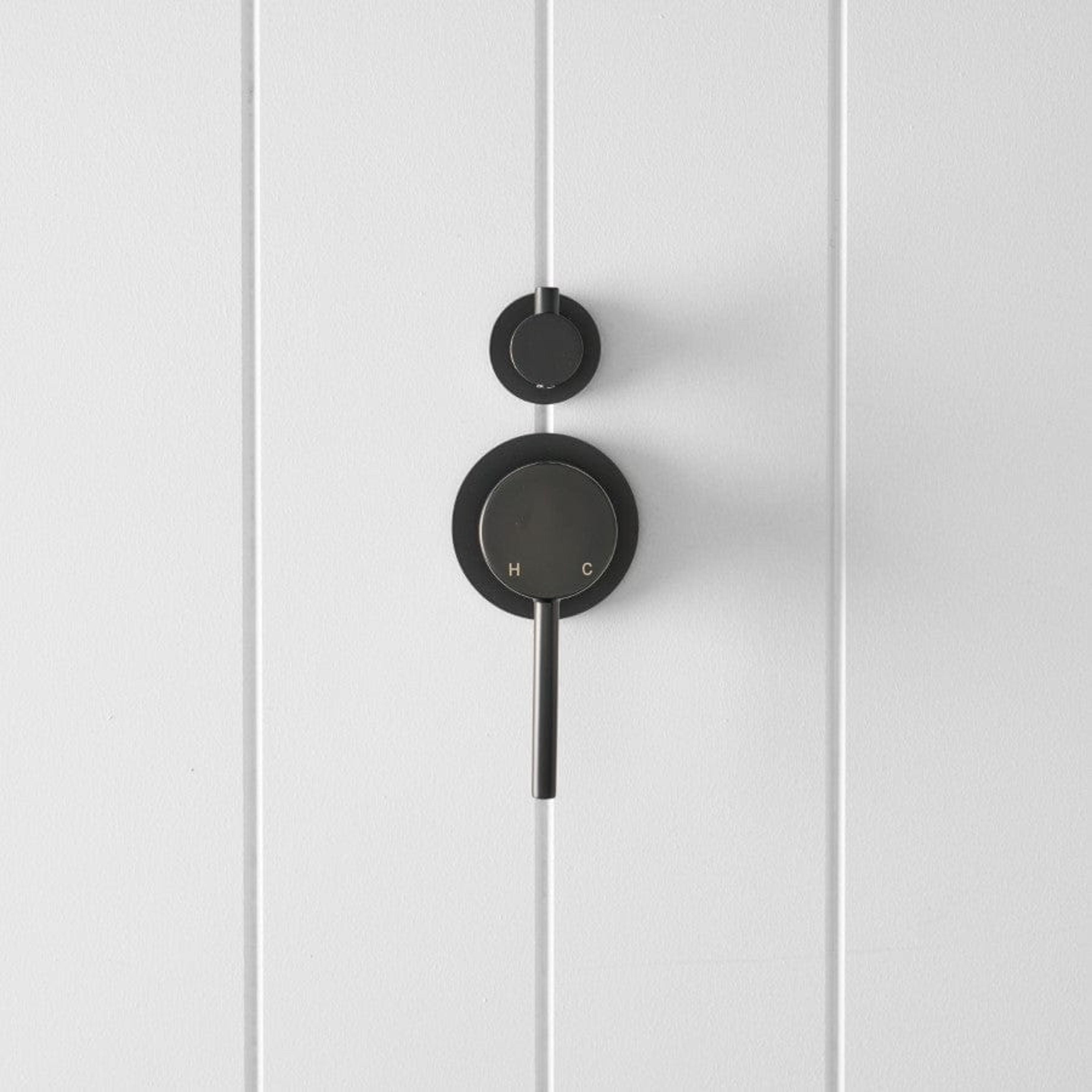 The Shower Diverter and Mixer in Matte Black brings sharp, minimal lines to modern look bathrooms. The main lever offers fine control over water temperature and pressure, while the diverter neatly toggles between shower heads or bath spout. A bold piece that anchors the whole shower zone.
