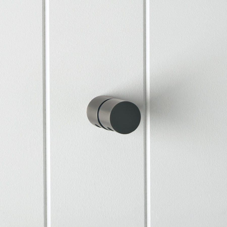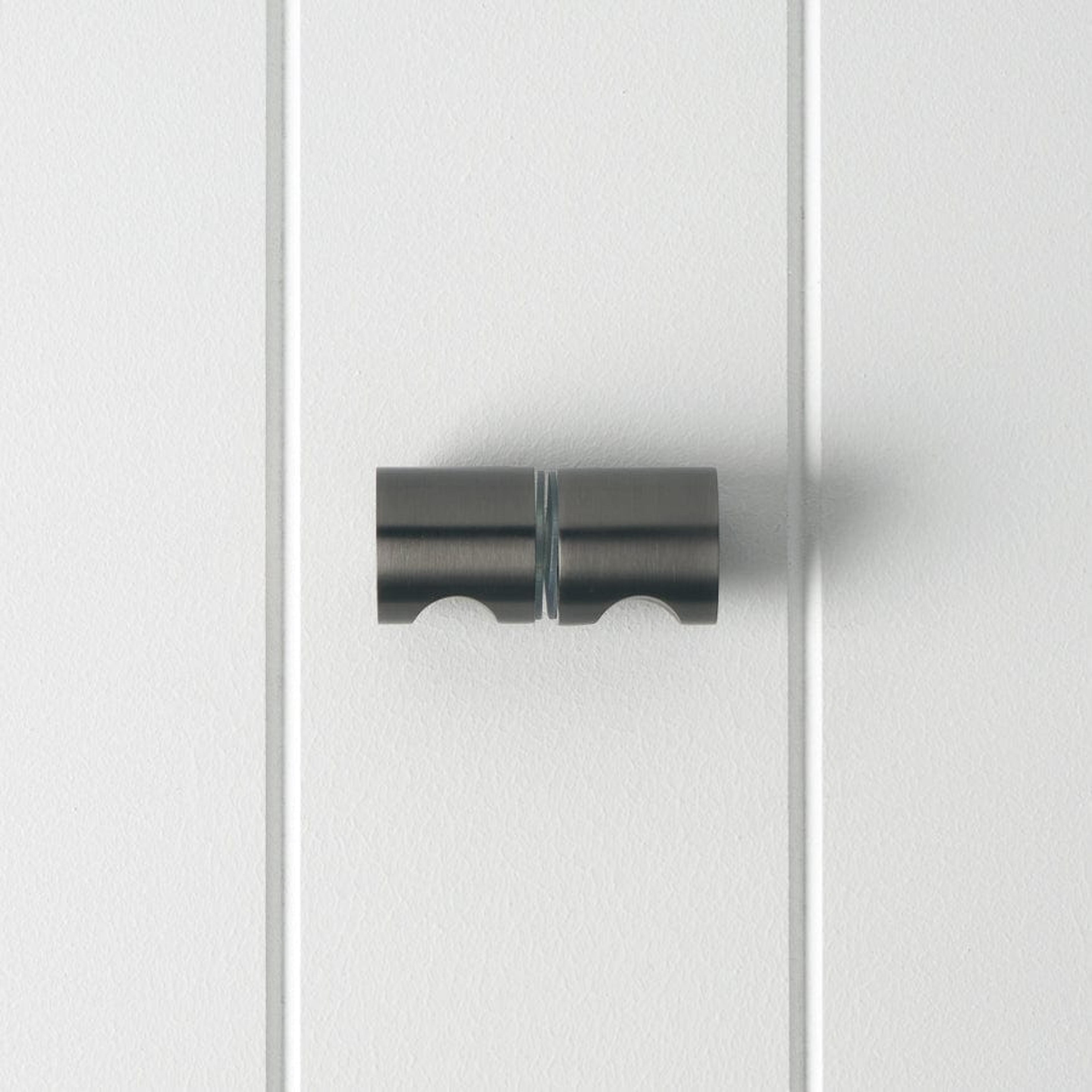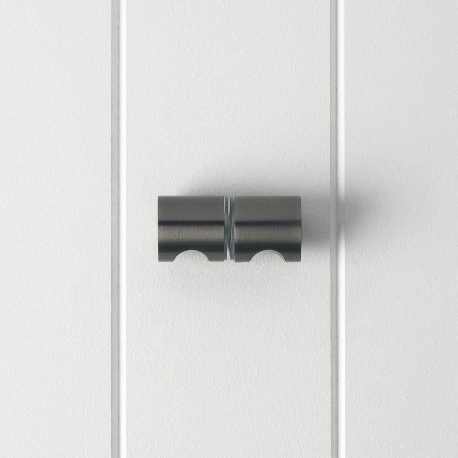 The Shower Door Handle in Gunmetal adds a smoky, contemporary note to pale tiles and clear glass. The rounded form with subtle gripping divots feels secure without cluttering the screen visually. Plastic washers keep the handle seated firmly while protecting the glass, giving a sleek shower door handle that completes the space.