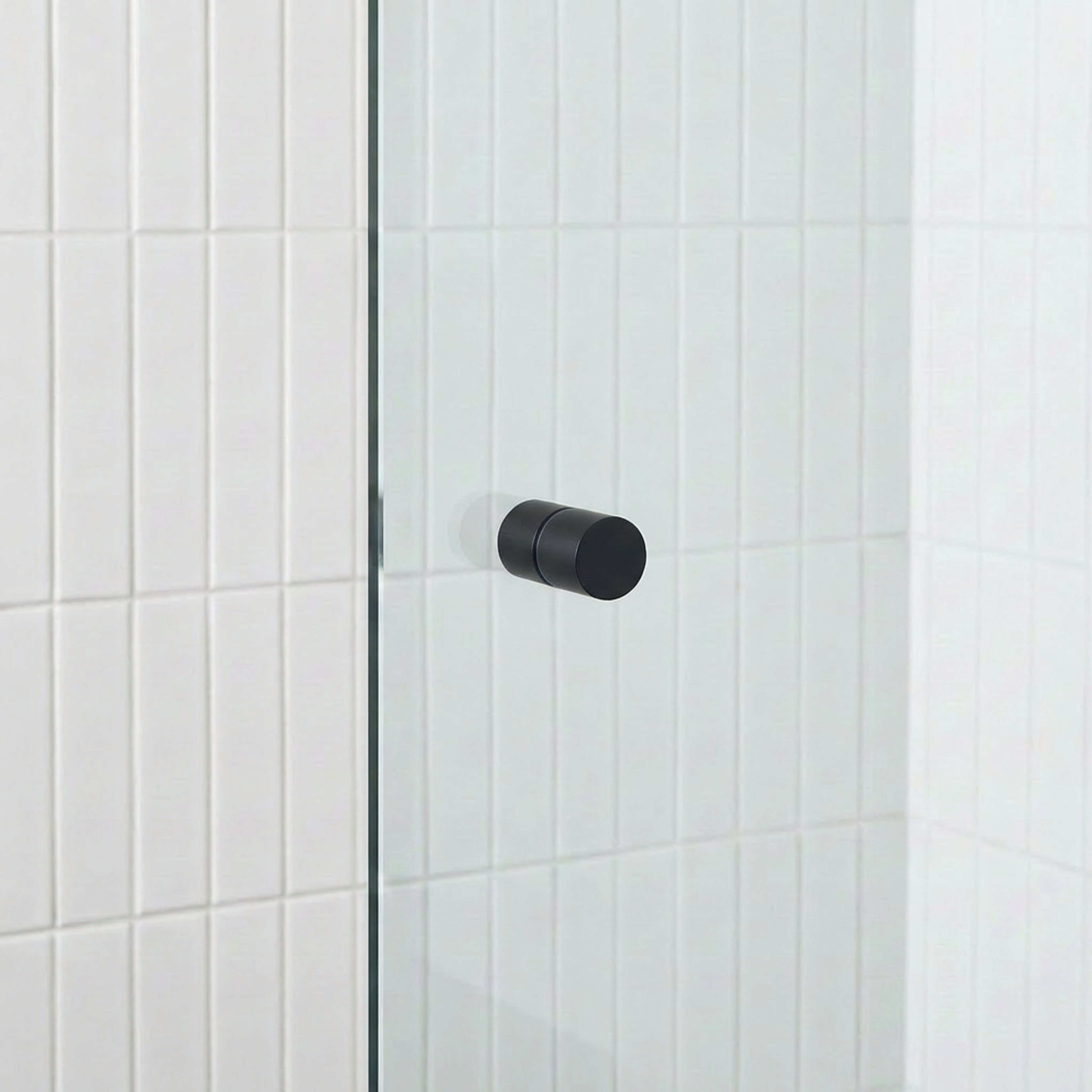 The Shower Door Handle in Matte Black delivers a bold, minimal moment on a clear glass screen. The cylindrical shape with gentle divots is comfortable to hold, and the back to back design keeps both sides of the shower looking tidy. Washers sit between handle and glass so the shower door handle feels solid but kind to the screen.