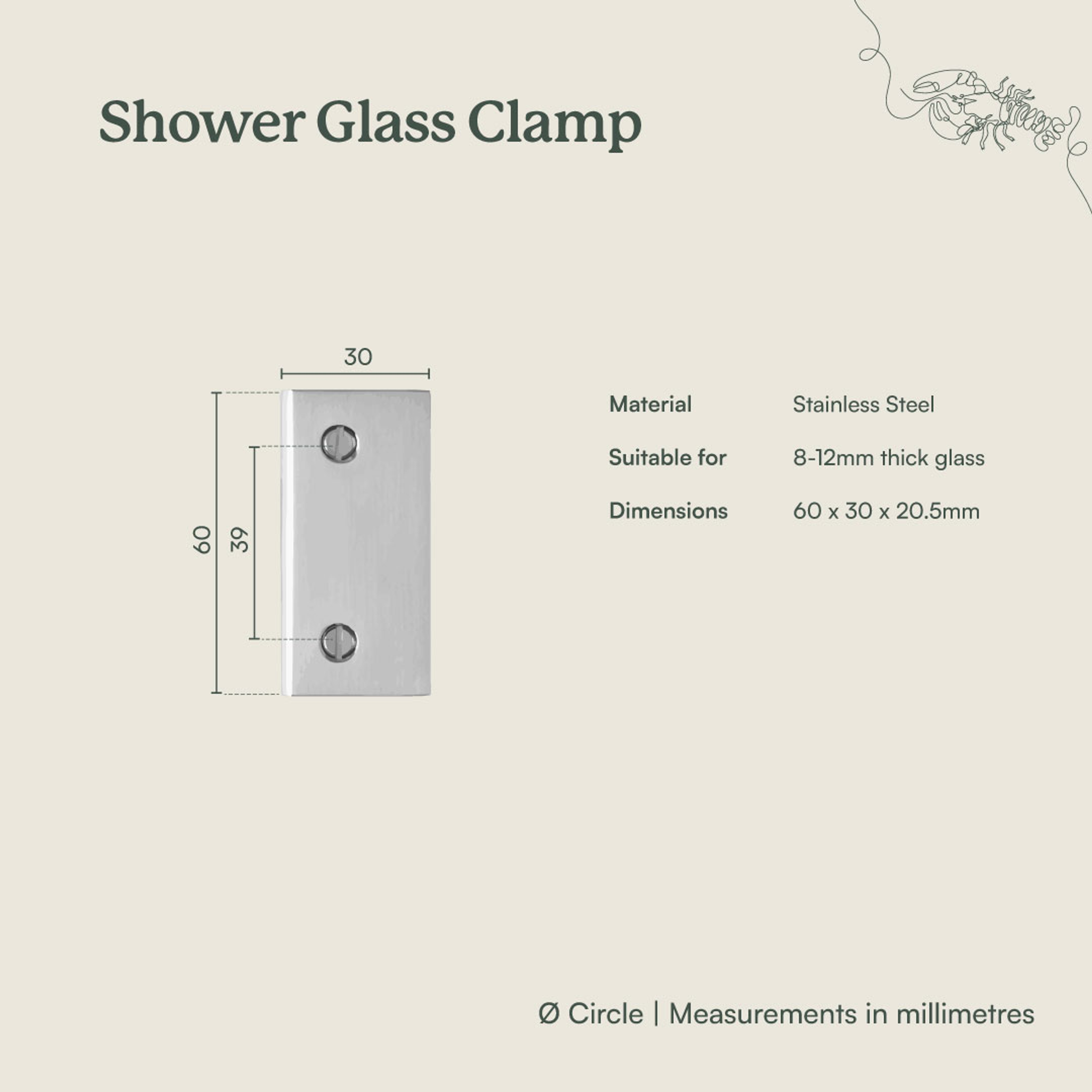 The Shower Glass Clamp in Warm Brushed Nickel adds a soft, neutral metallic detail that works with both warm and cool palettes. This brass clamp suits 10 mm shower glass and helps create cohesive bathroom styling with brushed nickel tapware. A protective plastic washer sits between clamp and glass for a gentle yet firm hold.