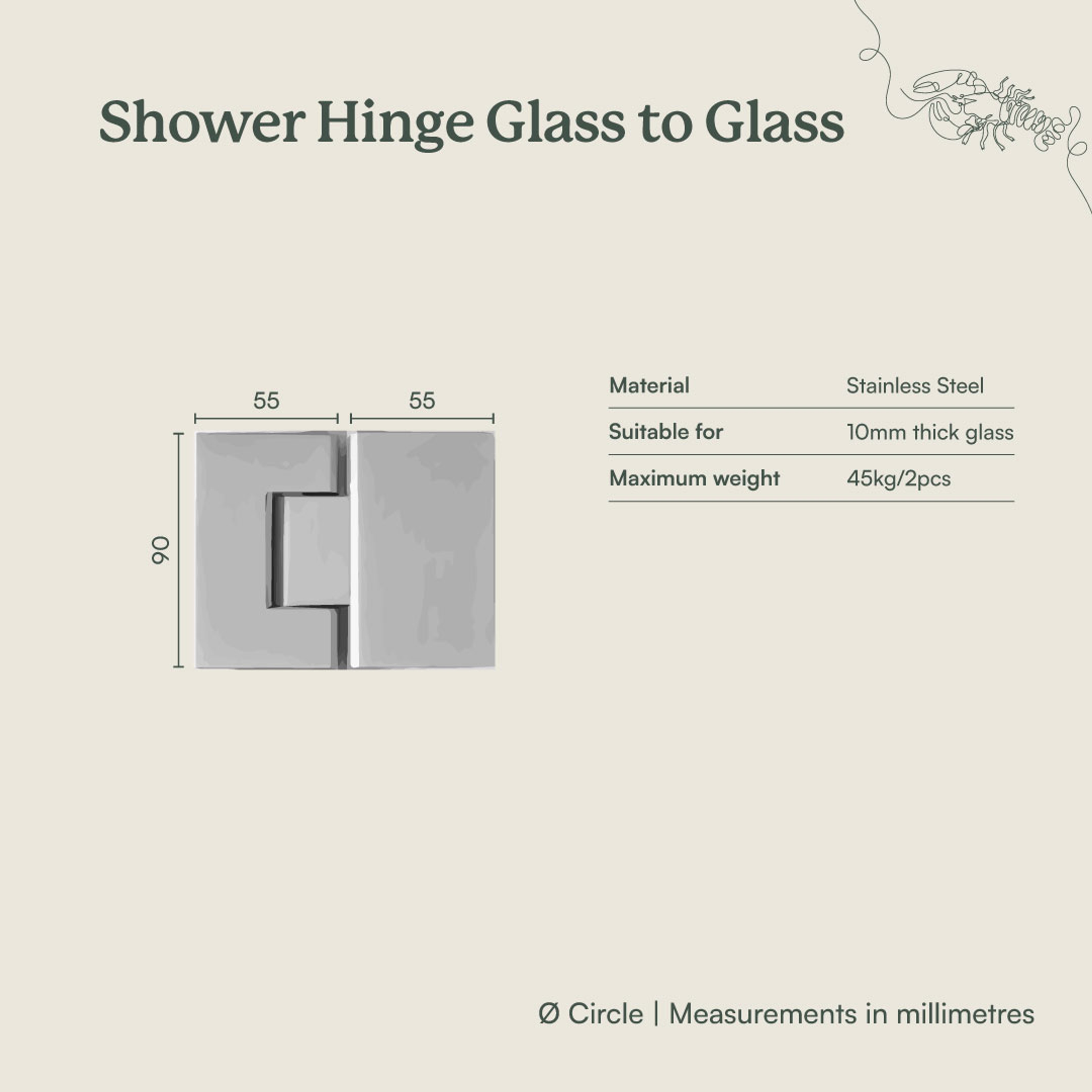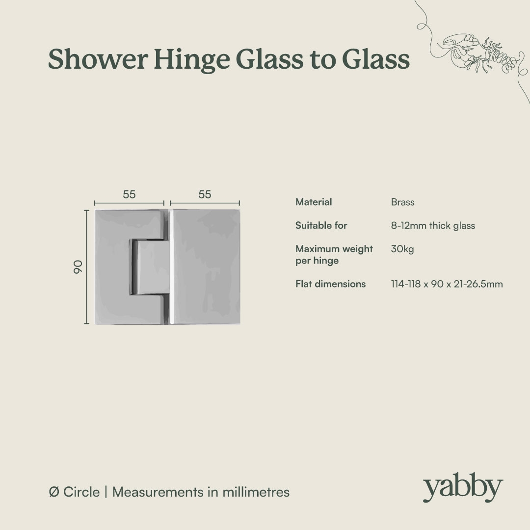 The Glass to Glass Shower Hinge in Antique Brass adds a warm, tailored edge to enclosed shower cavities. Its bold yet minimal shape lets glass panels stay the hero while the stainless steel construction suits glass 8 to 12 mm thick. Supplied with all hardware, this glass to glass shower hinge is ready for installation. Maximum weight per hinge is 30KG.