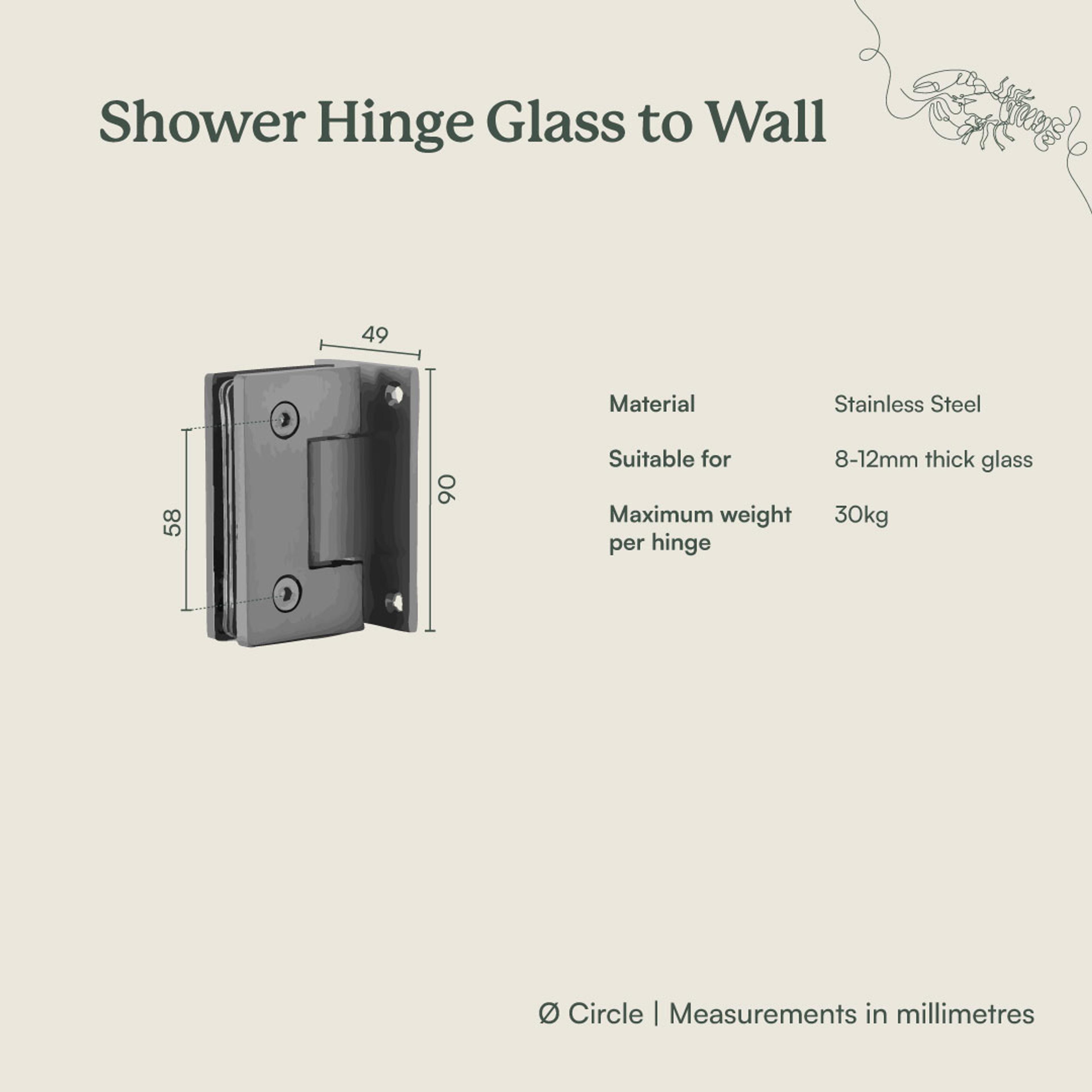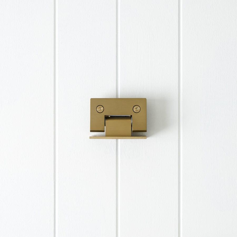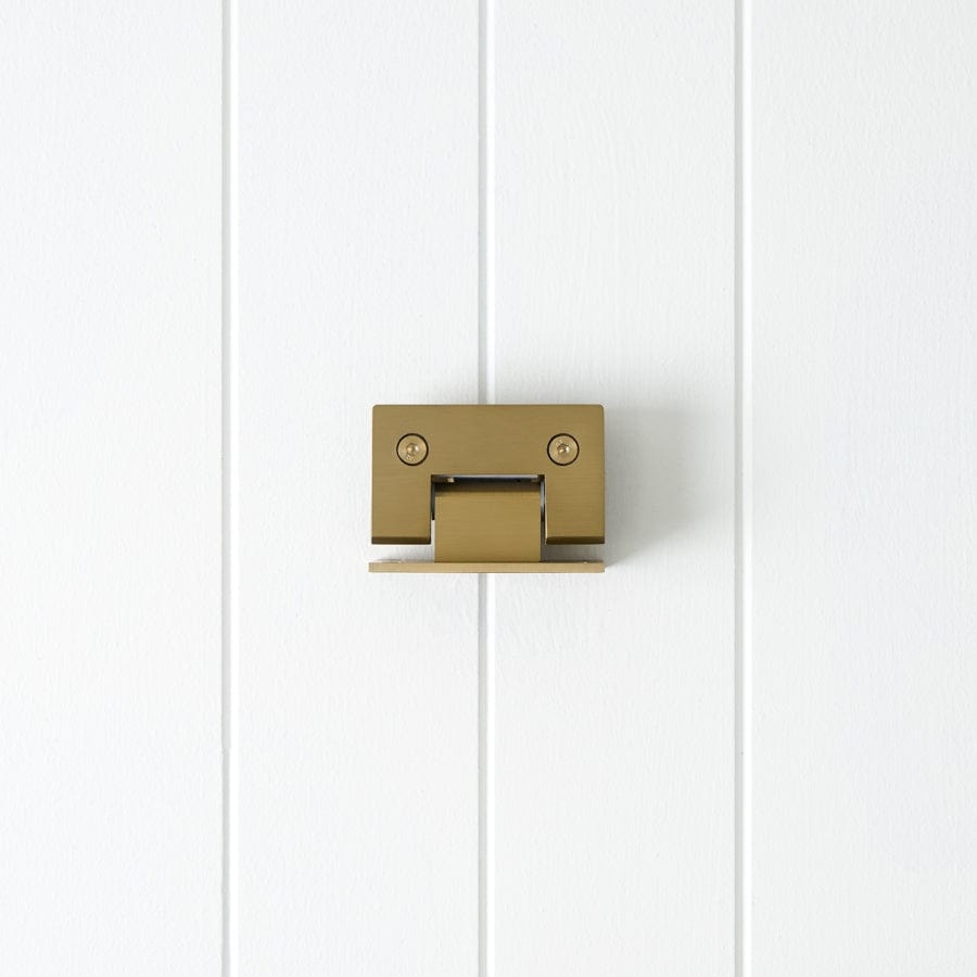 The Glass to Wall Shower Hinge in Brushed Brass adds a soft brushed glow to clear glass and pale tiles. This stainless steel glass to wall shower hinge supports 8 to 12 mm glass and arrives with all fittings included. A simple way to transform the shower and echo brushed brass mixers.