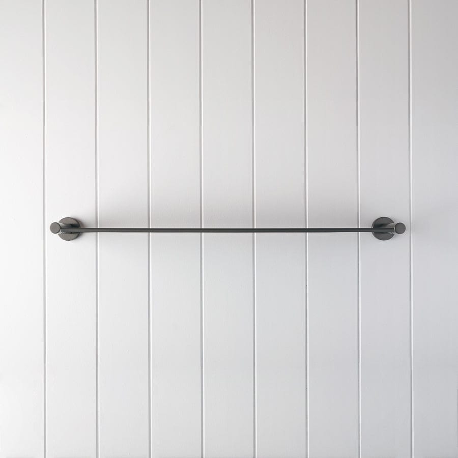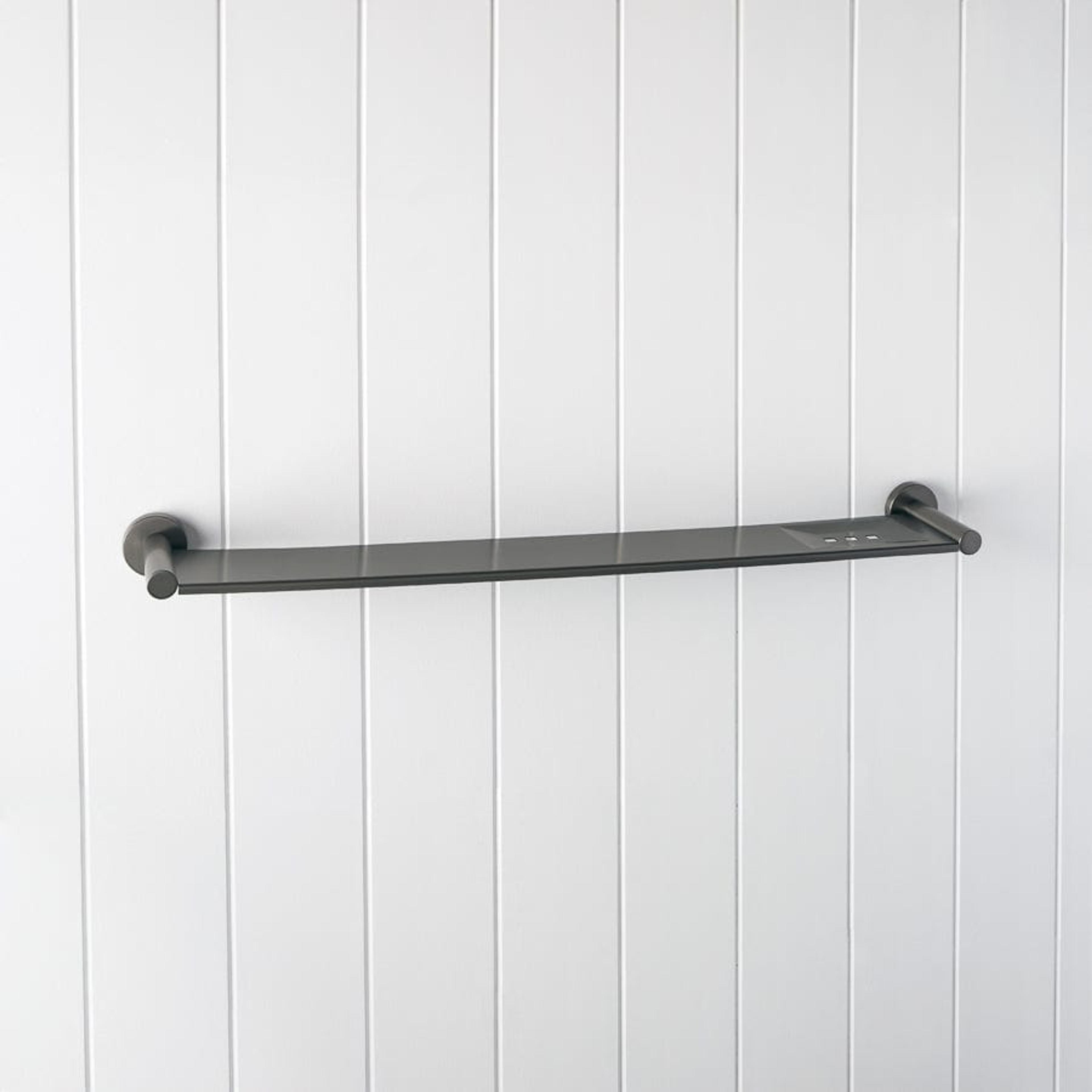 The Shower Shelf in Gunmetal adds a sleek, smoky line across the shower wall. The slim rail and tray section hold bottles neatly in a row, letting the tiles remain the hero. This gunmetal shower shelf delivers subtle contrast and tidy storage in modern bathrooms.