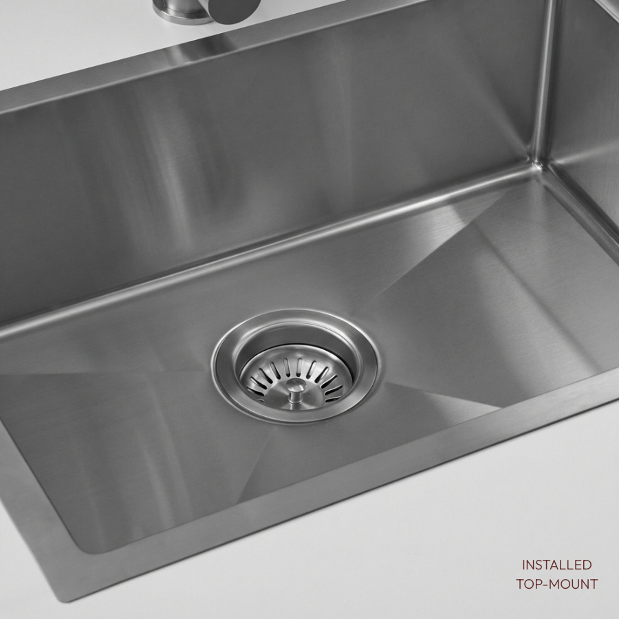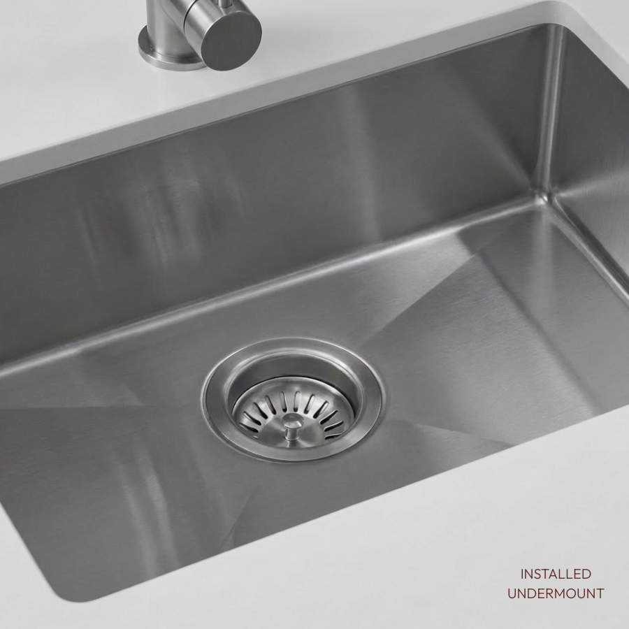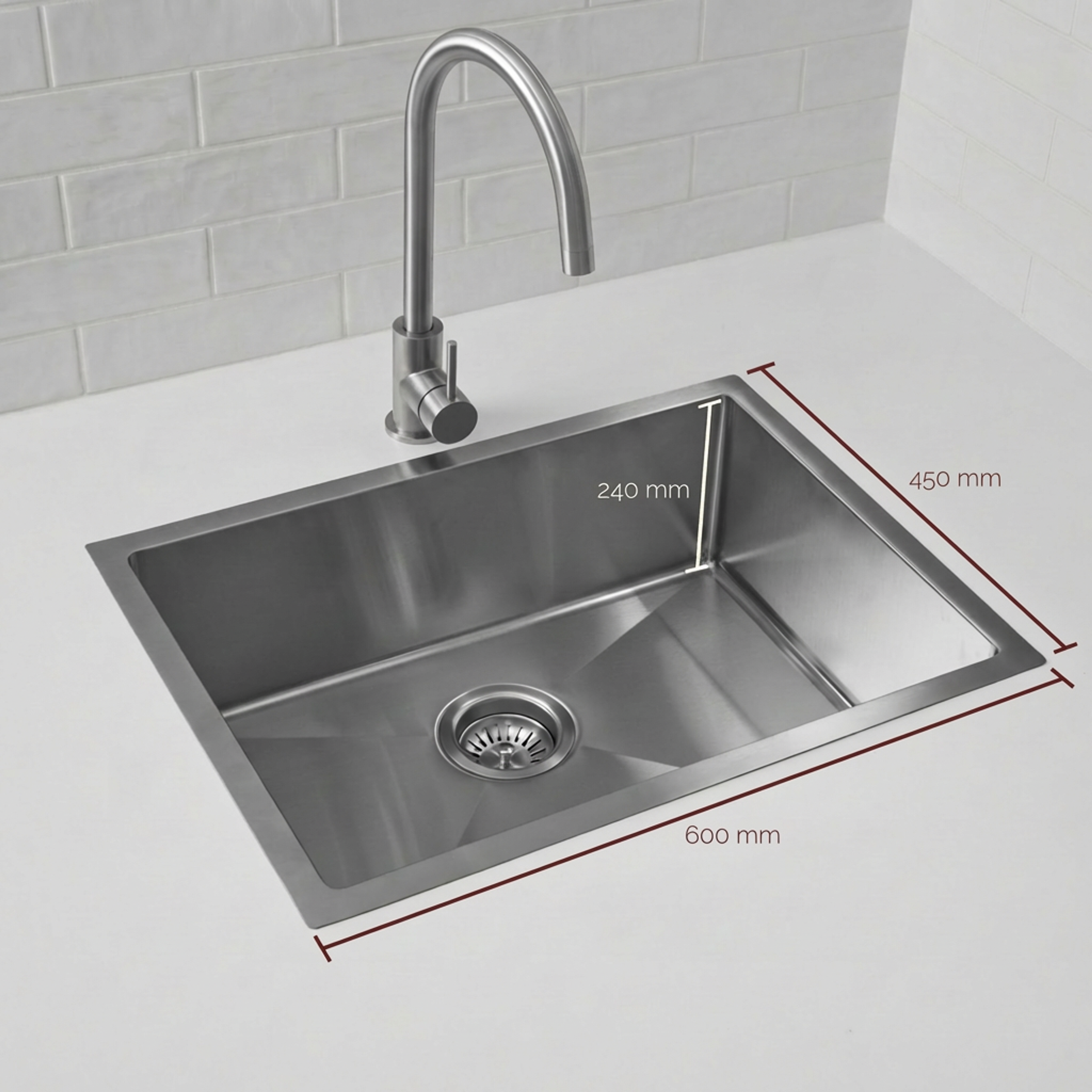 The Single Bowl Deep Sink 550x450mm Stainless Steel brings a refined, architectural look to the kitchen. Its deep single bowl makes soaking trays and pots easy, while the durable stainless steel finish sits quietly against stone and timber bench tops. A generous, handmade kitchen sink for homes that cook often and want a clean, modern feel.