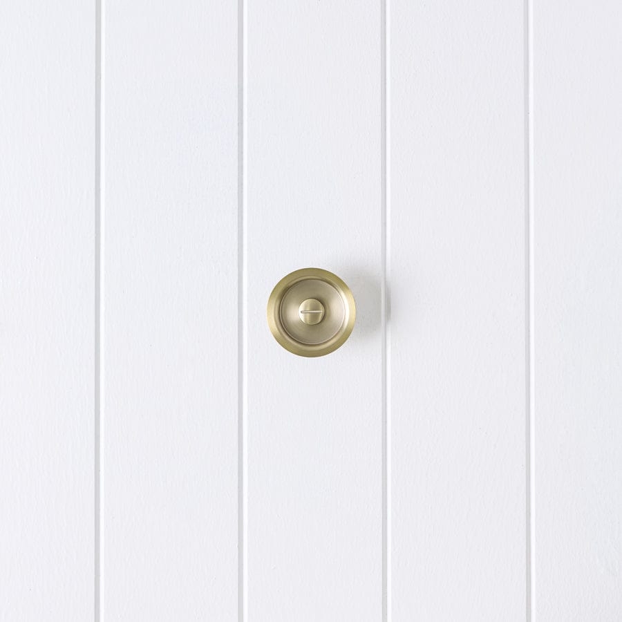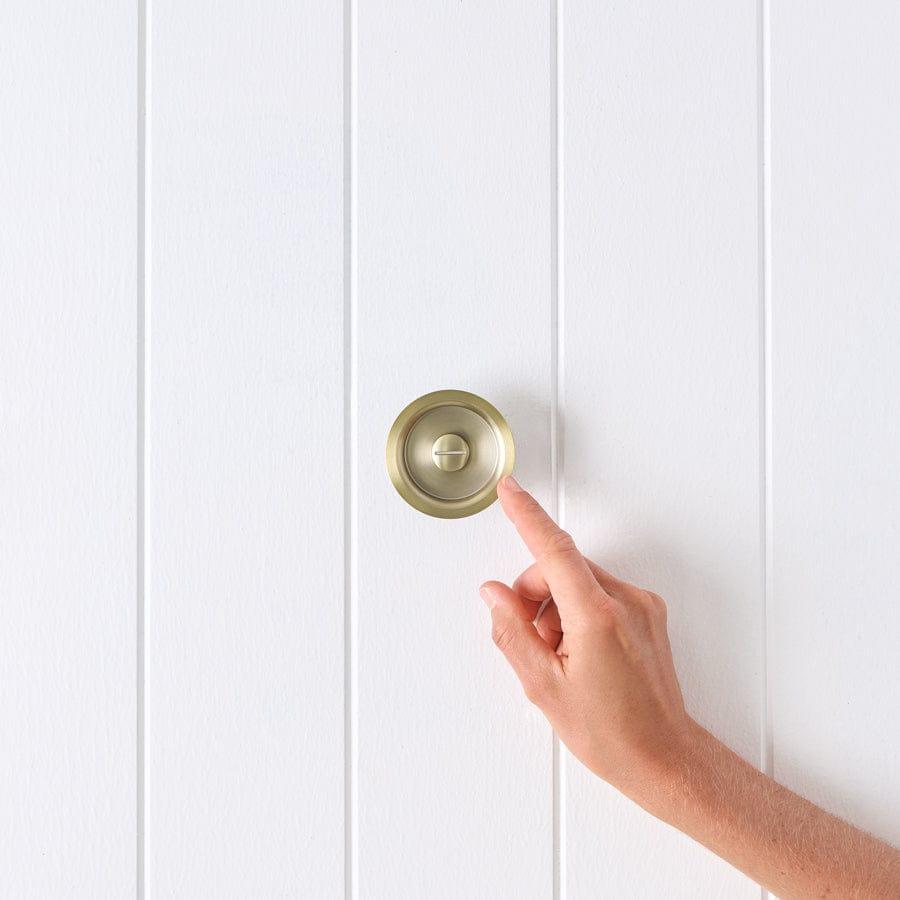 The Sliding Door Lock in Warm Brushed Nickel offers a soft, versatile metallic accent that works with both warm and cool schemes. The round stainless steel body and easy grasp turn sit neatly with our matching sliding door pull. With coin operated emergency release, it delivers gentle, secure privacy in everyday spaces.