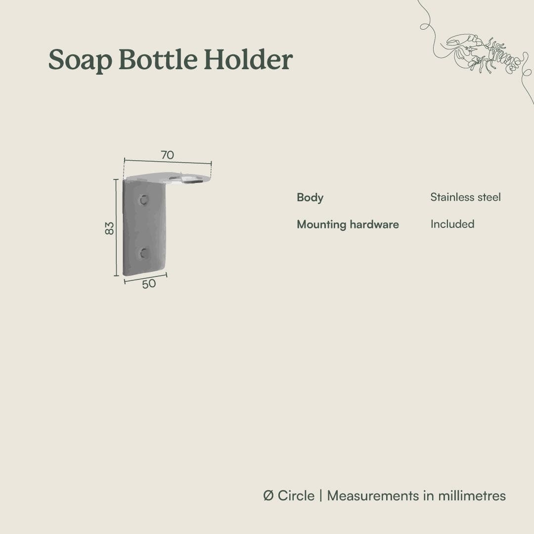 The Soap Bottle Holder in Brushed Brass brings a soft golden accent to the wall while lifting bottles clear of the bench. The brushed brass finish pairs beautifully with warm stone and timber, and the discreet stainless steel bracket keeps the profile minimal. A simple styling piece that helps the bathroom feel calm and organised.
