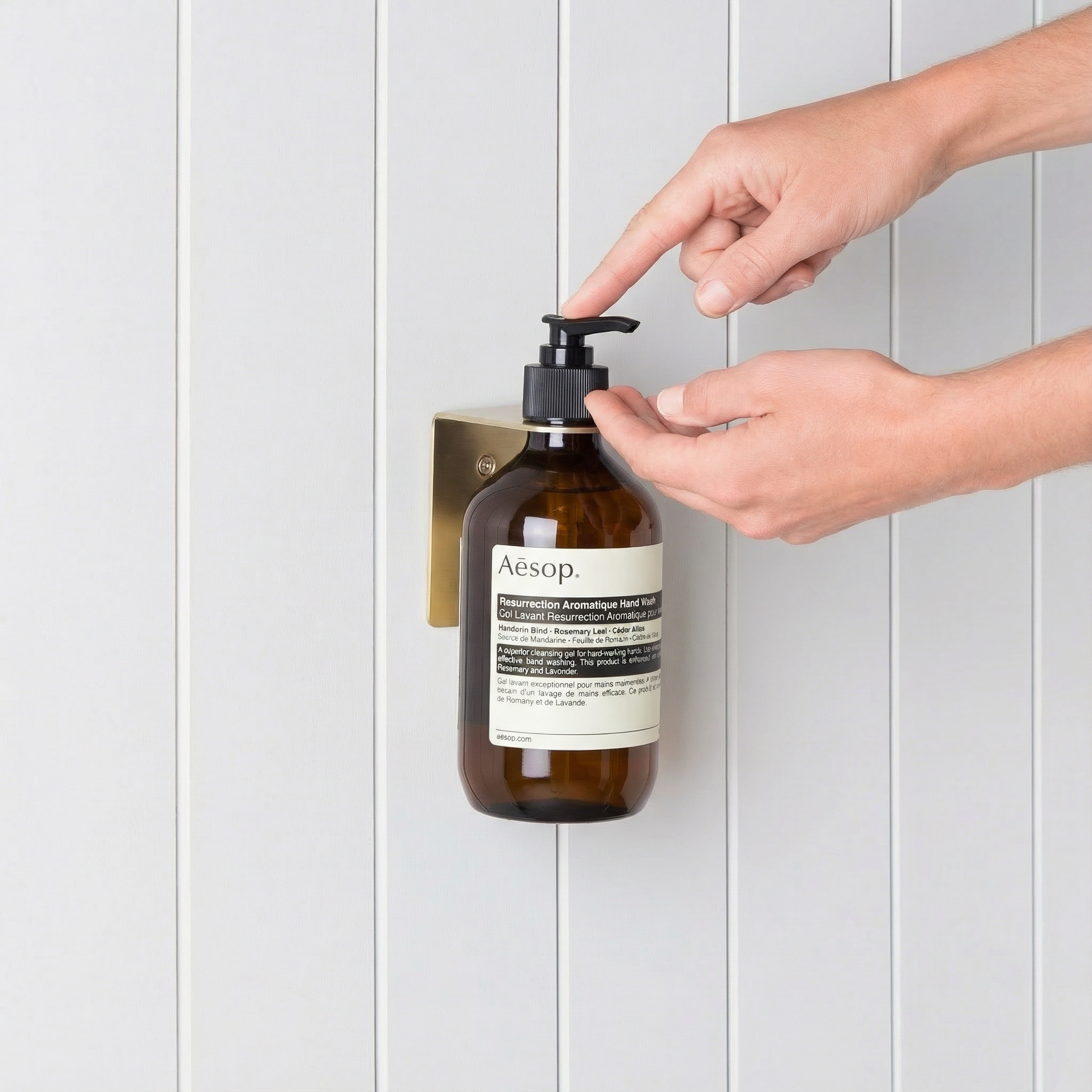 The Soap Bottle Holder in Warm Brushed Nickel offers a soft, neutral metallic highlight that works with almost any palette. Mounted to the wall, it lets one sculptural bottle become part of the bathroom styling while keeping surfaces clear. A refined stainless steel holder for thoughtful, clutter free spaces.