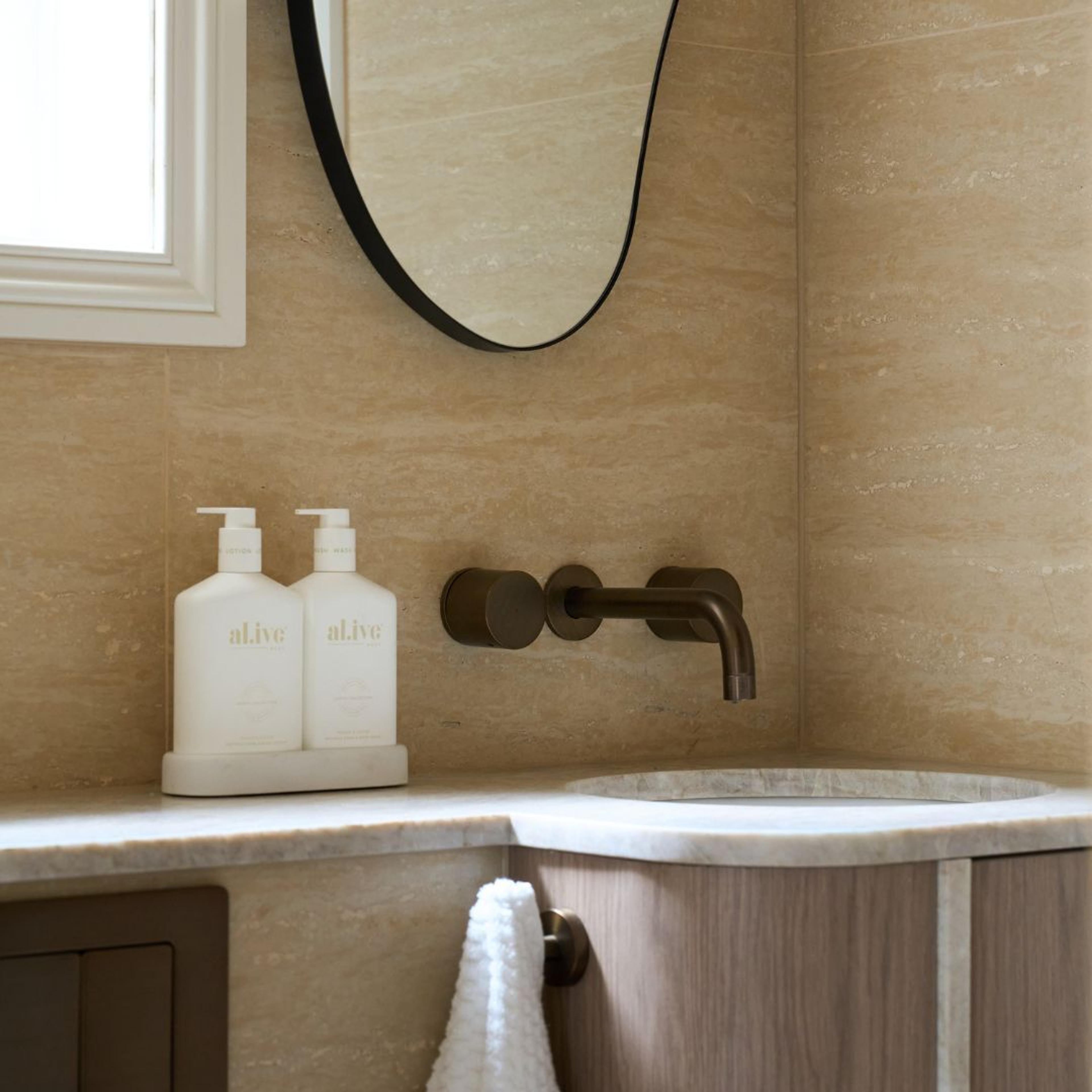 Get the look of Steph and Gian’s (Winners of The Block 2023) renovation with this style pack, including the same tiles and tapware used throughout their home. Featuring warm neutrals and textures to reflect their Japandi inspired design style.