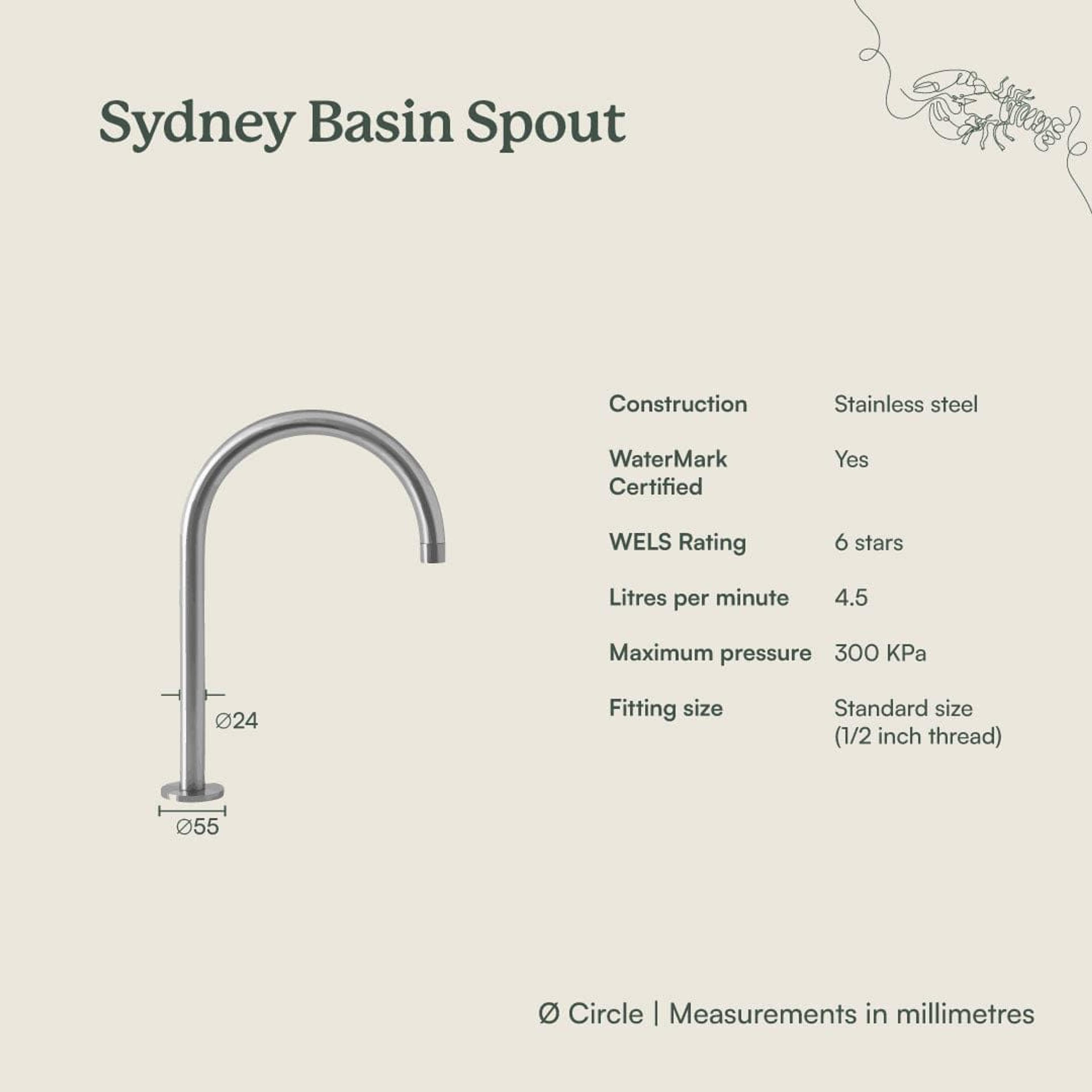 The Sydney Basin Spout in Stainless Steel offers a clean, timeless look that works with any palette. The tall curved spout in brushed stainless steel feels refined but relaxed, giving comfortable clearance for hand washing and daily rituals. A versatile stainless basin spout for contemporary Australian homes.