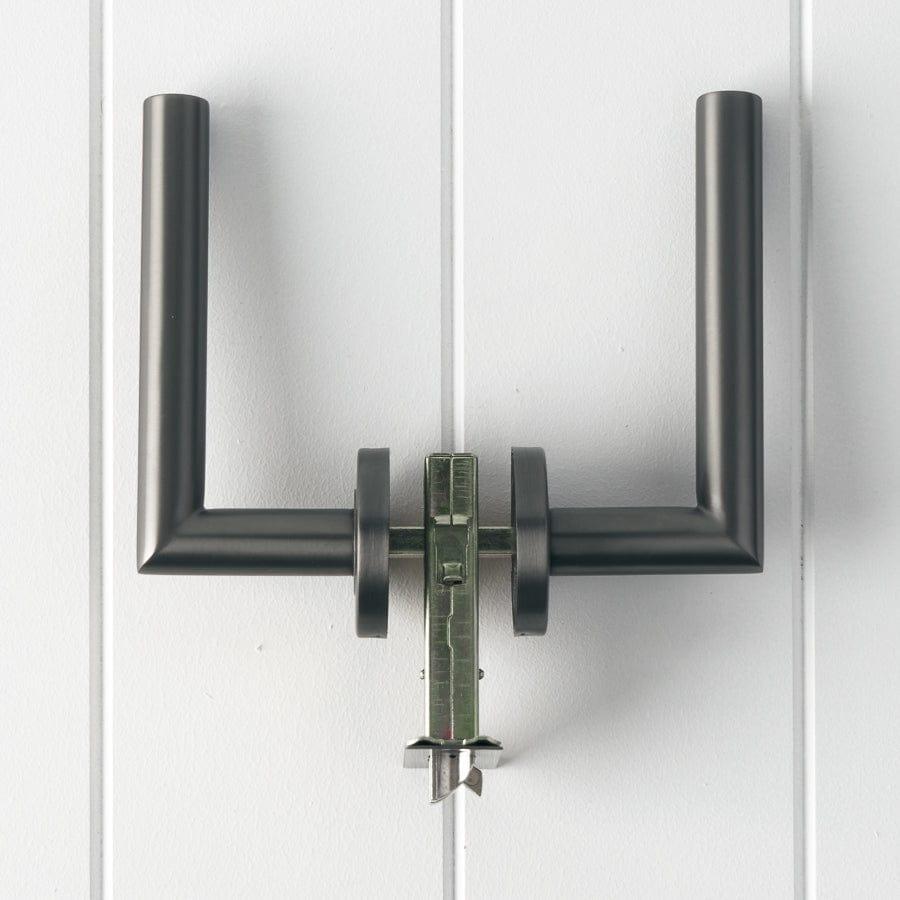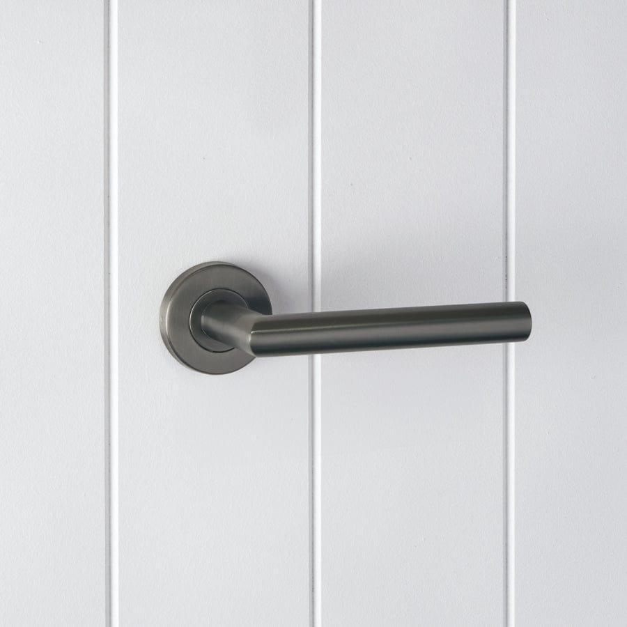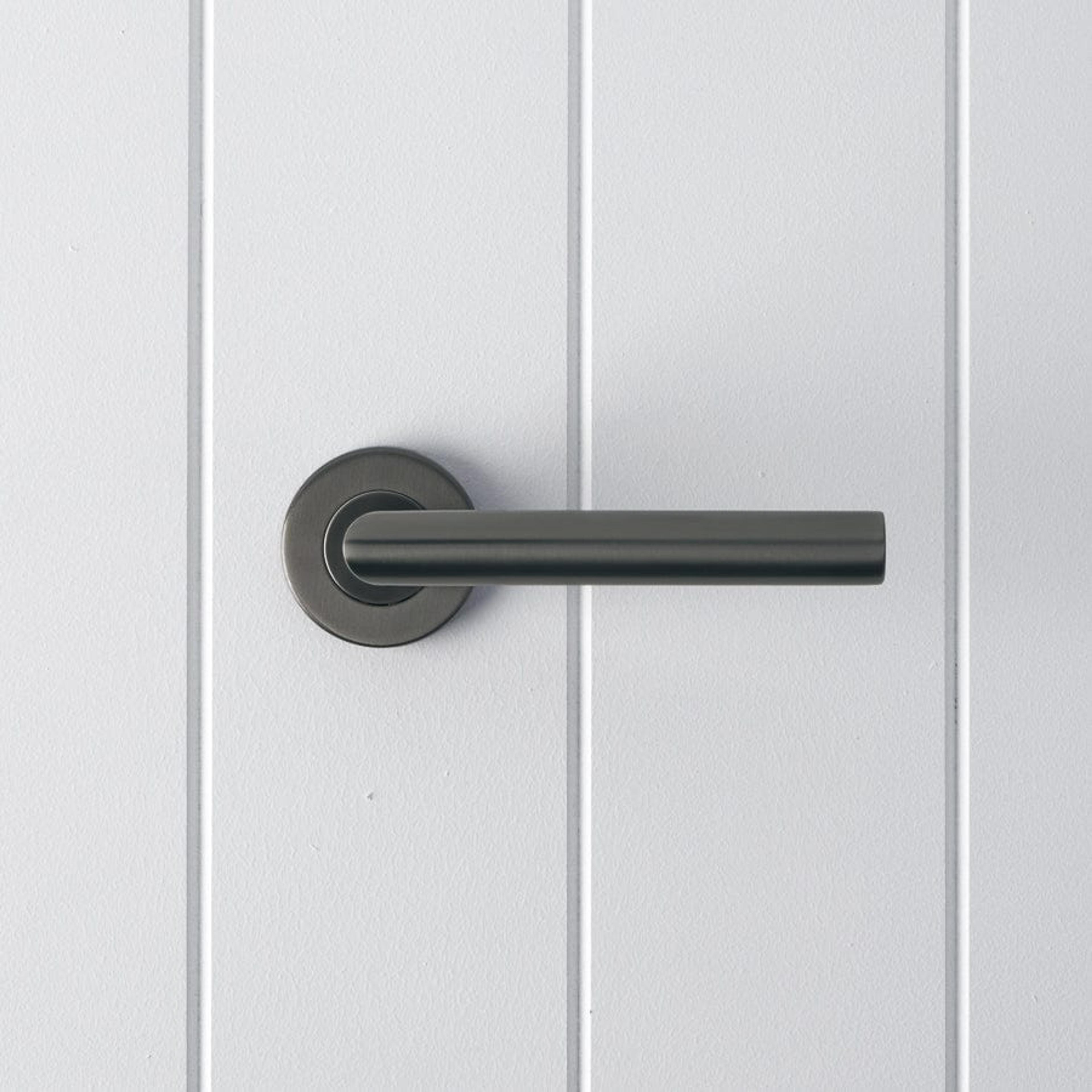 The Sydney Door Handle in Gunmetal introduces a deep, contemporary accent to doors. The slim stainless steel lever keeps the profile light while the gunmetal finish adds subtle drama against pale paint or timber. A modern gunmetal door handle that ties in with darker tapware.