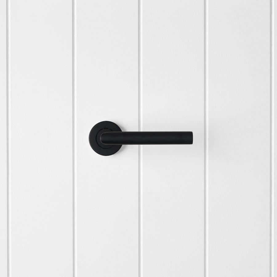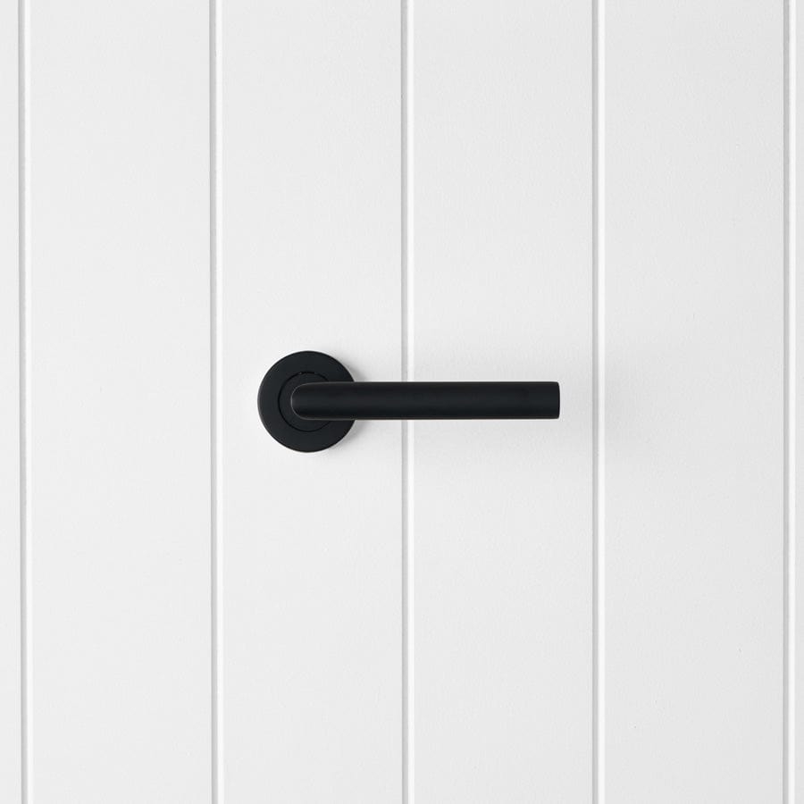The Sydney Door Handle in Matte Black draws a clean black line across the door, perfect for modern Australian homes. The rounded stainless steel lever feels solid yet refined, and the matte finish contrasts beautifully with white walls. A bold matte black door handle for cohesive interiors.