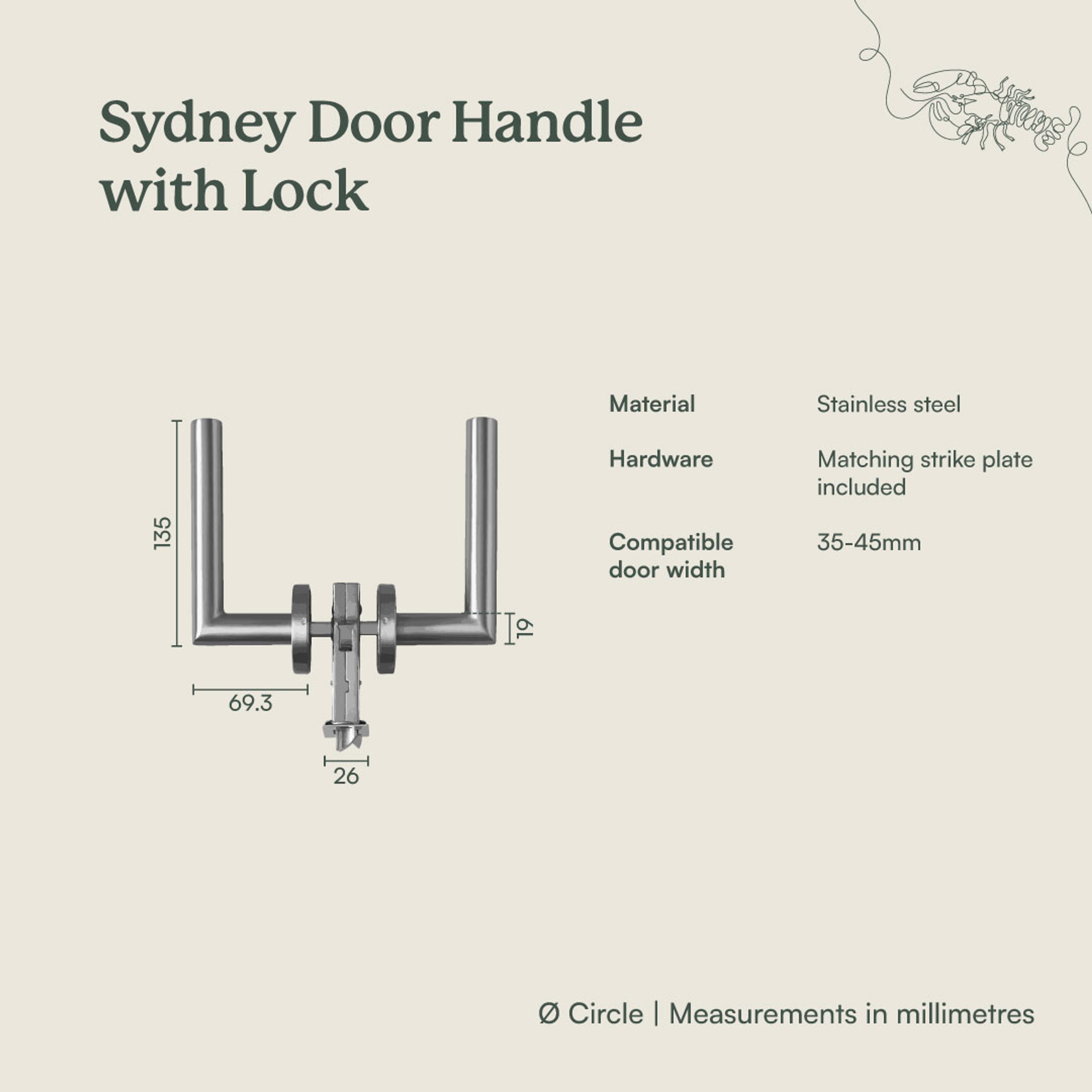 The Sydney Door Handle with Lock in Warm Brushed Nickel offers a soft, neutral metallic tone that works with both cool and warm palettes. The slim stainless steel lever and subtle lock keep the look minimal while delivering everyday privacy. A versatile brushed nickel door handle with lock for contemporary homes.