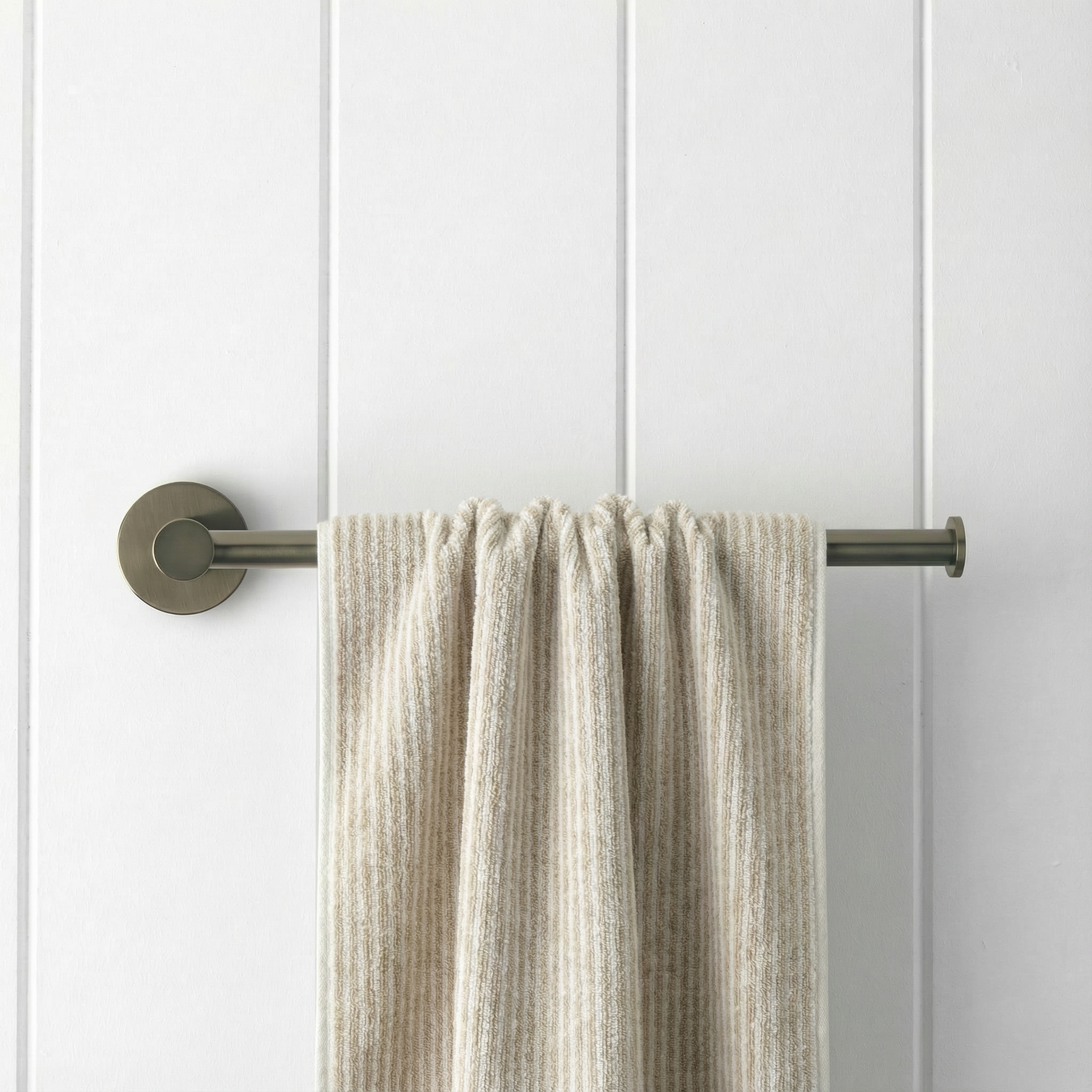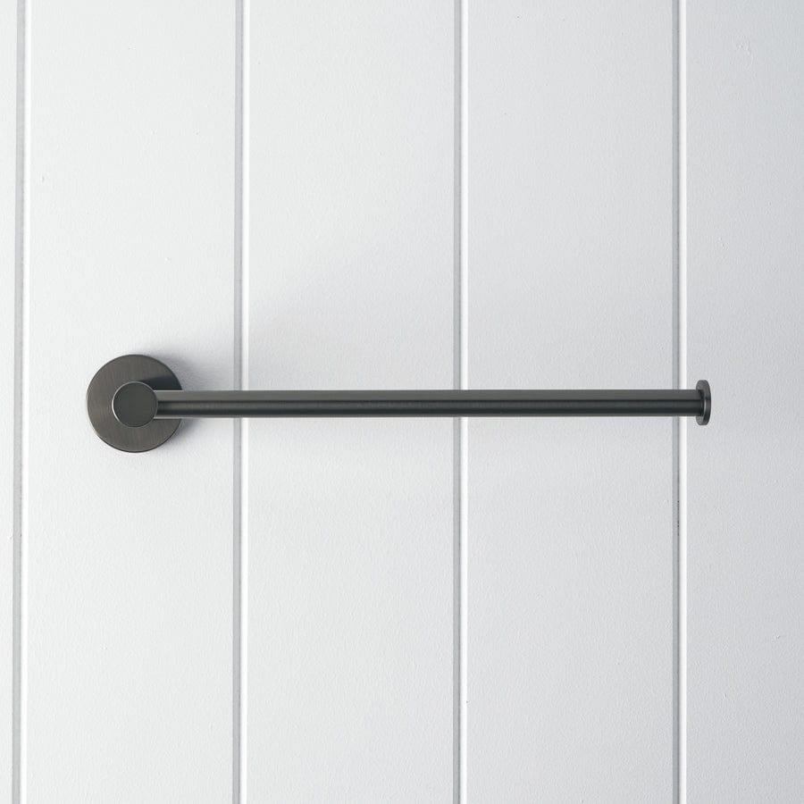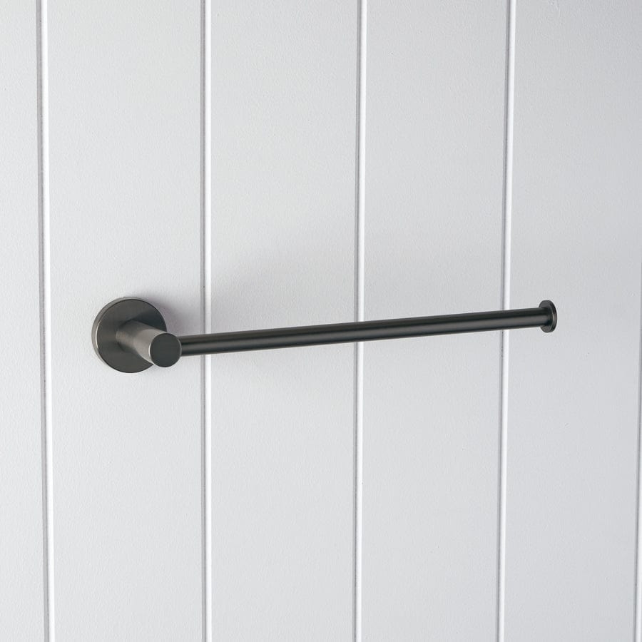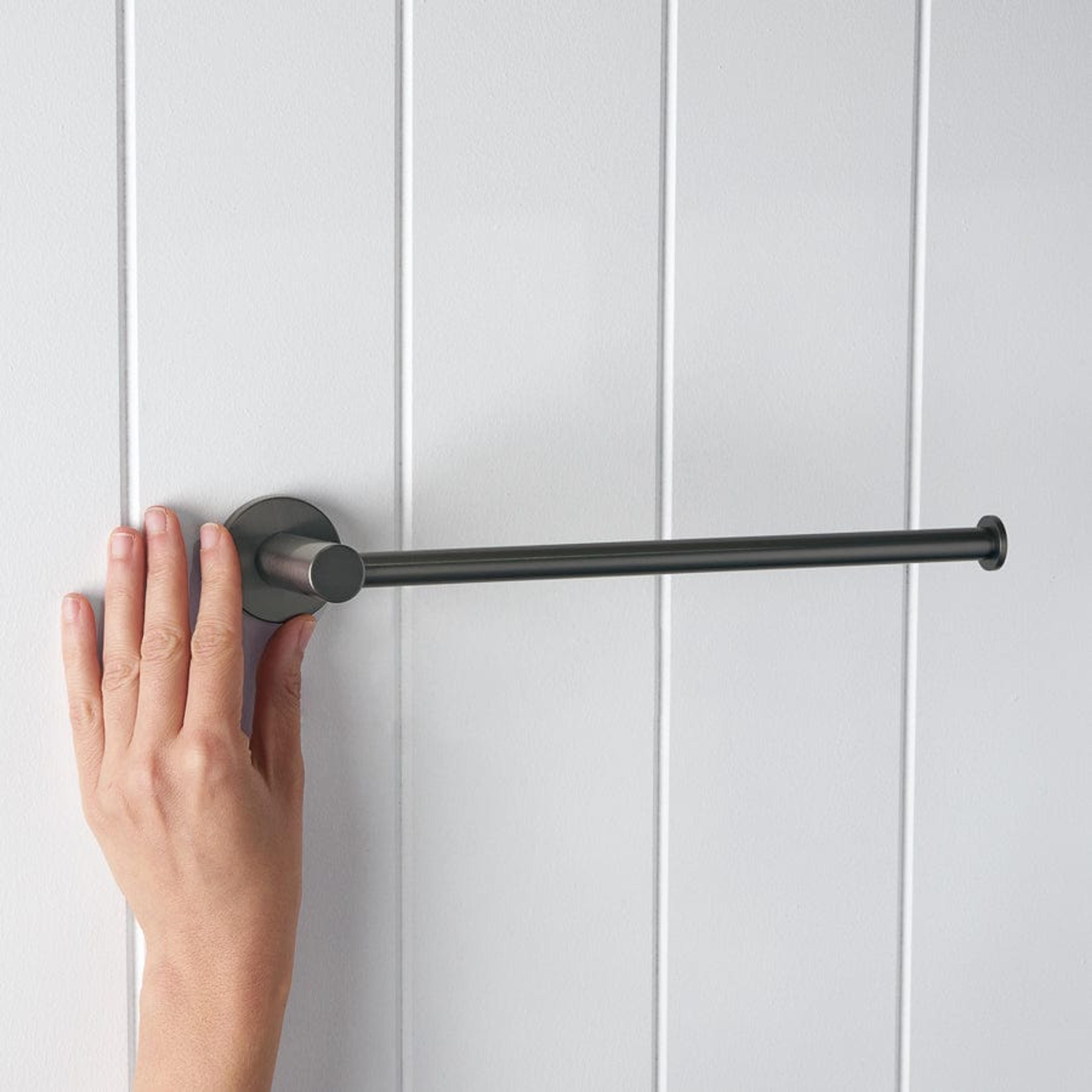 The Sydney Hand Towel Holder in Gunmetal introduces a subtle charcoal note that grounds pale tiles and stone. Its minimal stainless steel arm keeps the towel floating cleanly against the wall, perfect for contemporary bathrooms.