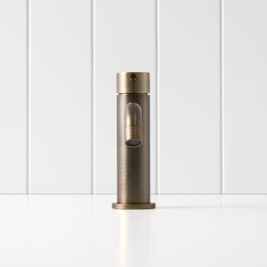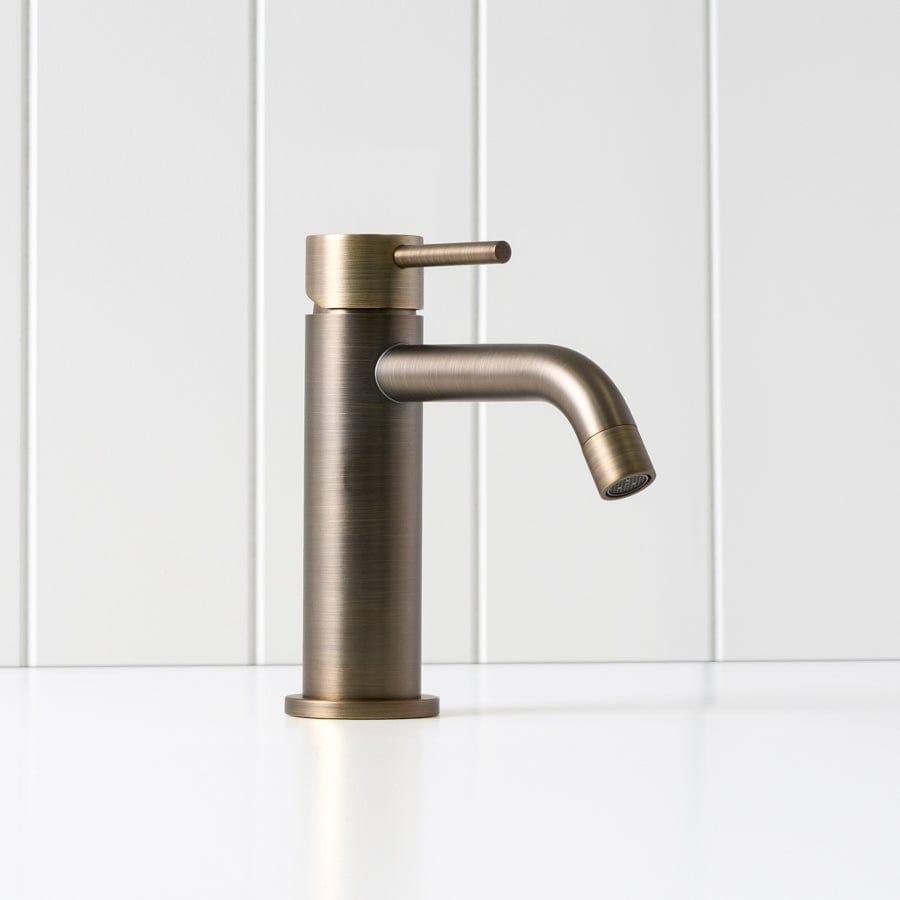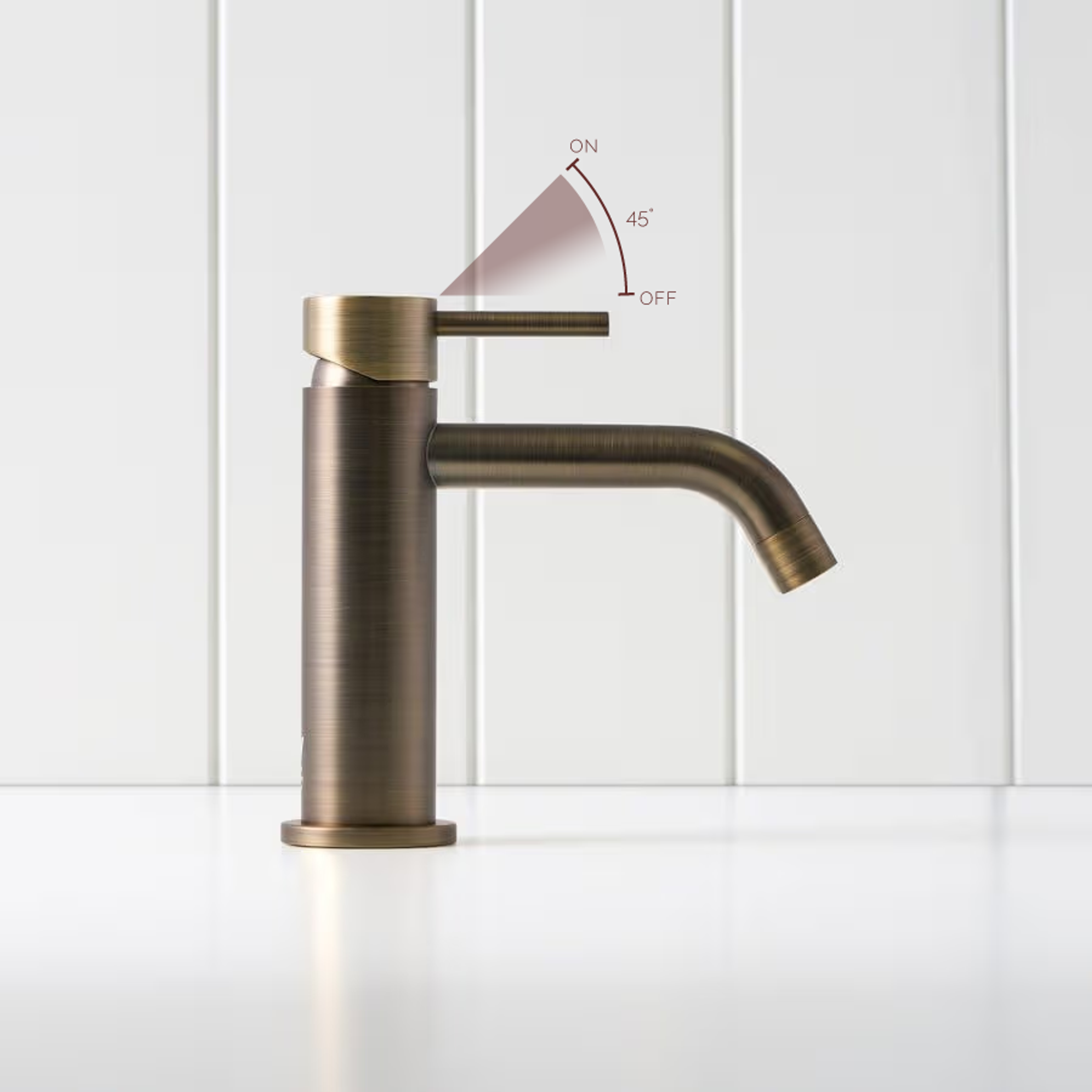 The Sydney Short Basin Mixer in Antique Brass brings a warm, refined note to compact vanities and powder rooms. Made from stainless steel, this short basin mixer sits neatly beside above counter basins without feeling bulky. A smooth single lever keeps hand washing easy while the Antique Brass finish adds depth to the bathroom palette.