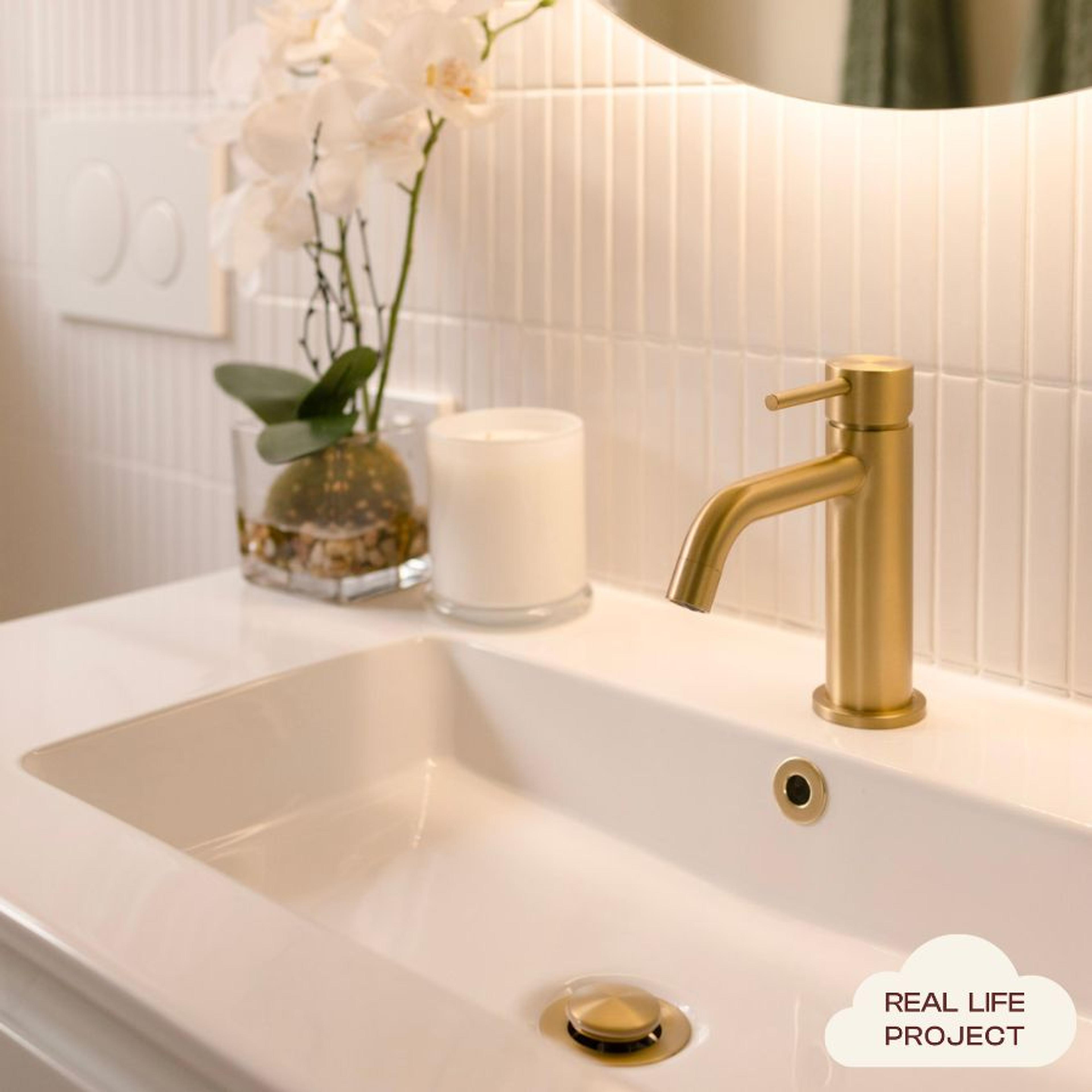 The Sydney Short Basin Mixer in Brushed Brass adds soft glow and clean lines to the bathroom. Its compact stainless steel body works perfectly with smaller stone tops and vessel basins. This short basin mixer gives just enough height for comfortable use while the Brushed Brass finish pairs beautifully with warm tiles and timber.