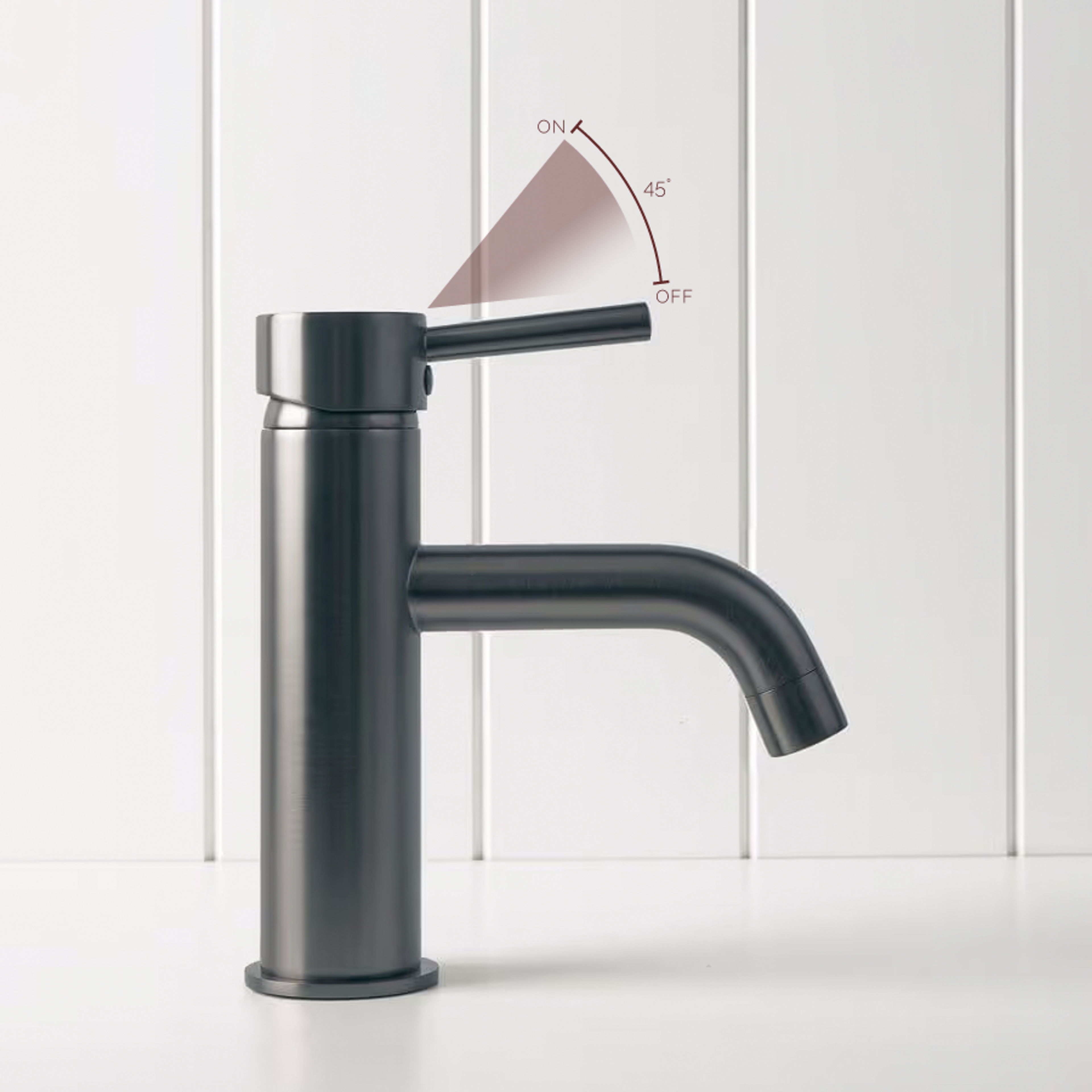 The Sydney Short Basin Mixer in Gunmetal delivers a grounded, contemporary accent to smaller basins. The deep Gunmetal finish over stainless steel creates subtle contrast against pale tiles and stone. With its compact height and curved spout, this short basin mixer keeps the vanity feeling calm and uncluttered.