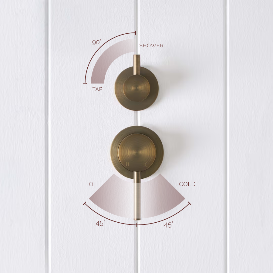 The Sydney Shower Diverter and Mixer in Antique Brass brings warm, rounded forms to the shower wall while keeping lines clean. Crafted from stainless steel with an Antique Brass finish, it lets you switch smoothly between overhead and hand shower for a more considered daily routine. This shower mixer adds a calm, collected feel to renovation bathrooms.