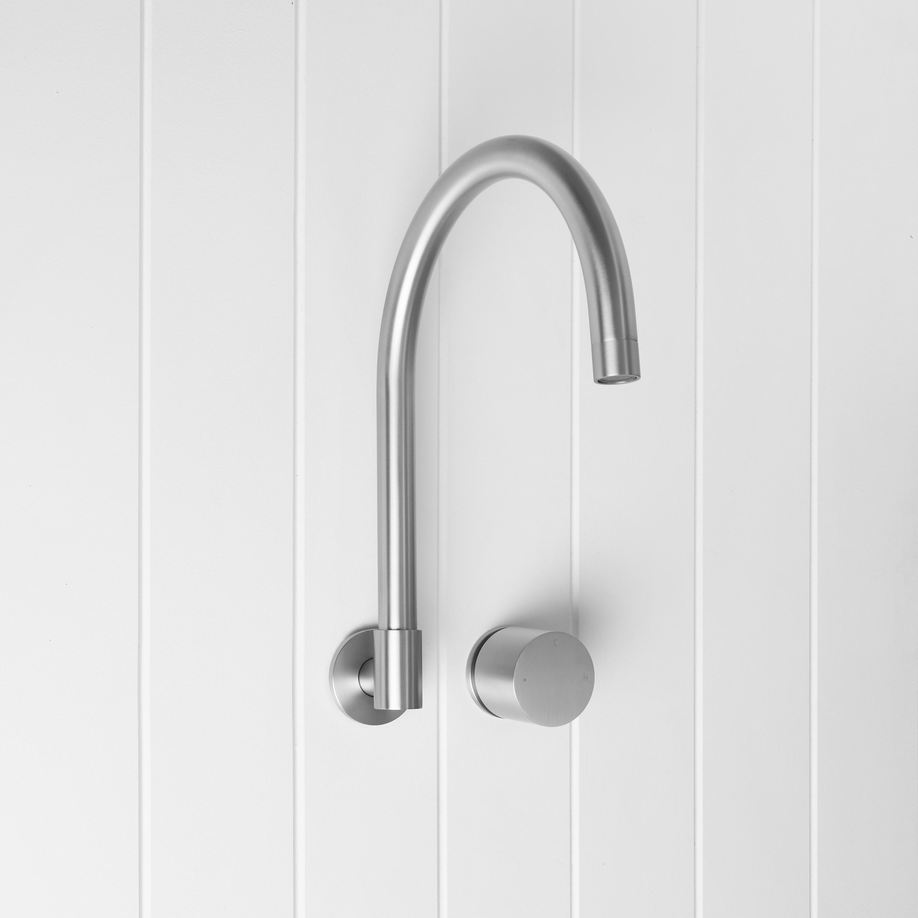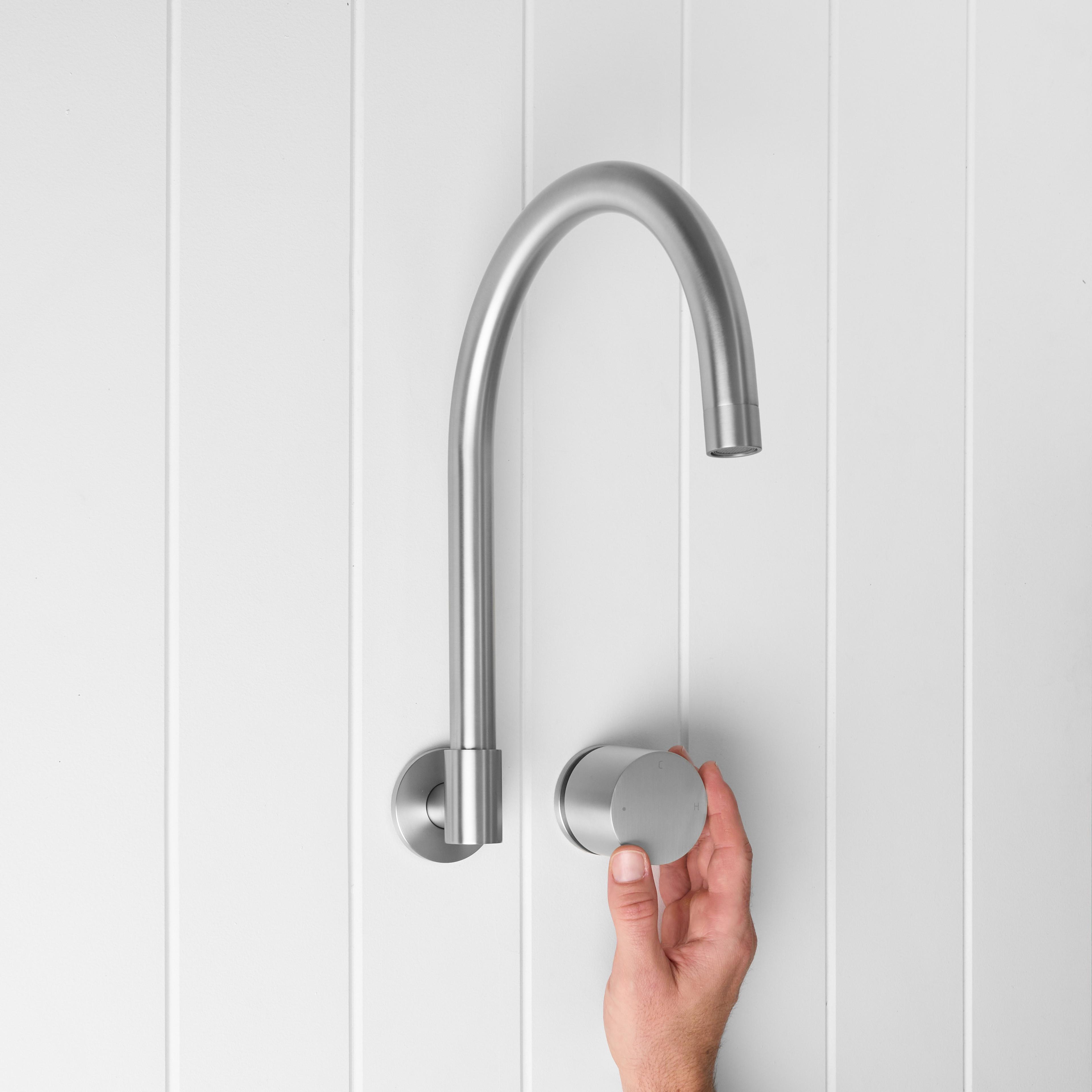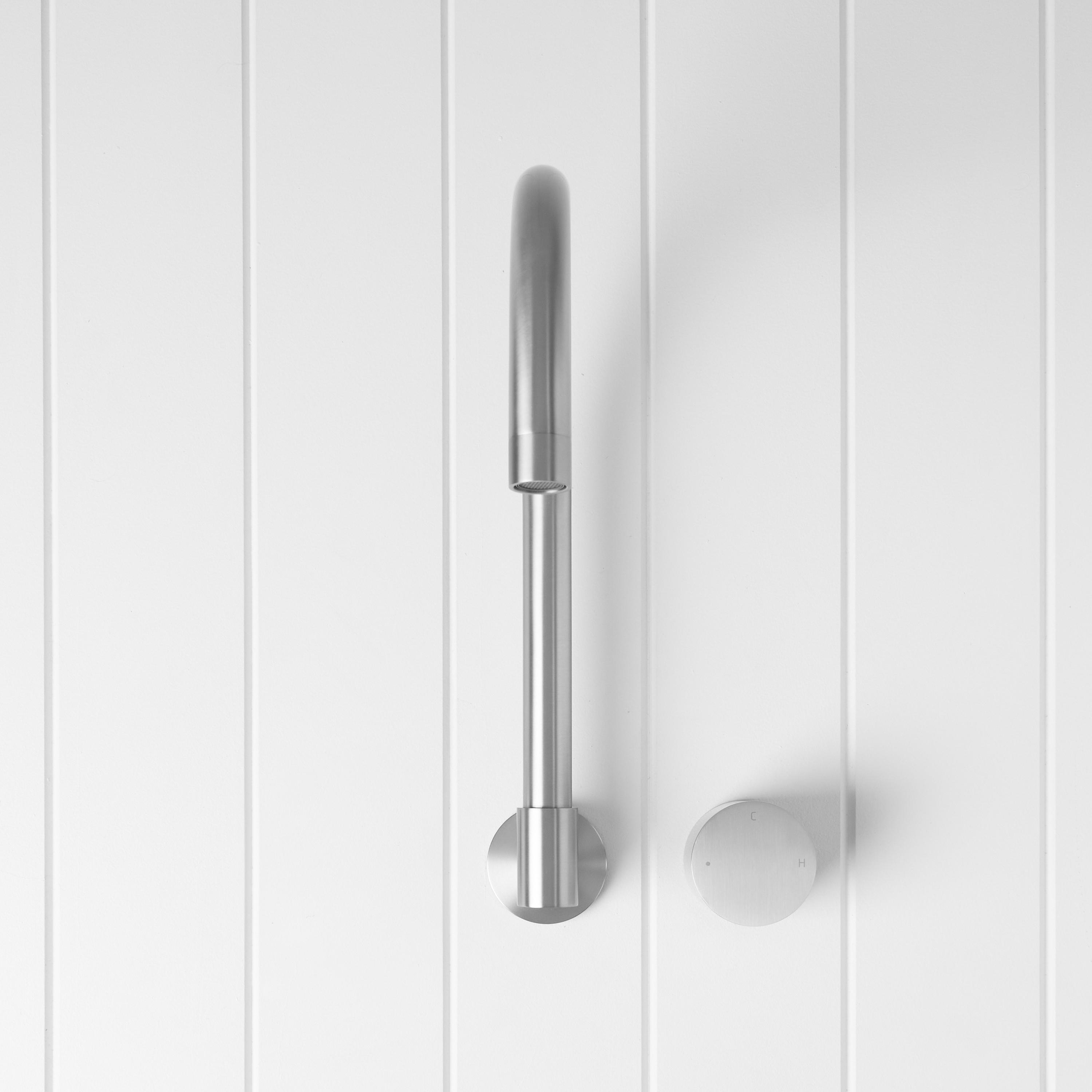 The Sydney Swivel Spout + Progressive Mixer Stainless Steel combines a soft gooseneck profile with practical flexibility, offering a refined solution for compact spaces. Wall-mounted and designed to swivel up to 180 degrees, it allows you to adjust the direction of the water flow to suit your setup.