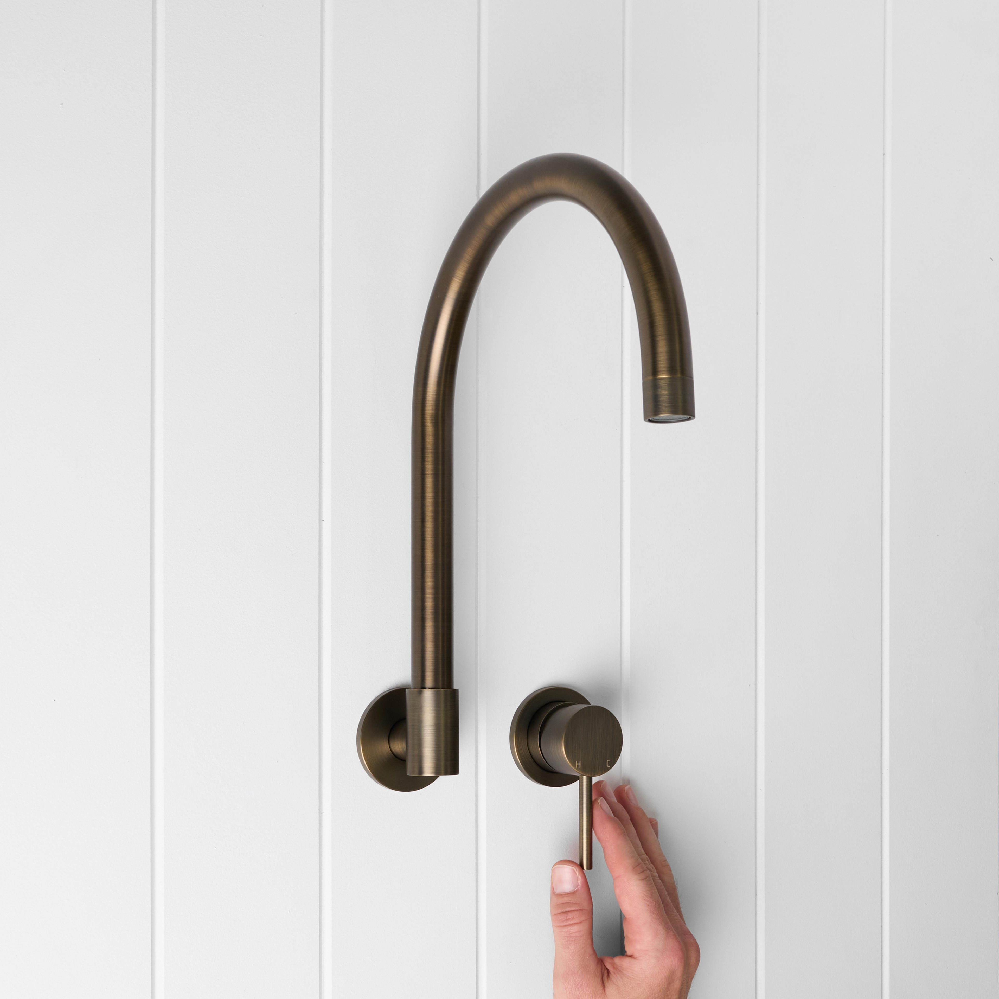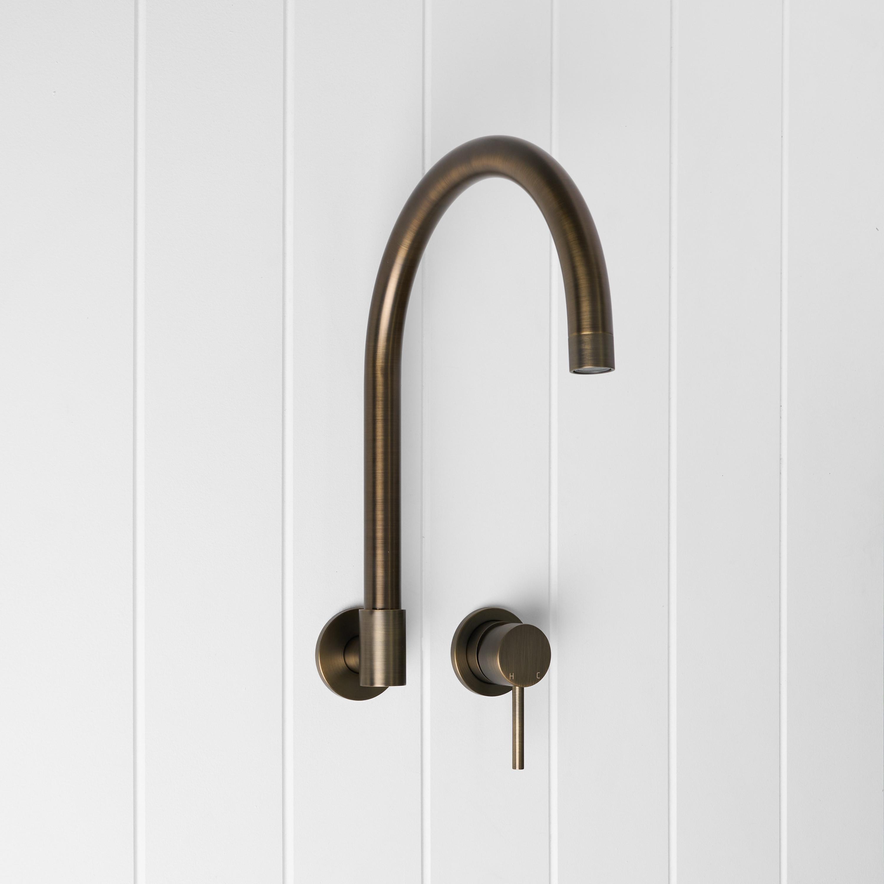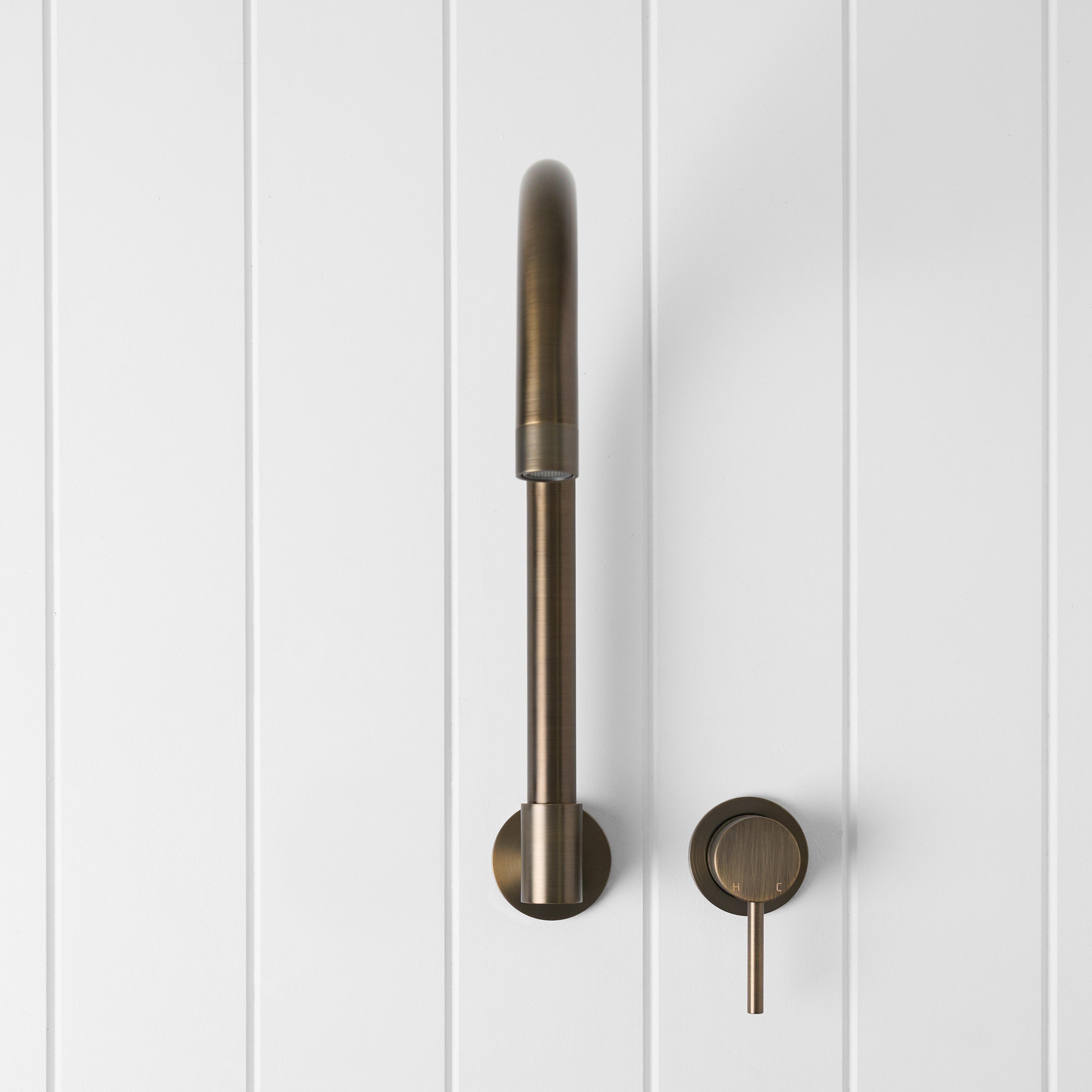 The Sydney Swivel Spout + Wall Mixer Antique Brass combines a soft gooseneck profile with practical flexibility, offering a refined solution for compact spaces. Wall-mounted and designed to swivel up to 180 degrees, it allows you to adjust the direction of the water flow to suit your setup.