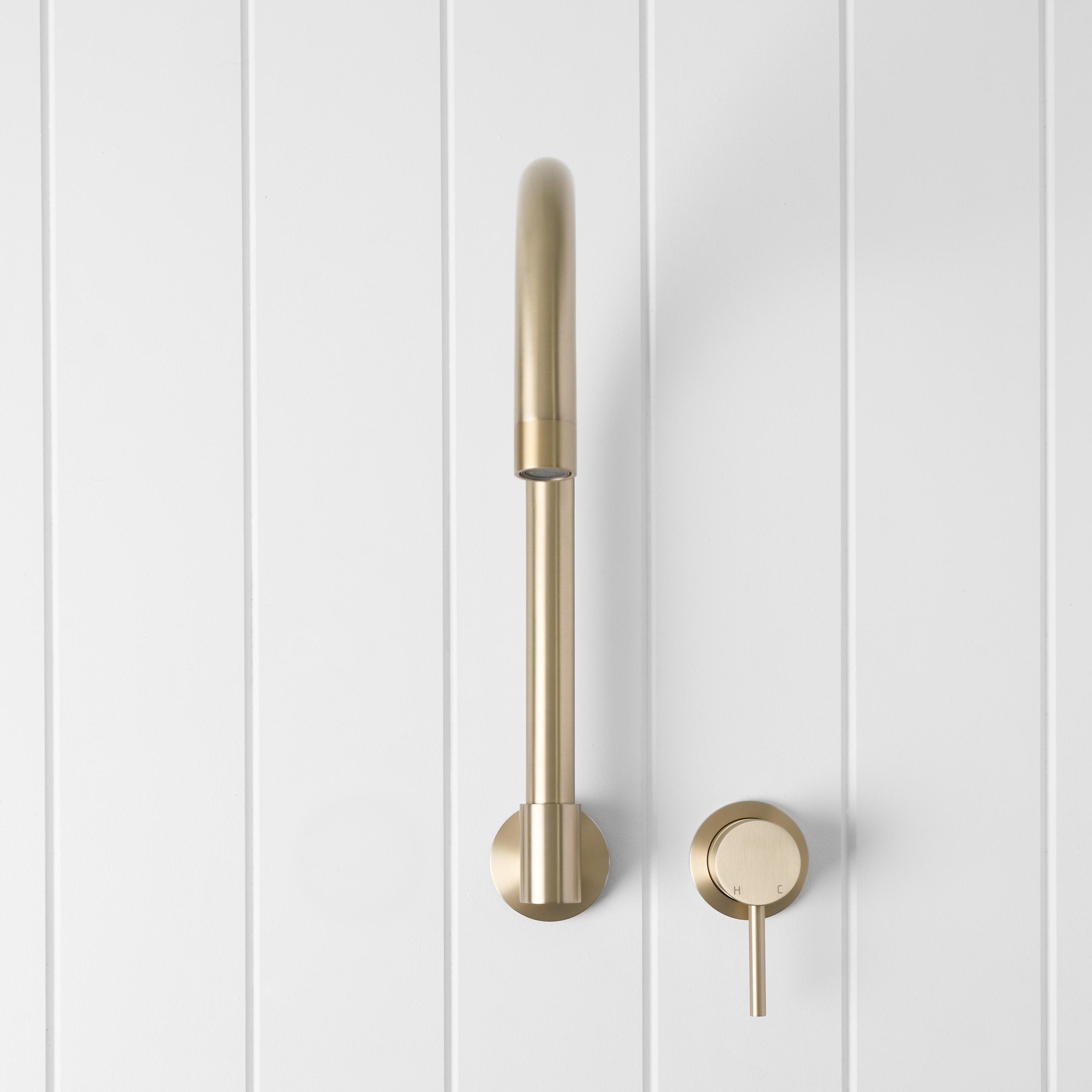 The Sydney Swivel Spout + Wall Mixer Warm Brushed Nickel combines a soft gooseneck profile with practical flexibility, offering a refined solution for compact spaces. Wall-mounted and designed to swivel up to 180 degrees, it allows you to adjust the direction of the water flow to suit your setup.