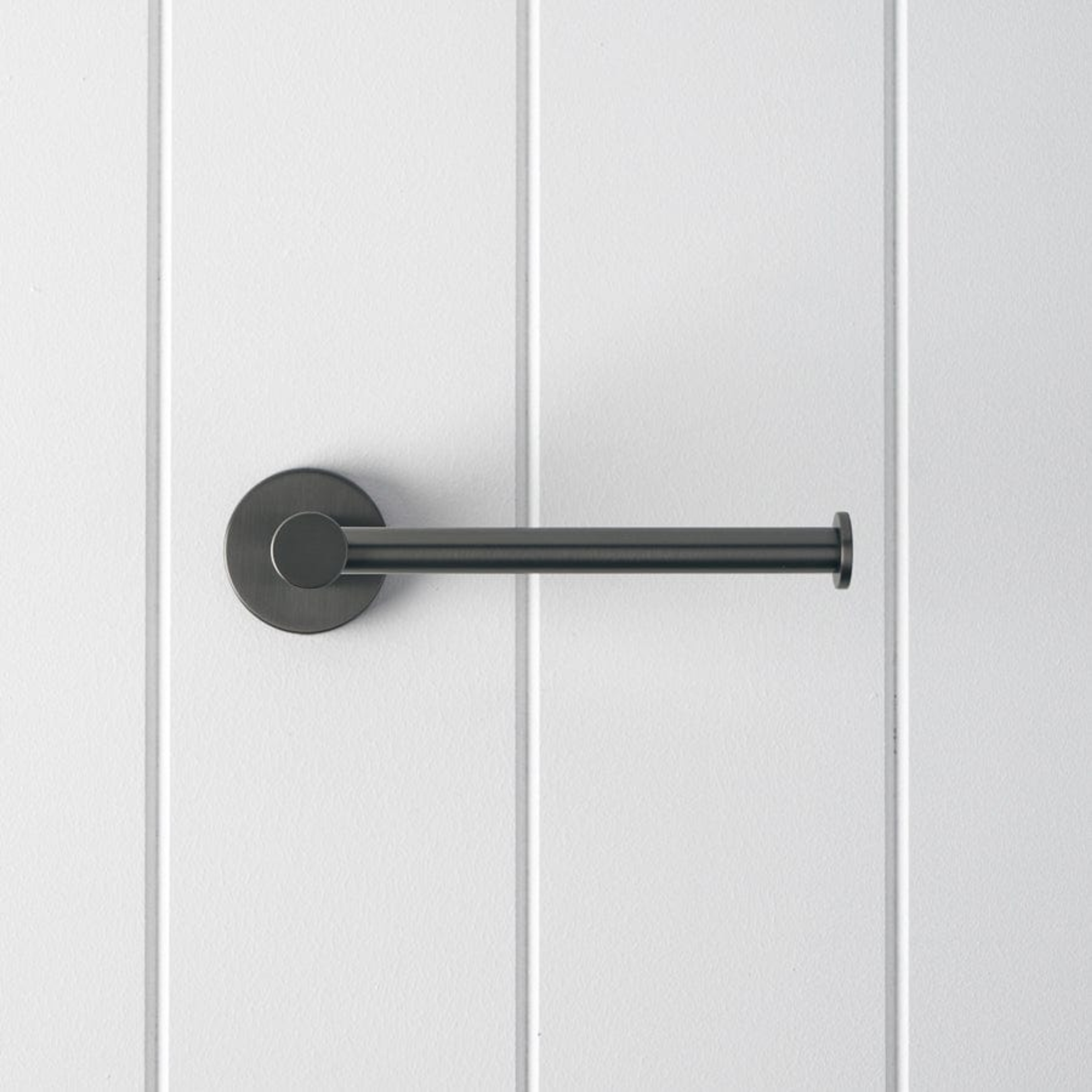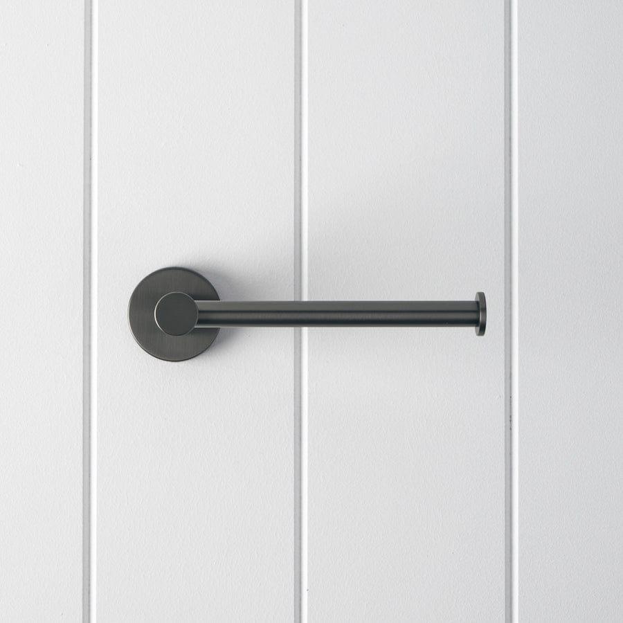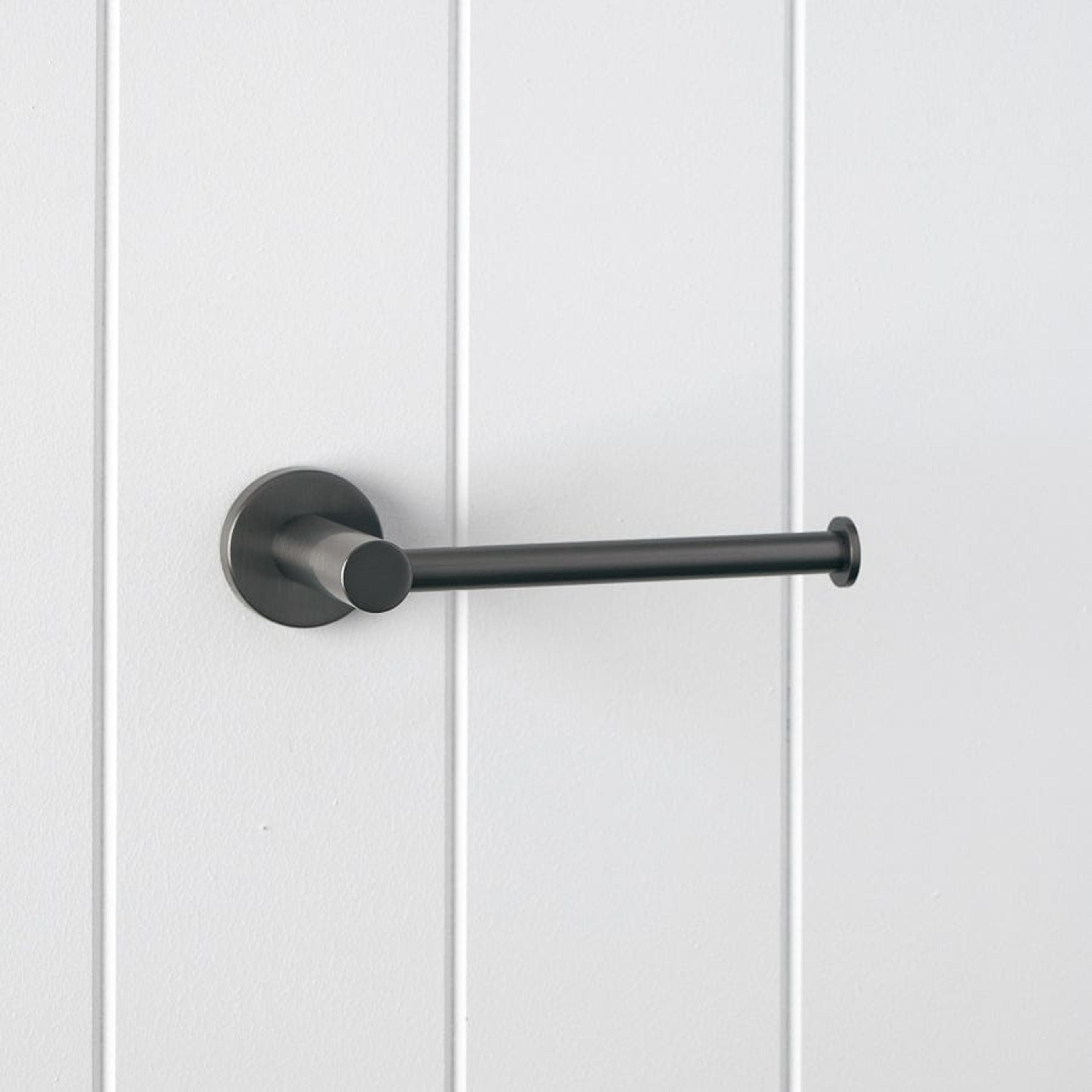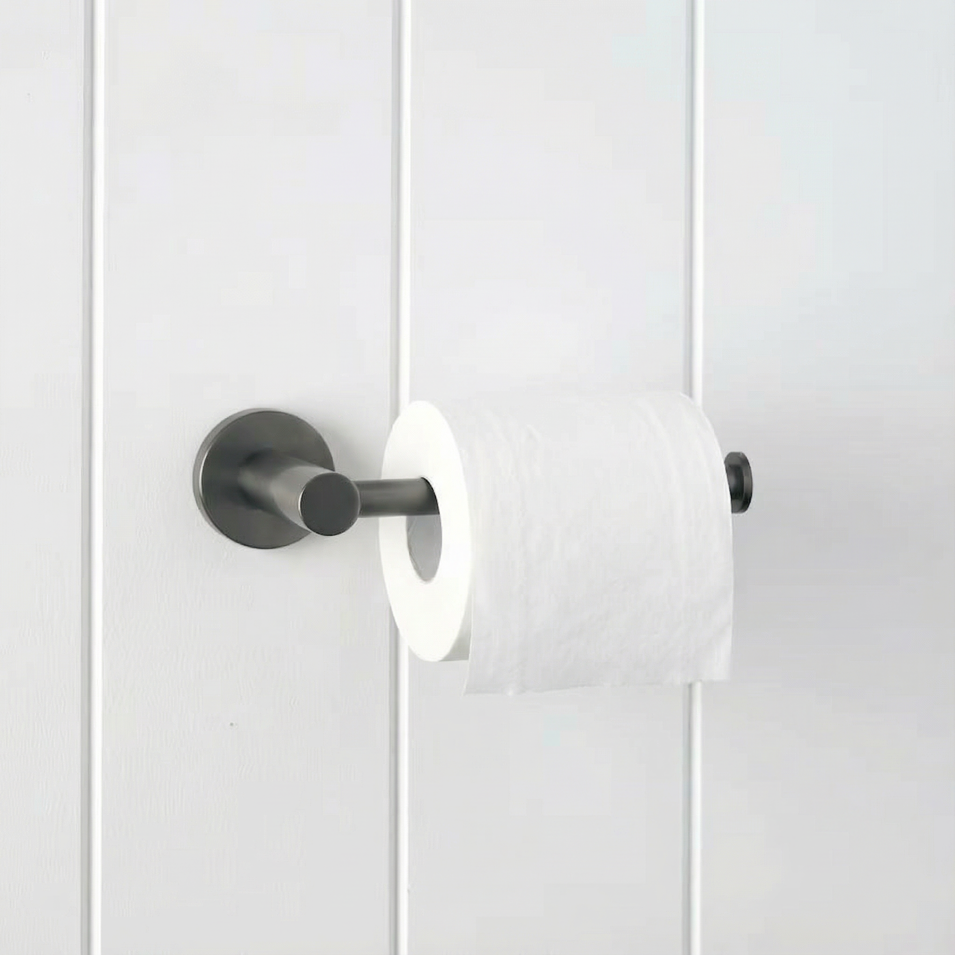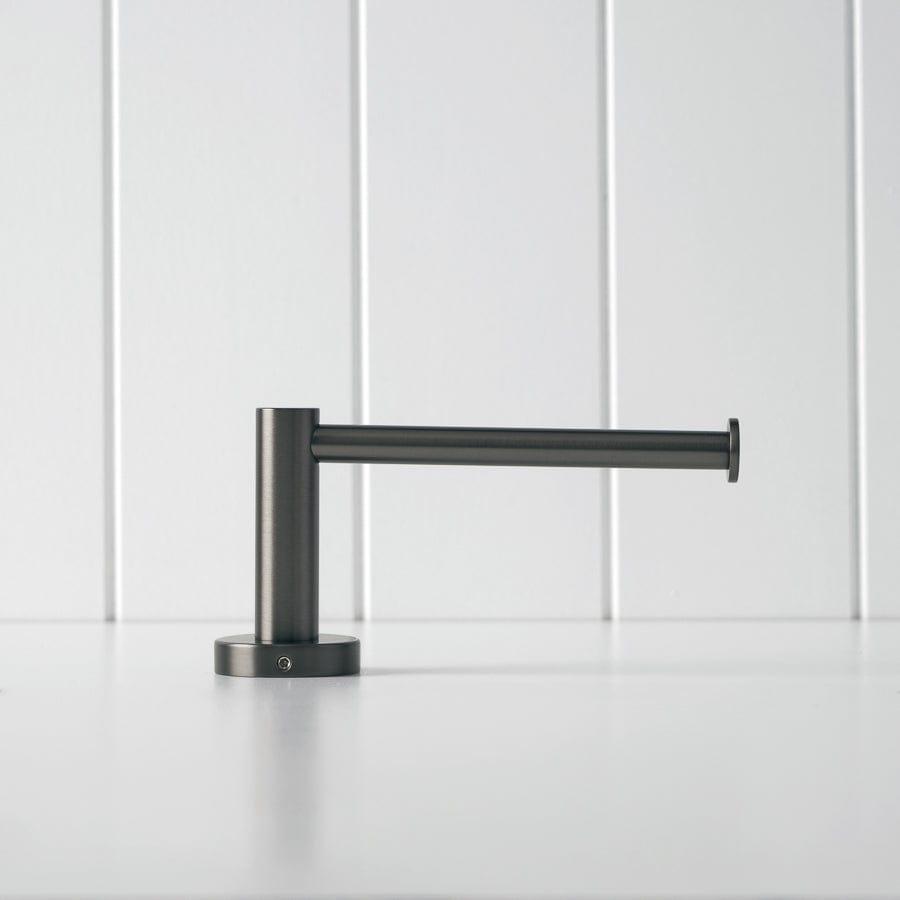 The Sydney Toilet Roll Holder in Gunmetal brings a grounded, contemporary accent to the bathroom wall. The deep Gunmetal finish over stainless steel contrasts softly with pale tiles and stone, while the slim arm keeps the look light. This toilet roll holder completes a modern Gunmetal tapware story.