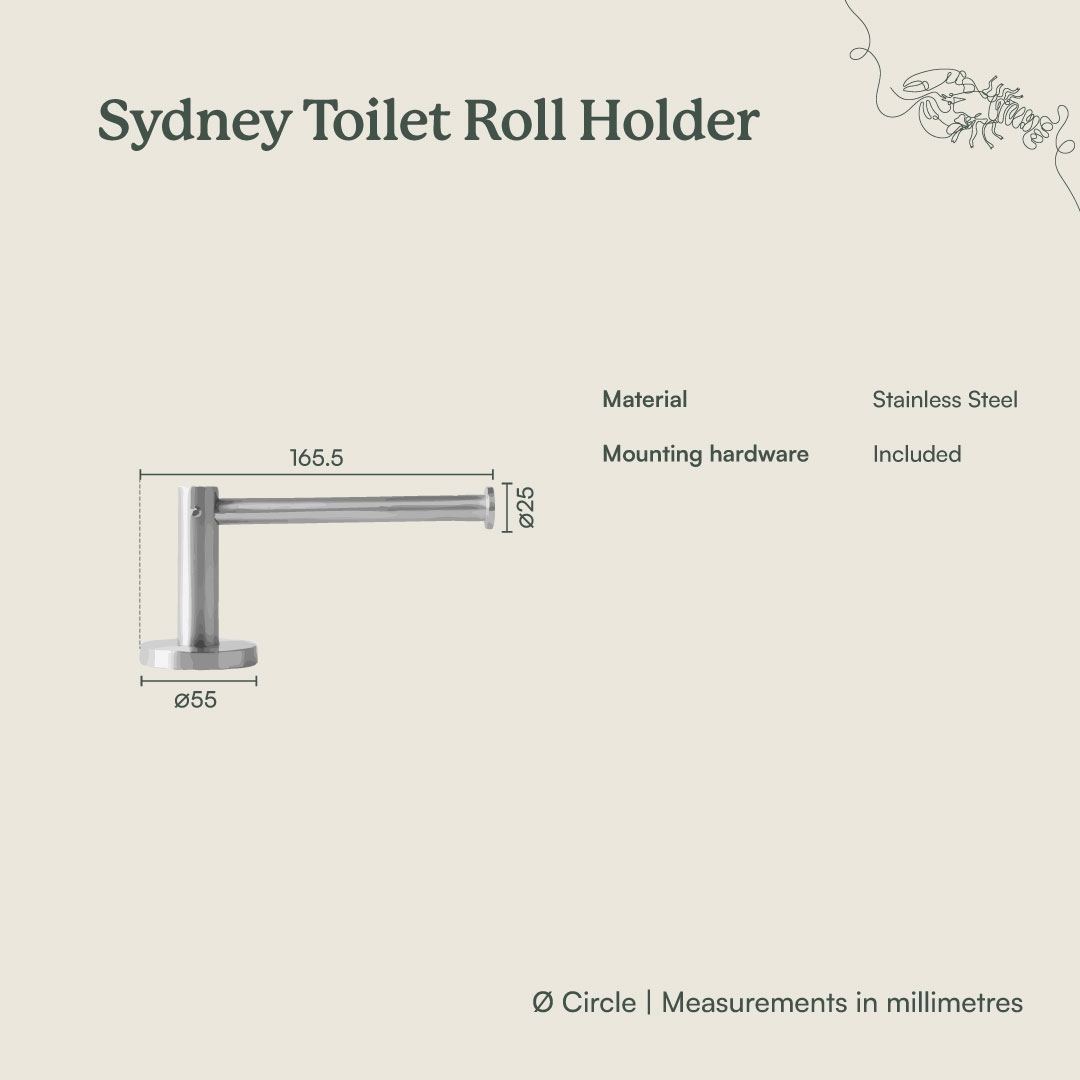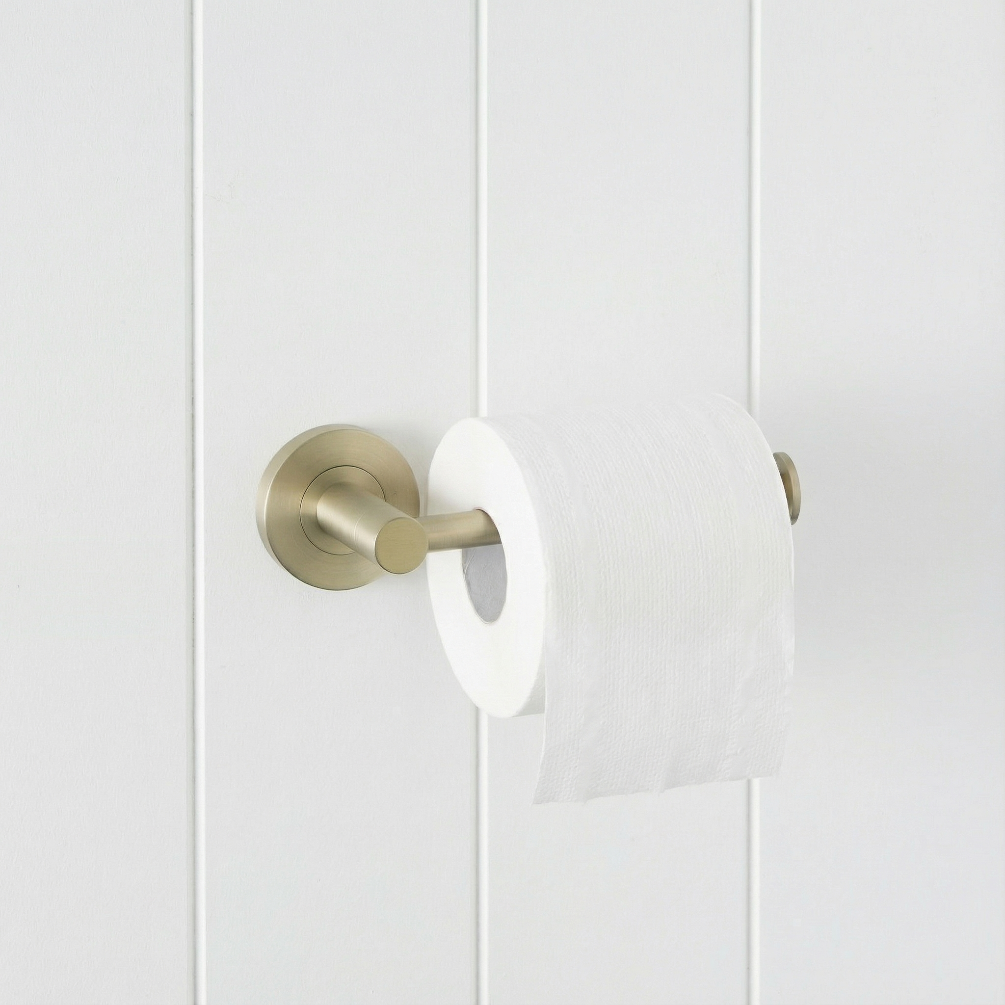 The Sydney Toilet Roll Holder in Warm Brushed Nickel brings a soft, neutral finish to modern bathrooms. The Warm Brushed Nickel tone over stainless steel sits gently against white or textured walls, while the slim arm keeps paper close without visual clutter. It is a calm finishing touch beside the toilet.