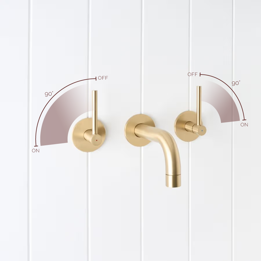 The Sydney Wall Spout and Double Handle Taps in Brushed Brass offer a clean, contemporary look for bathrooms and powder rooms that favour simplicity and modern design. This set includes a streamlined wall-mounted spout paired with two separate handles — one for hot and one for cold — giving you precise and intuitive control over your water temperature.