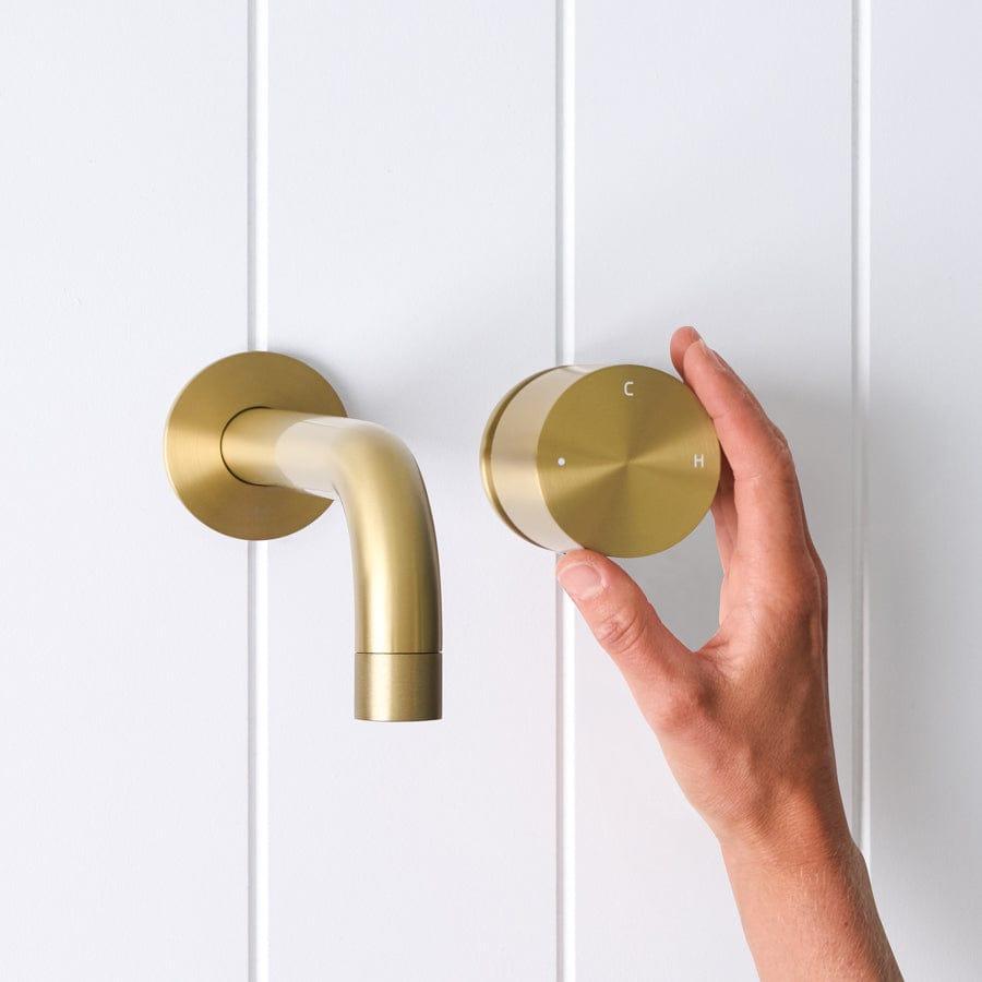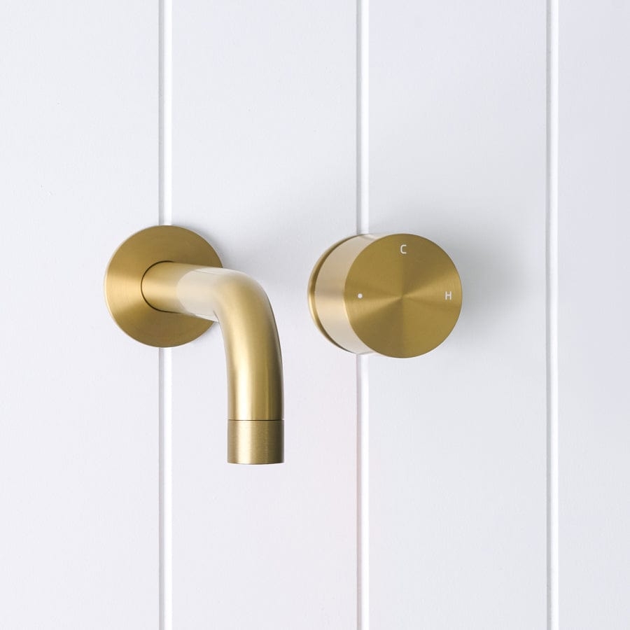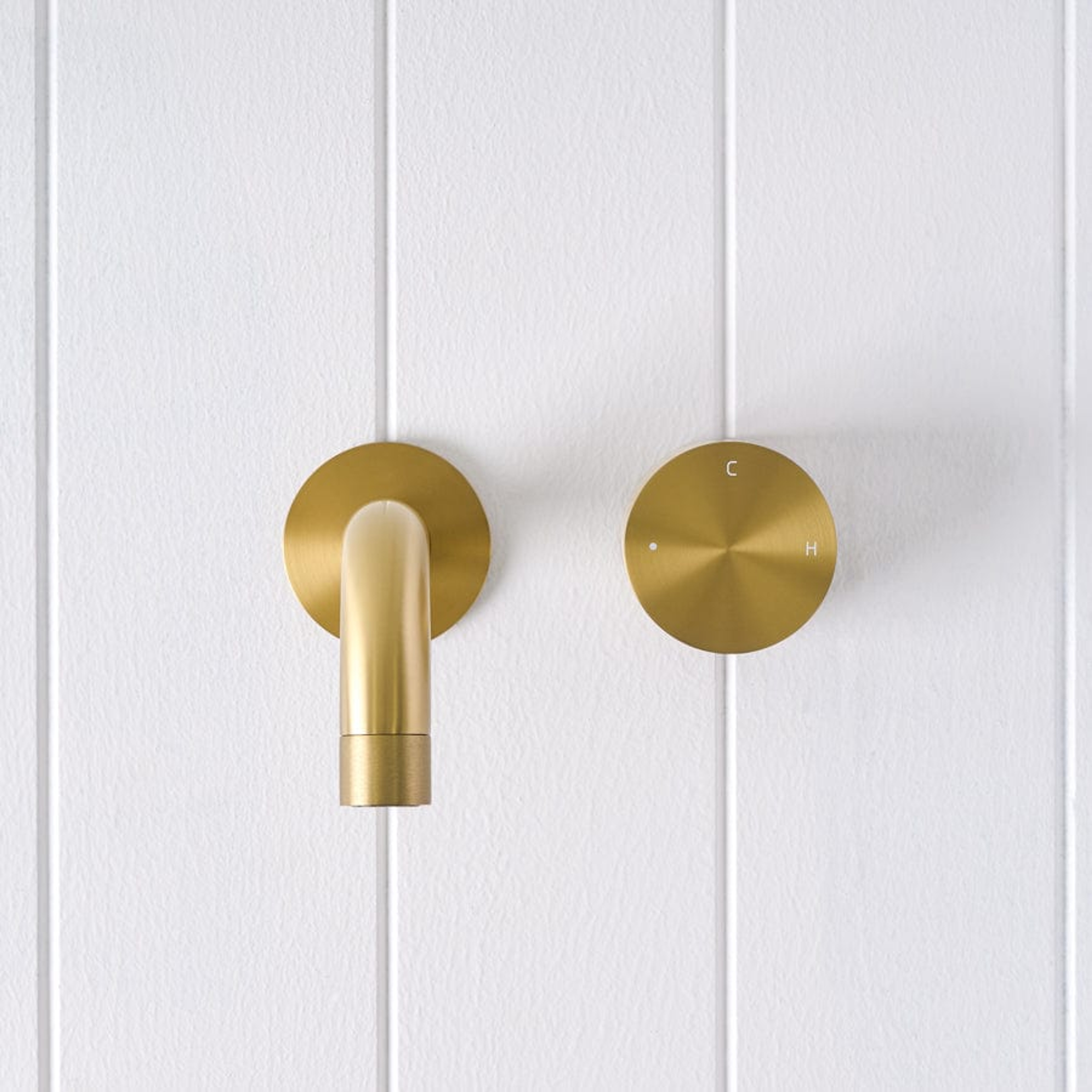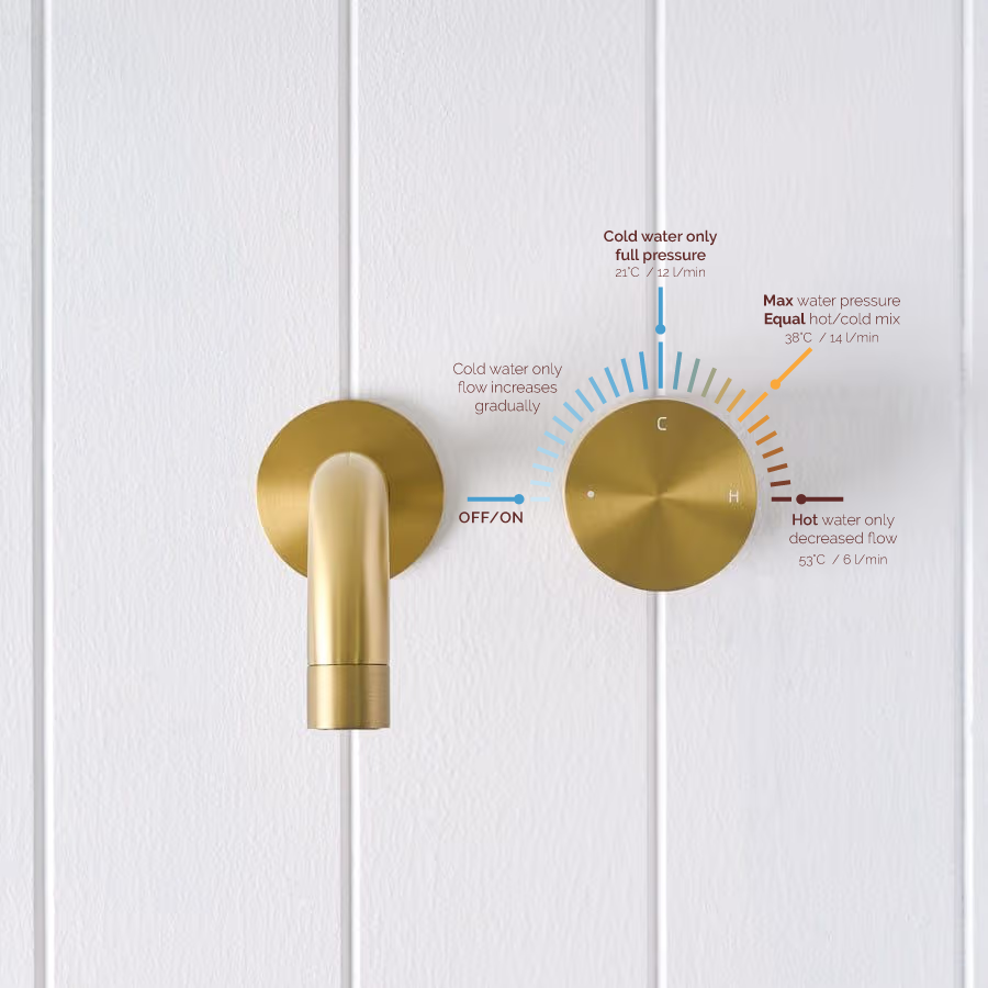 The Sydney Wall Spout and Progressive Mixer in Brushed Brass adds soft glow and smooth control to the bathroom. The brushed finish over stainless steel feels calm against stone and textured tiles, while the progressive mixer lets you move from gentle cool flow to warm shower with one motion. This wall spout and mixer creates a refined basin or bath moment.