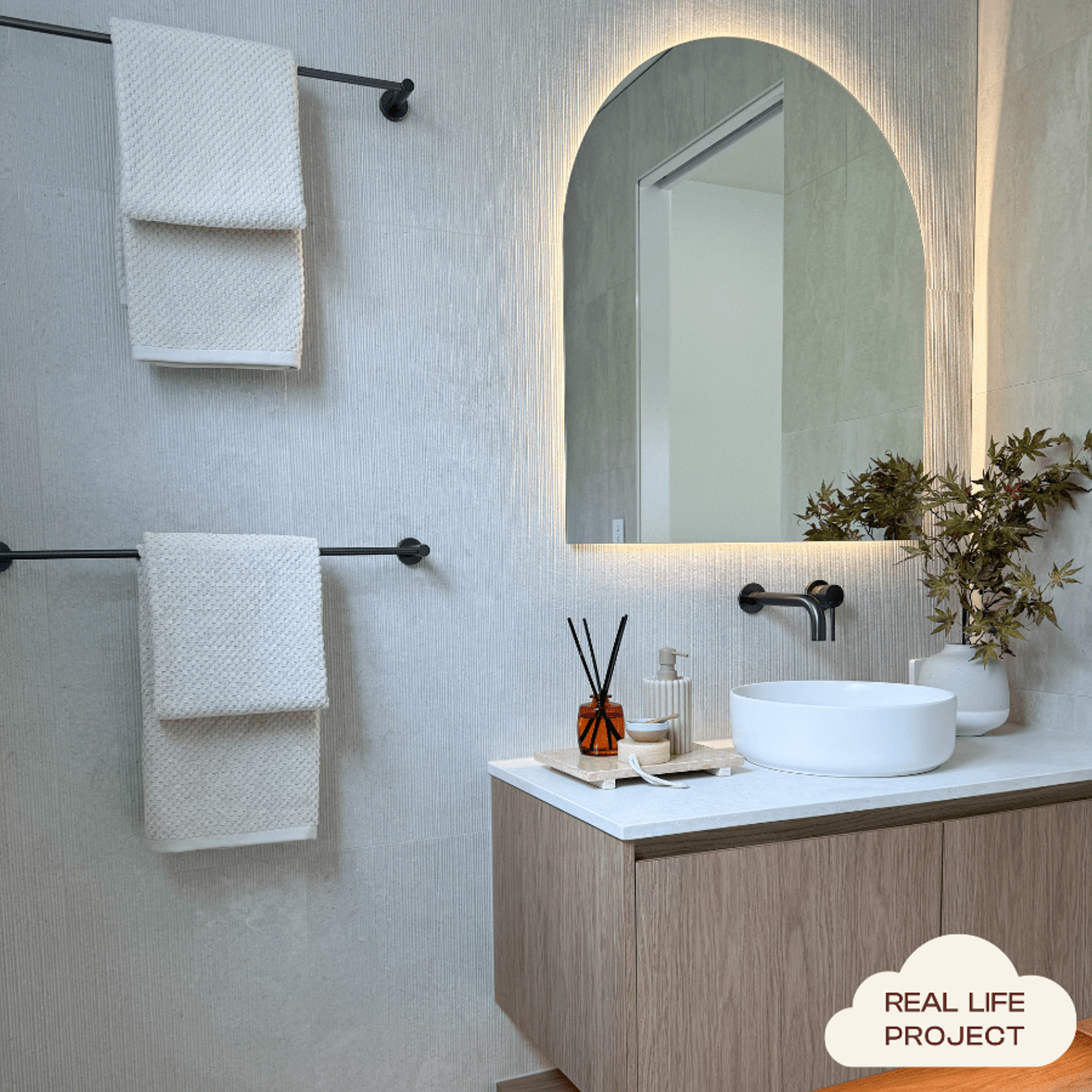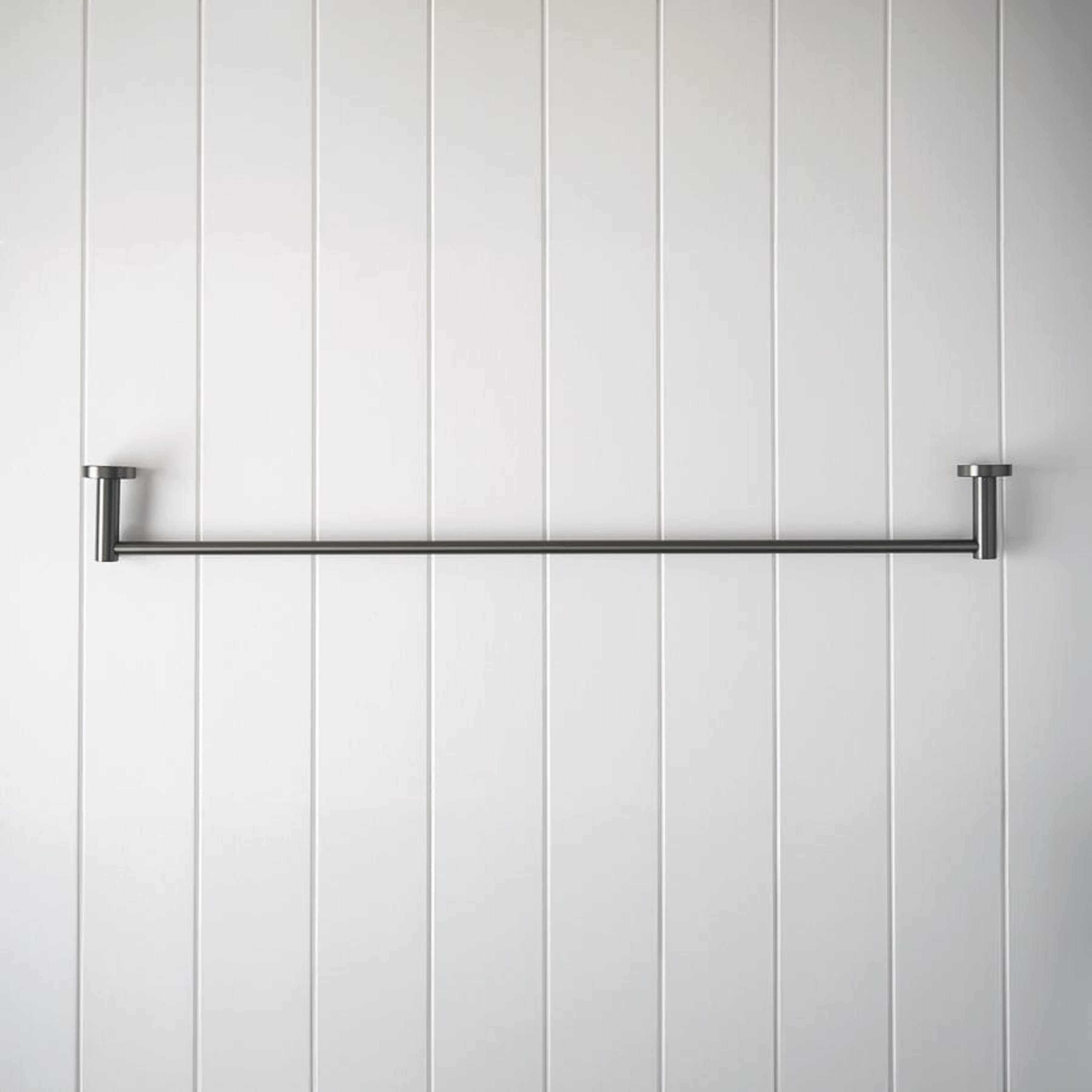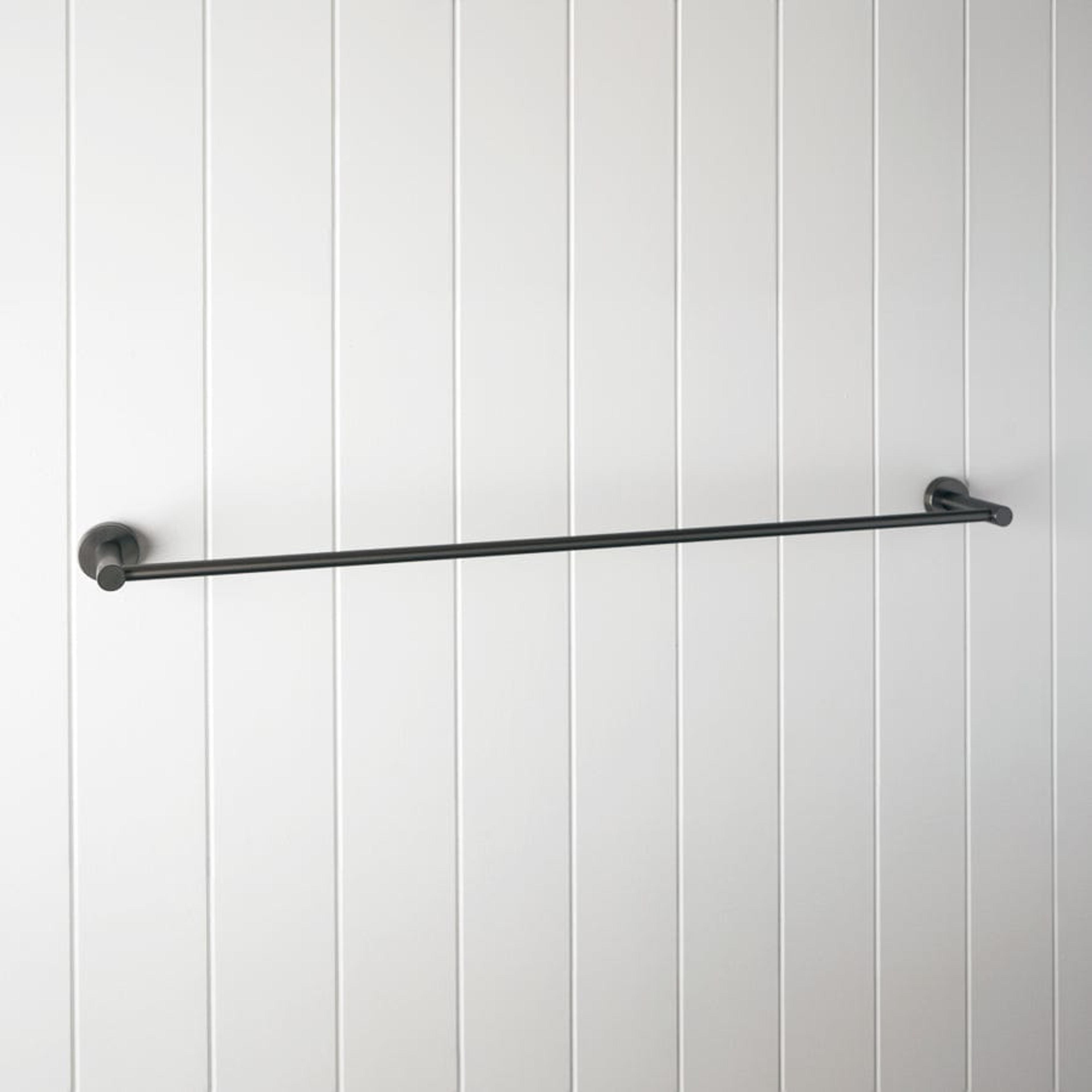 The Sydney Towel Rail in Gunmetal (750mm) brings a grounded, contemporary line to the bathroom. The deep Gunmetal finish over stainless steel contrasts beautifully with pale stone and tiles, while the longer rail length keeps multiple towels neatly displayed. It completes a modern Gunmetal hardware story.