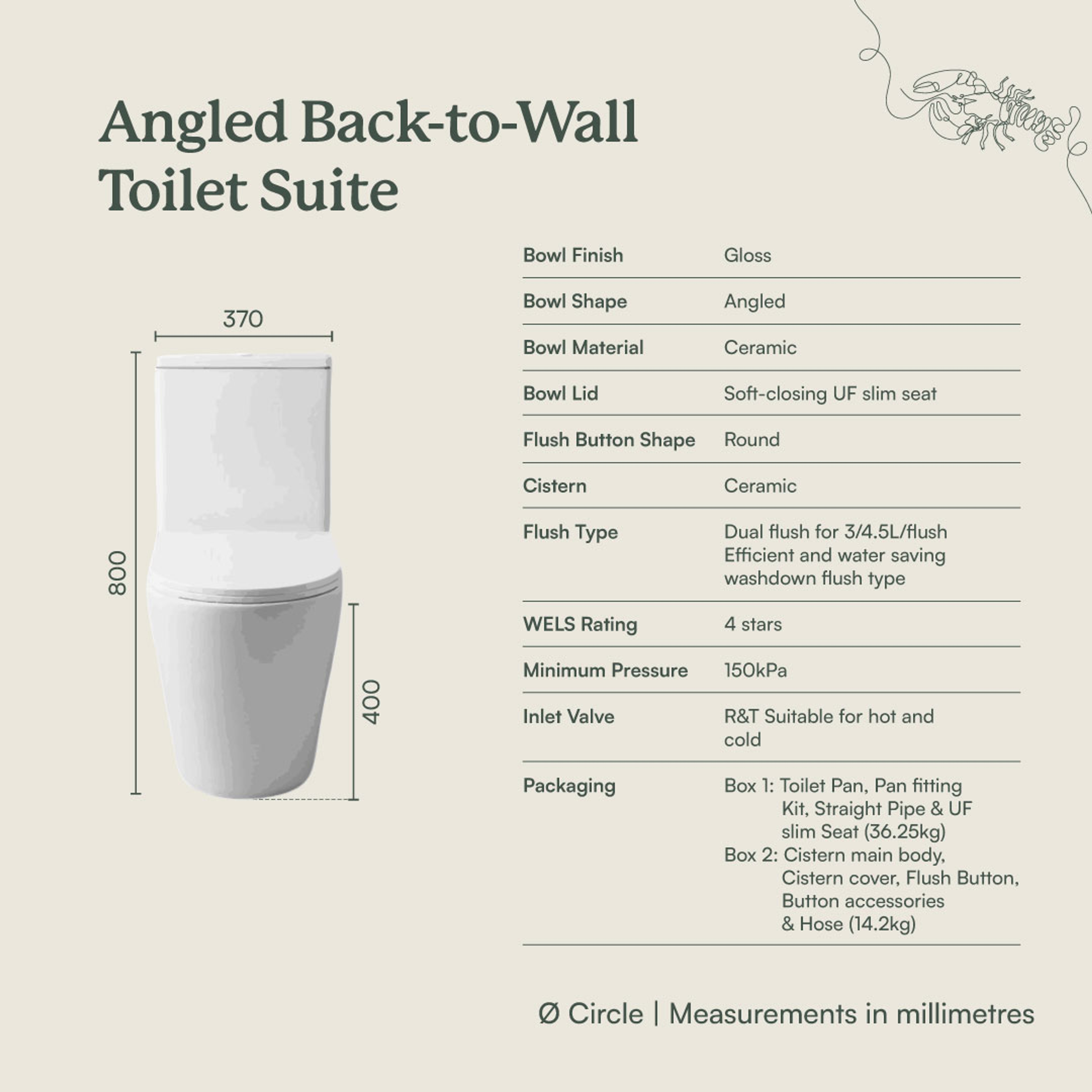 The Angled Back-To-Wall Toilet Suite combines modern design with reliable functionality, making it an ideal choice for any bathroom. Its back-to-wall design ensures a seamless fit, while the durable construction promises long-term performance. A practical and dependable solution for your bathroom needs.