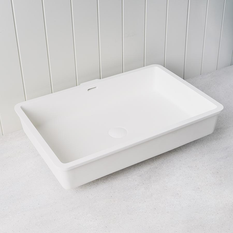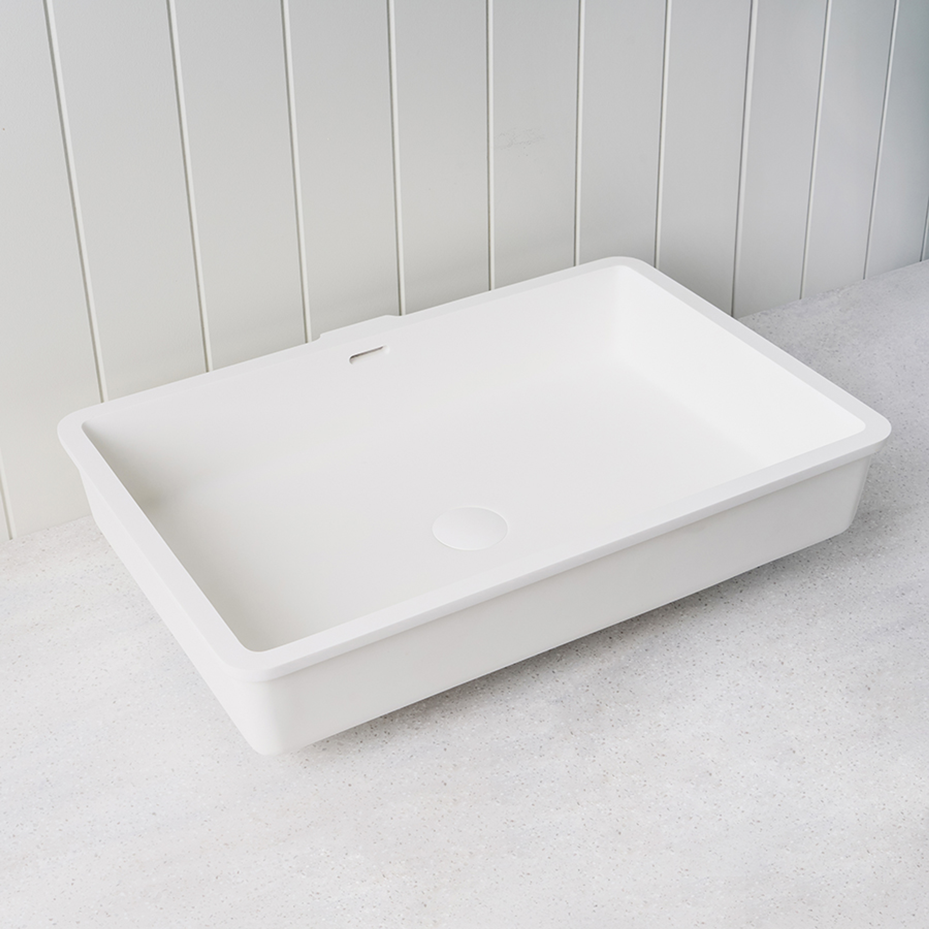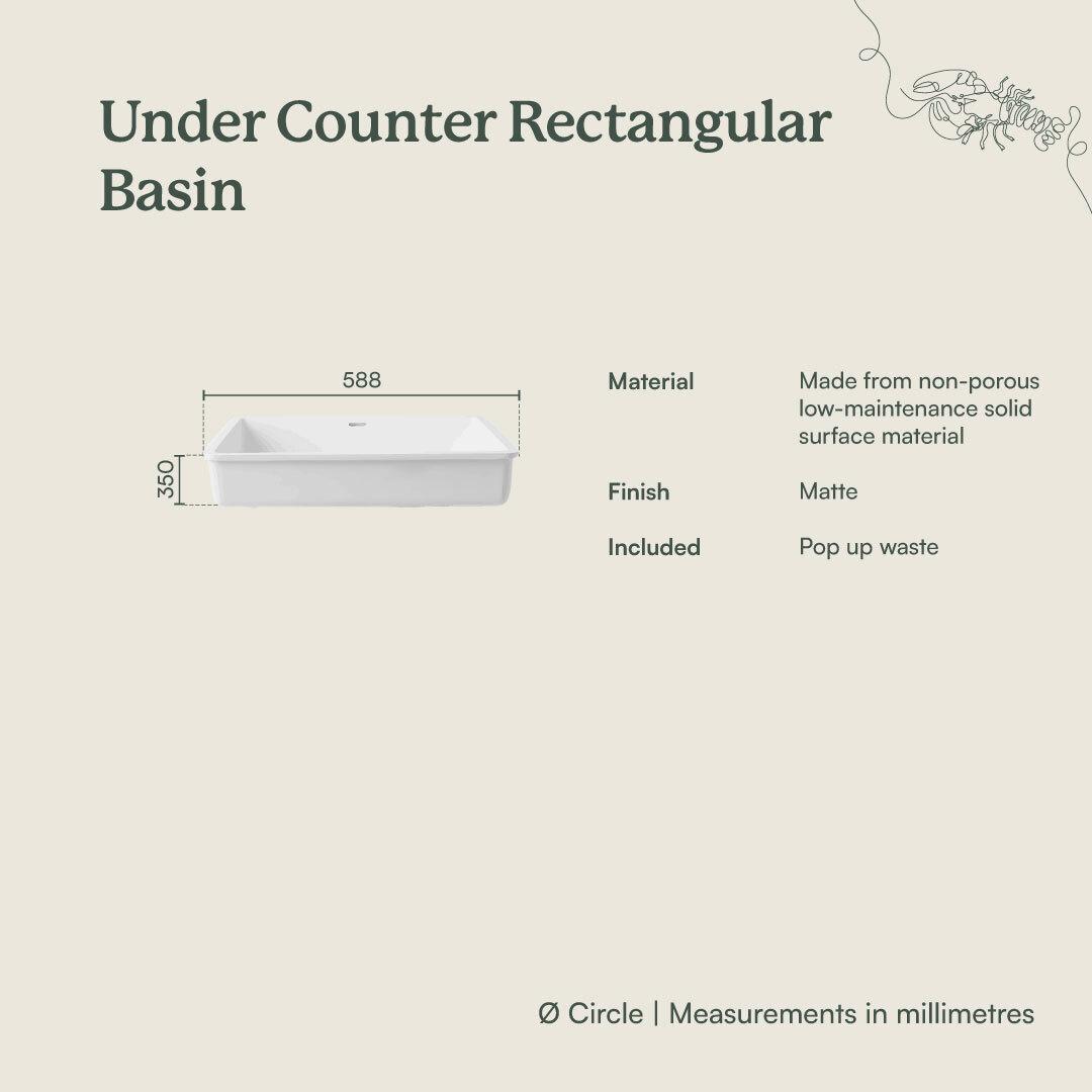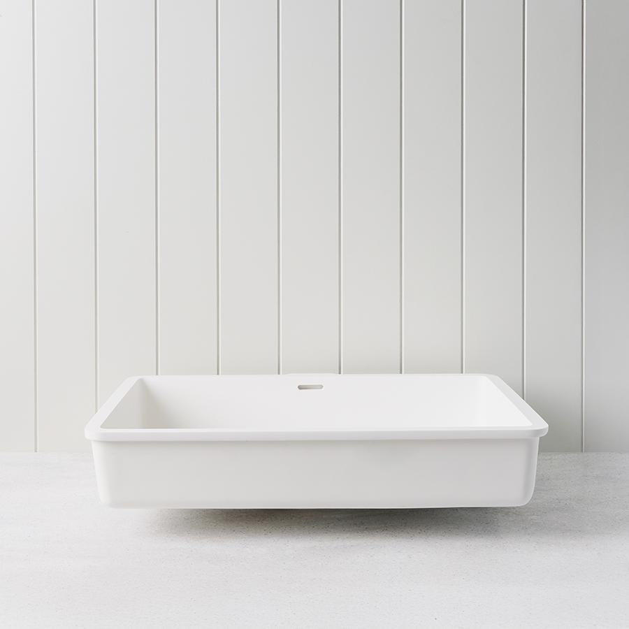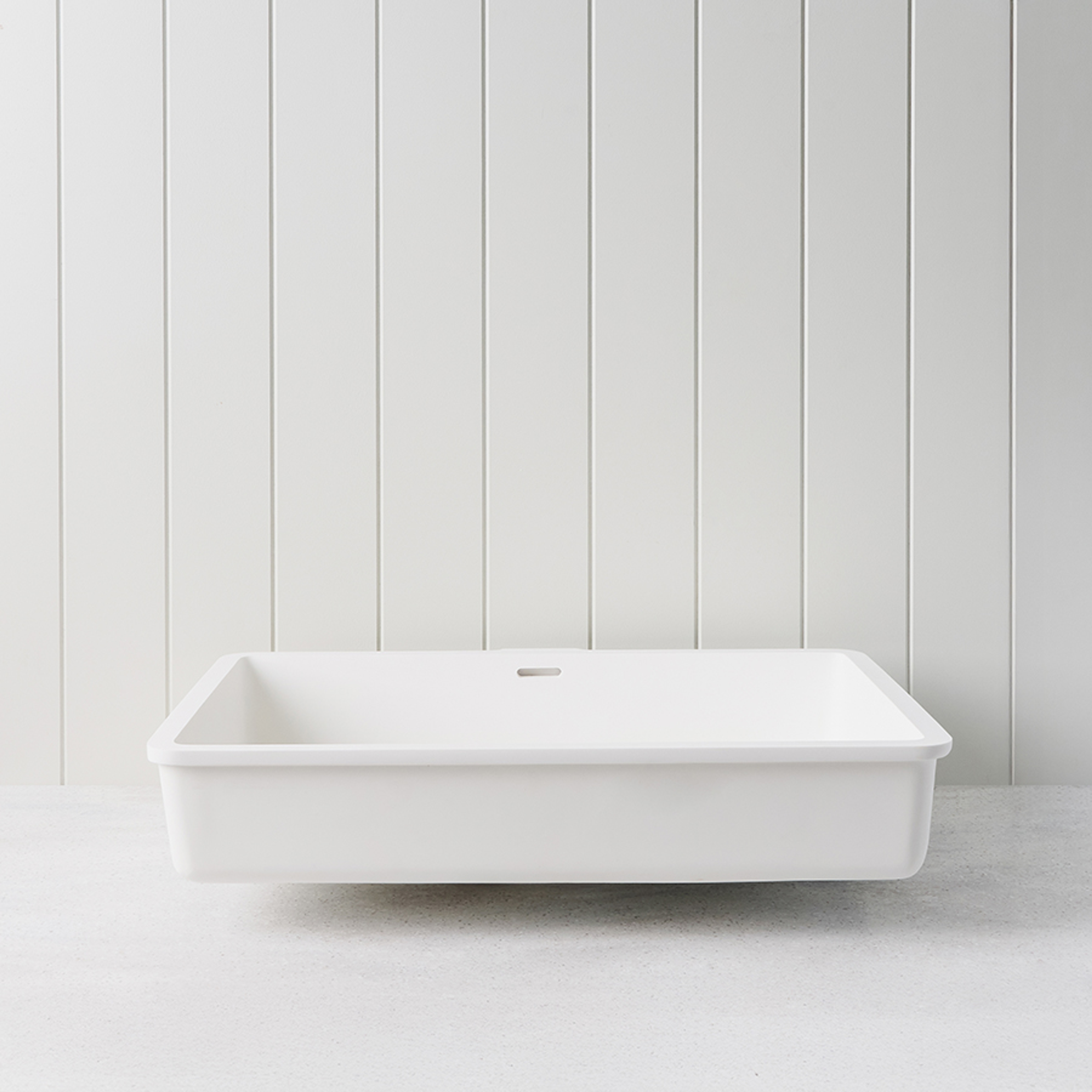 The Under Mount Rectangular Basin in Matte White gives a clean, uninterrupted look to stone and timber benchtops. Made from porcelain with a soft matte finish, it sits below the counter so the surface feels calm and minimal. The generous rectangular bowl is perfect for everyday family bathrooms.