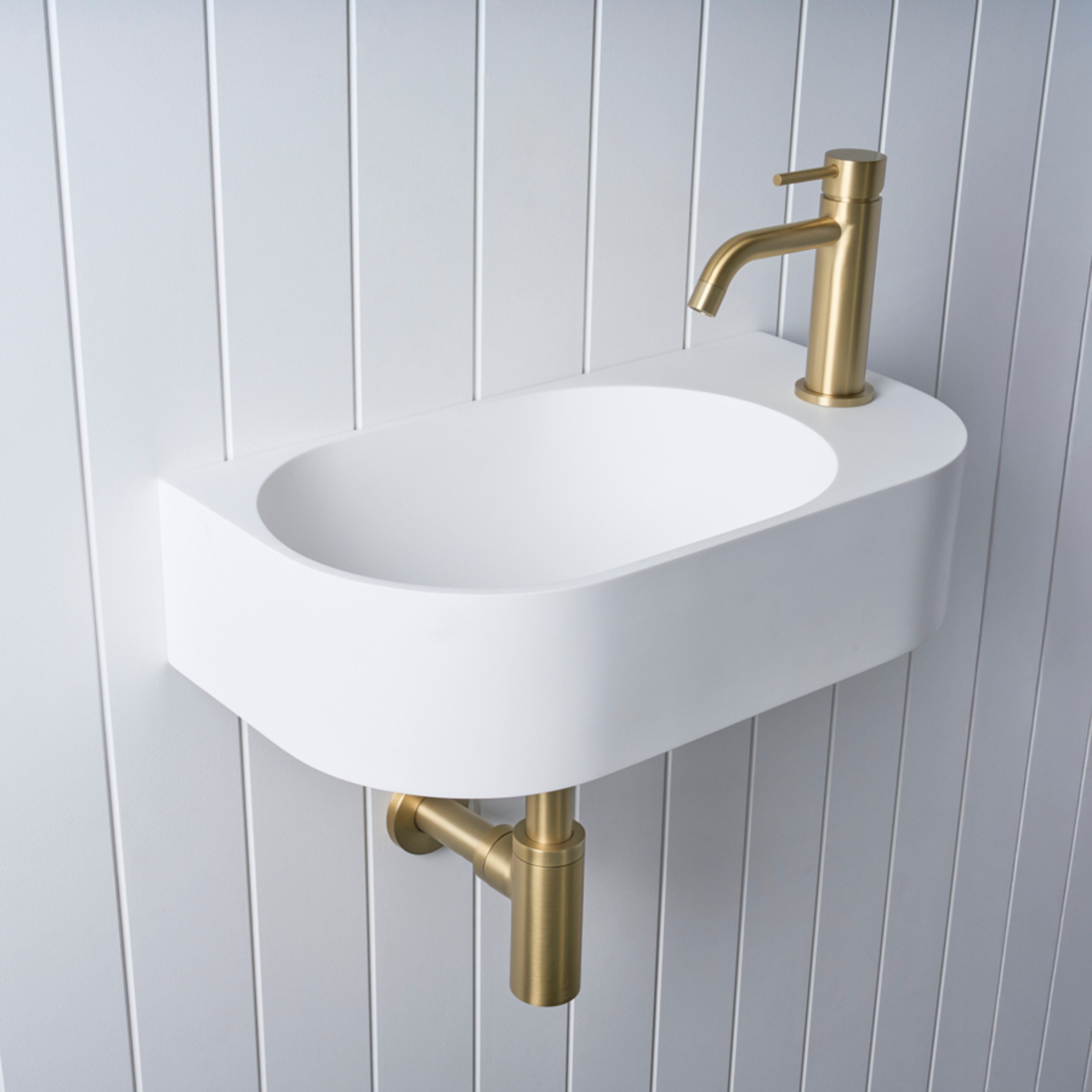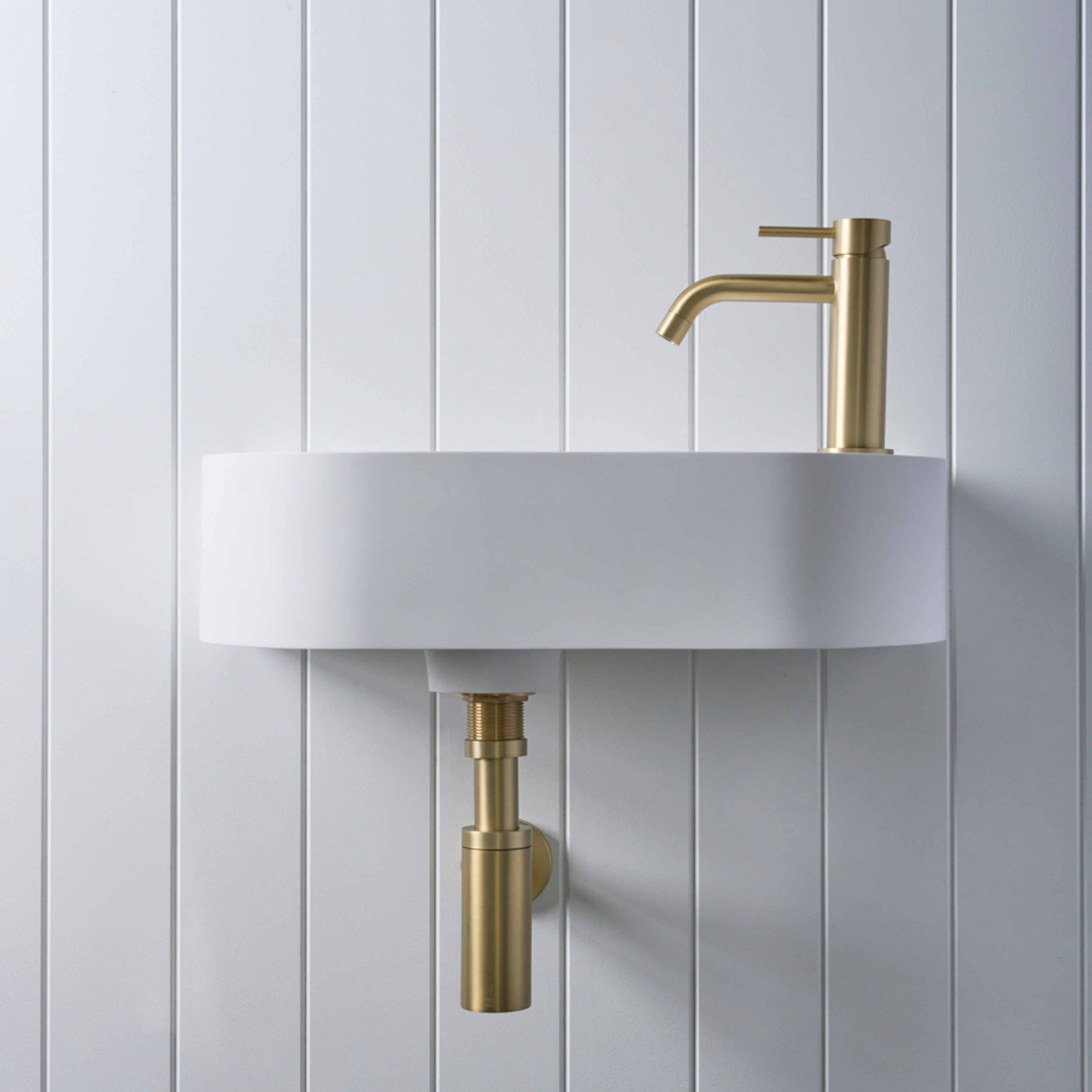 Wall Hung Basin with Short Basin Mixer Set Brushed BrassShipping Late Febuary