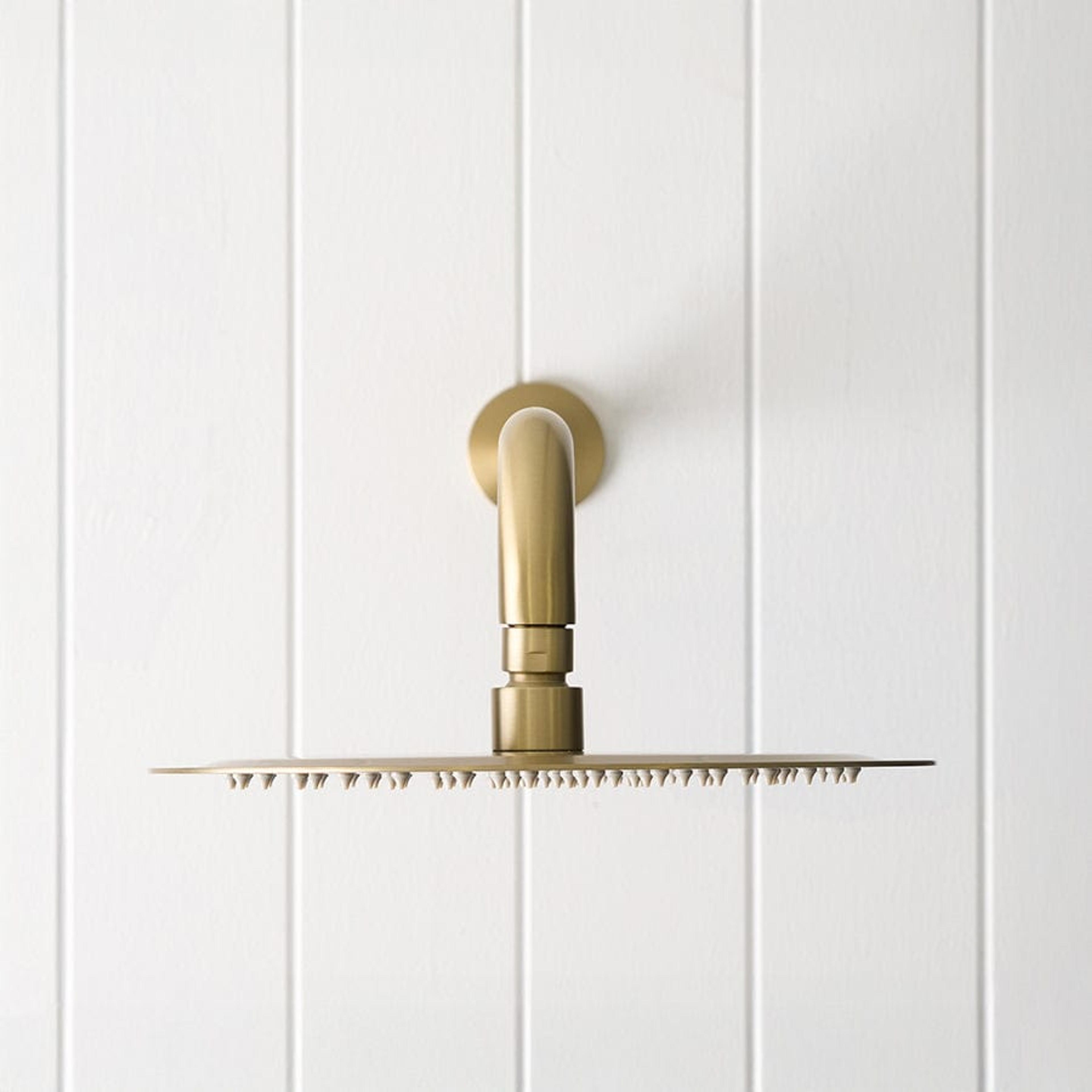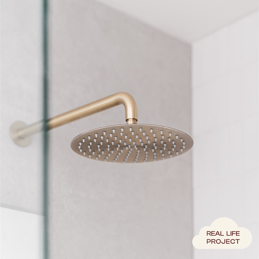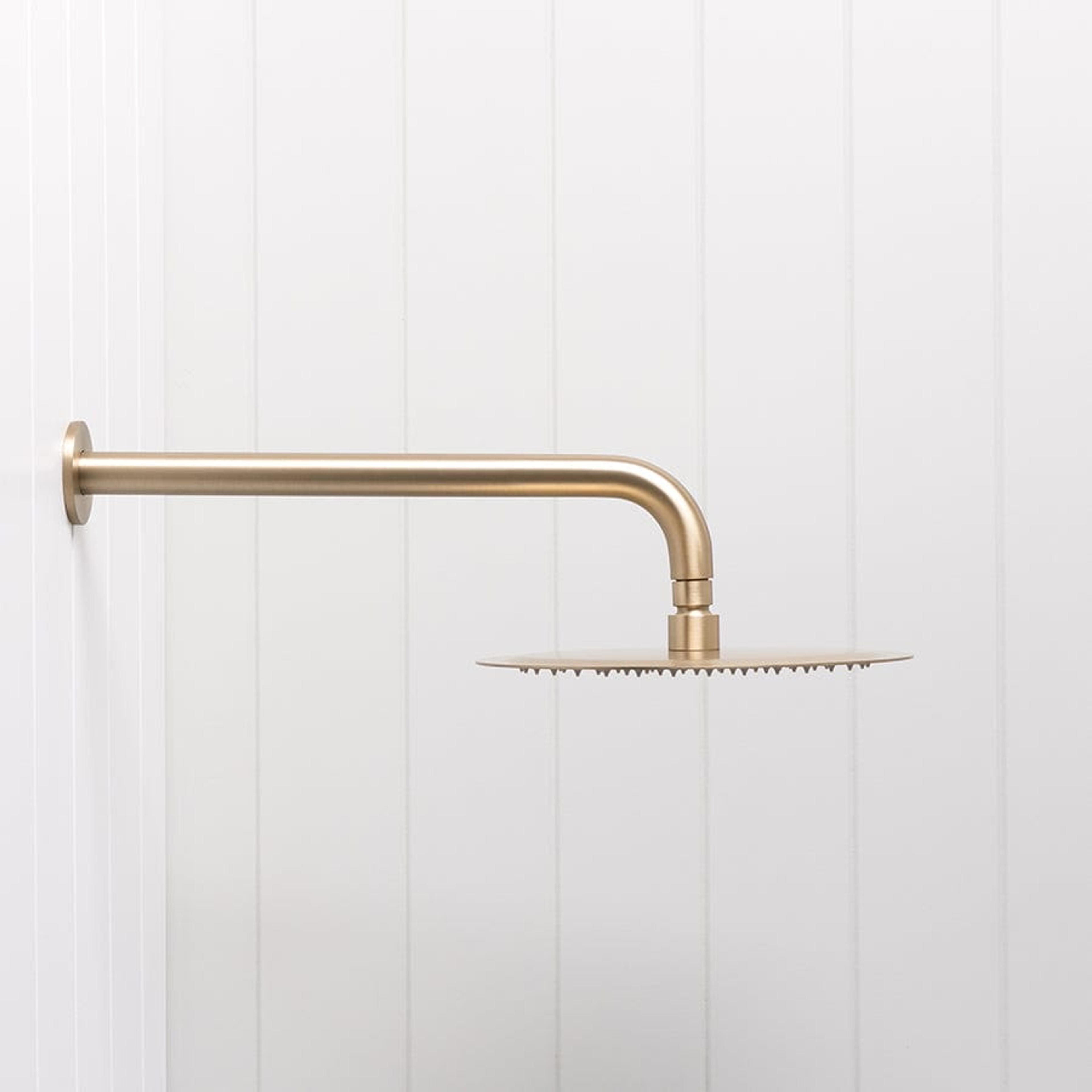 The Wall Shower Arm and Head in Warm Brushed Nickel brings a soft, silvery tone that feels gentle in light filled bathrooms. Stainless steel under the warm brushed nickel finish ensures strength and easy cleaning. This wall shower arm and head is a lovely match with soft greys, stone textures and pale timbers.
